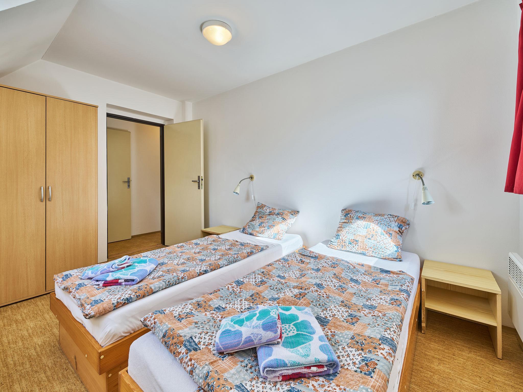 Stárkov 18 km from Náchod: Resort "Stárkov", 450 m a.s.l., semi-detached, built in 1997, renovated, surrounded by meadows. 22 houses in the resort. On the outskirts, in a sunny, elevated position on a slope, along the wooded area, 24 km from the lake, 10 km from the skiing area, in the countryside. For shared use: property 10 ha, meadow, pond, swimming pool (8 x 4 m, depth 150 cm, seasonal availability: 15.Jun. - 16.Sep.). Table tennis, volleyball, badminton, volleyball court, beach volleyball, patio, barbecue, fireplace, children's playground (slide, swing, sandbox). In the complex: reception, lounge, bistro, massage (extra). Billiard table, table football, trampoline, kiosk, storage room for bicycles, laundry (extra). Linen change (suppl. charge extra). Towel change (suppl. charge extra). Room cleaning on request (extra). Bread roll service possible on request. Pre-arrival grocery service. Motor access to 200 m from the house. Public parking. Grocery 1 km, supermarket 8 km, restaurant 1 km, café 10 m, bus stop "Stárkov,mlékárna" 280 m, railway station "Ždár nad Metují" 4.6 km, indoor swimming pool 18 km. Golf course (9 hole) 26 km, sailing school 26 km, tennis 500 m, riding stable, walking paths from the house, cycle lane 10 m, ski lift 6 km, ski school 17 km, cross country ski track 100 m, ice rink 8 km, children's playground 10 m. Nearby attractions: Adršpašsko-teplické skály 15 km, Náchod 17 km, Broumovské steny 17 km, Ratiborice a Babiccino údolí 22 km, Broumov 24 km, Relaxpark Pec pod Snežkou 50 km. Well-known ski regions can easily be reached: Radvanice 10 km, Petríkovice 17 km, Mladé Buky 36 km. Well-known lakes can easily be reached: vodní nádrž Rozkoš 26 km. Please note: suitable for families, suitable for seniors baby equipment on request (included).