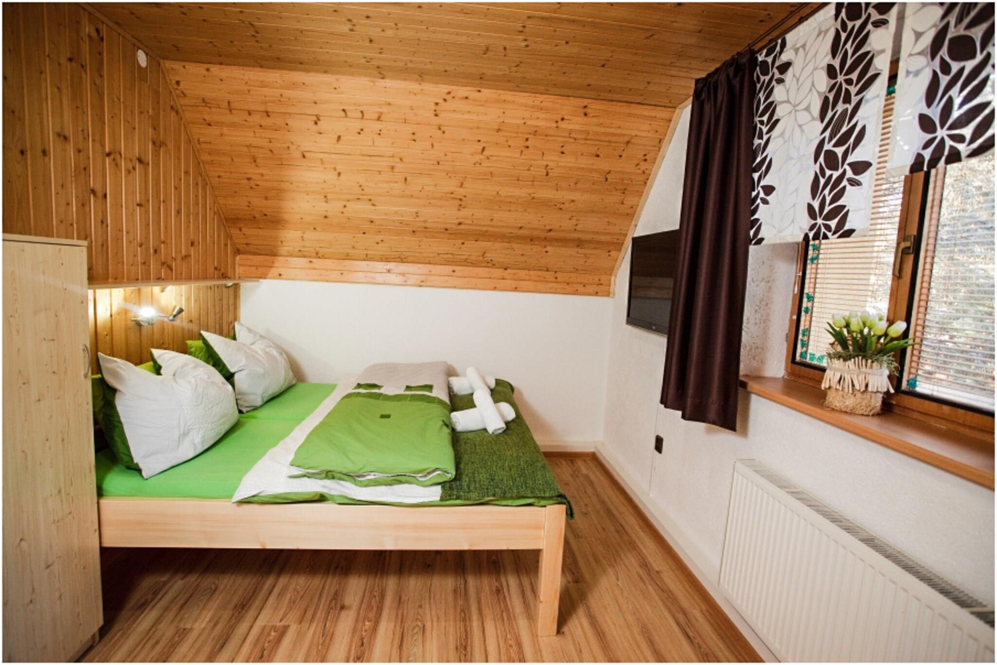 Flygt til luksus i denne fantastiske villa beliggende i det rolige grønne Staré Hamry, designet til op til 15 gæster. Perfekt til familiesammenkomster eller venners retreater, denne villa tilbyder to ekspansive etager, hver med hyggelige opholdsrum og fuldt udstyrede køkkener. Første sal har plads til 8 gæster med en rummelig stue, stort tv, spiseplads og en ekstra sovesofa. Et privat badeværelse med badekar, toilet og vaskemaskine tilføjer bekvemmelighed. Anden etage spejler den første og giver yderligere 7 gæster balkoner til at nyde udsigten. Udforsk de smukke omgivelser med et besøg i Prehrada Sance, kun 1 km væk, eller tag til Lysa Hora, 22 km fra villaen, for en fantastisk udsigt over bjergene. Skientusiaster vil elske de nærliggende feriesteder, herunder Ski Park Grun (3 km) og Ski Bílá (5 km). Uanset om det er vintersport eller en afslappende sommerferie, tilbyder denne villa den perfekte base for uforglemmelige minder. Forkæl dig selv med ultimativ afslapning i villaens wellness-område med to saunaer, en jacuzzi til seks personer og massagedyser til at berolige dine muskler. For sjov og underholdning kan du udfordre dine venner til dart eller billard i fællesrummet. Udenfor, haven er perfekt til både voksne og børn, med en træpergola, grillplads og en legeplads med trampolin, gynge, rutsjebane og sandkasse dage, tag en forfriskende dukkert i den private pool.