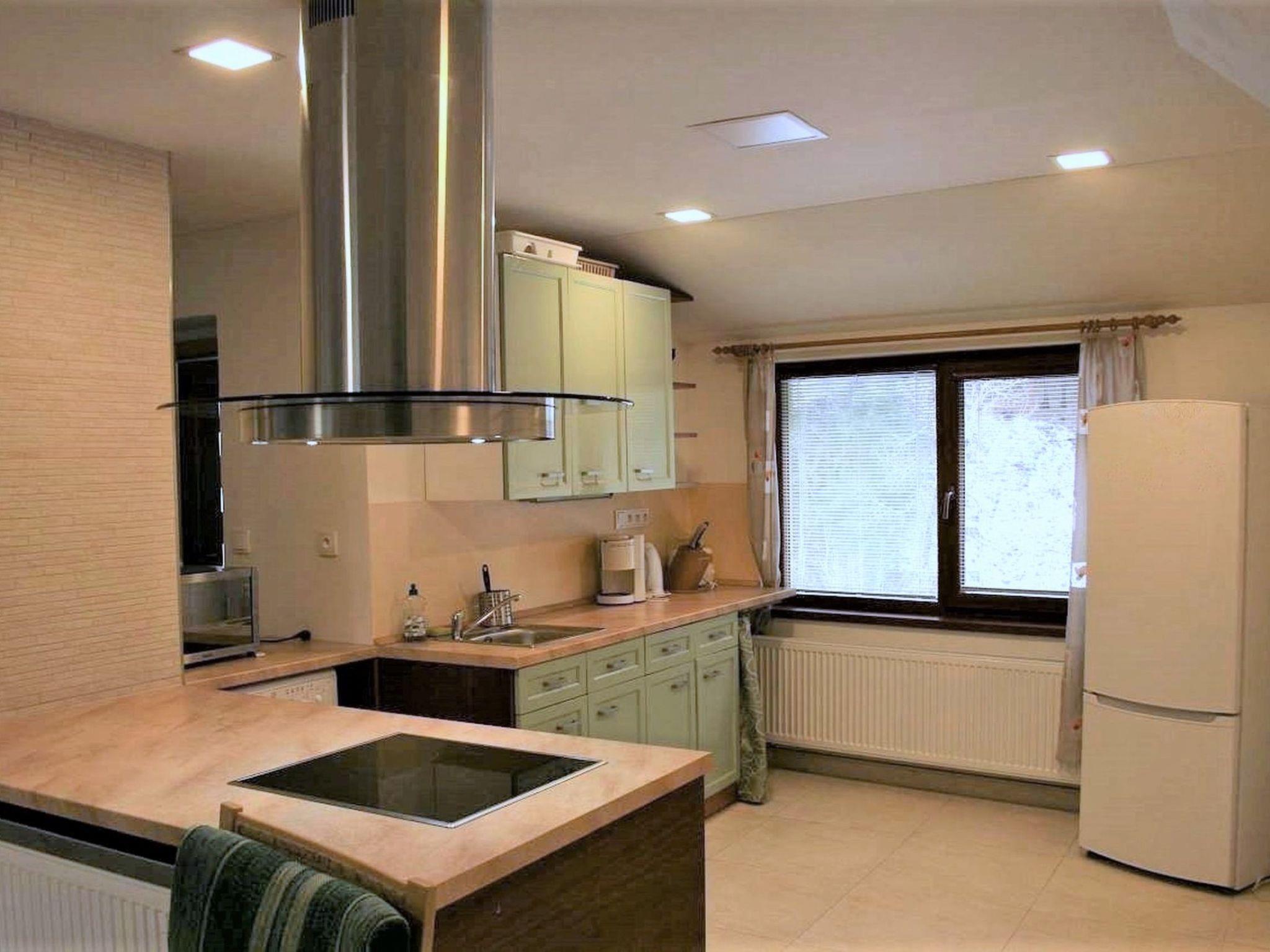 5-room house on 3 levels. Living room with Scandinavian wood stove, satellite TV, CD-player and DVD. Exit to the terrace, to the swimming pool. 1 room with 1 double bed. Kitchen (oven, dishwasher, 4 induction hot plates, toaster, kettle, microwave, freezer, electric coffee machine). Shower/WC. Electric heating, wood heating. On the lower ground floor: living/sleeping room with 1 double wall-trunk bed and TV. Kitchen (2 induction hot plates, kettle, microwave) with dining table. Shower/WC. Electric fireplace. Top floor: 1 room with 2 double beds. 1 room with 1 bed and 1 double bed. Terrace. Terrace furniture, deck chairs. Facilities: washing machine, iron, children's high chair, baby cot, hair dryer. Internet (WiFi, free). Please note: suitable for families. Non-smoking house. 2 small pets/ dogs allowed. Smoke alarm, fire extinguisher. Smart TV on the lower ground floor.