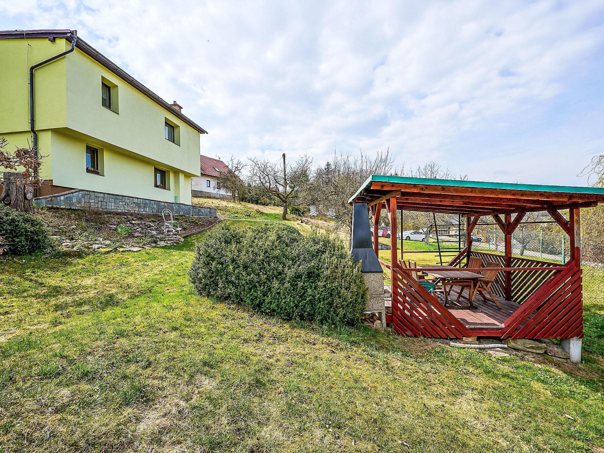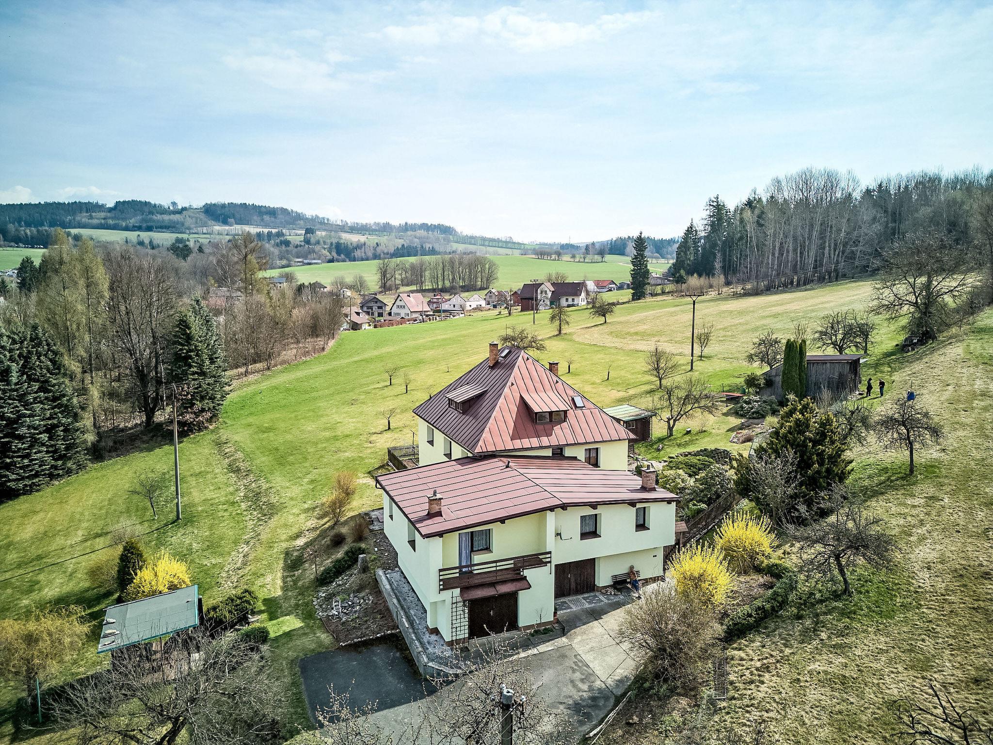 Jesenný, 25 km from Tanvald: 2-family house "Jesenný", built in 1995. On the outskirts, in a quiet, sunny position on top of a hill, 8 km from the skiing area. Private: property, meadow. Patio (20 m2), garden furniture, barbecue. In the house: WiFi, central heating system. Parking at the house. Grocery 200 m, restaurant 200 m, bus stop 160 m, outdoor swimming pool 160 m. Riding stable 12 km, ski lift 7 km. Sports centre "Vysoke nad Jizerou" 7 km. Czech paradise 25 km. Other areas 15 and 20 km.
