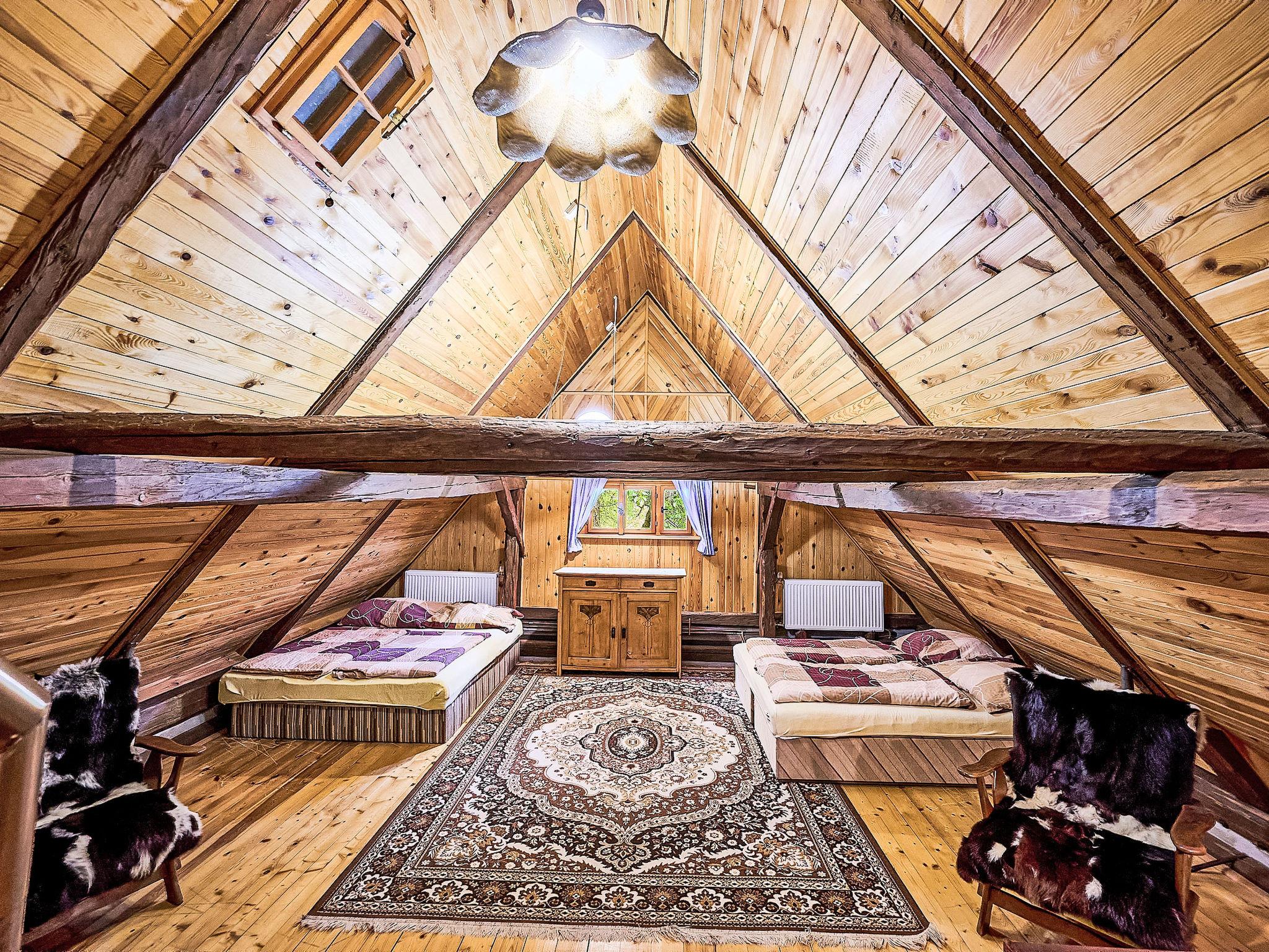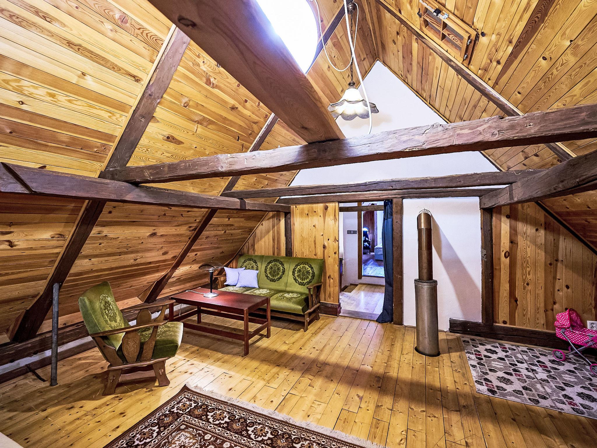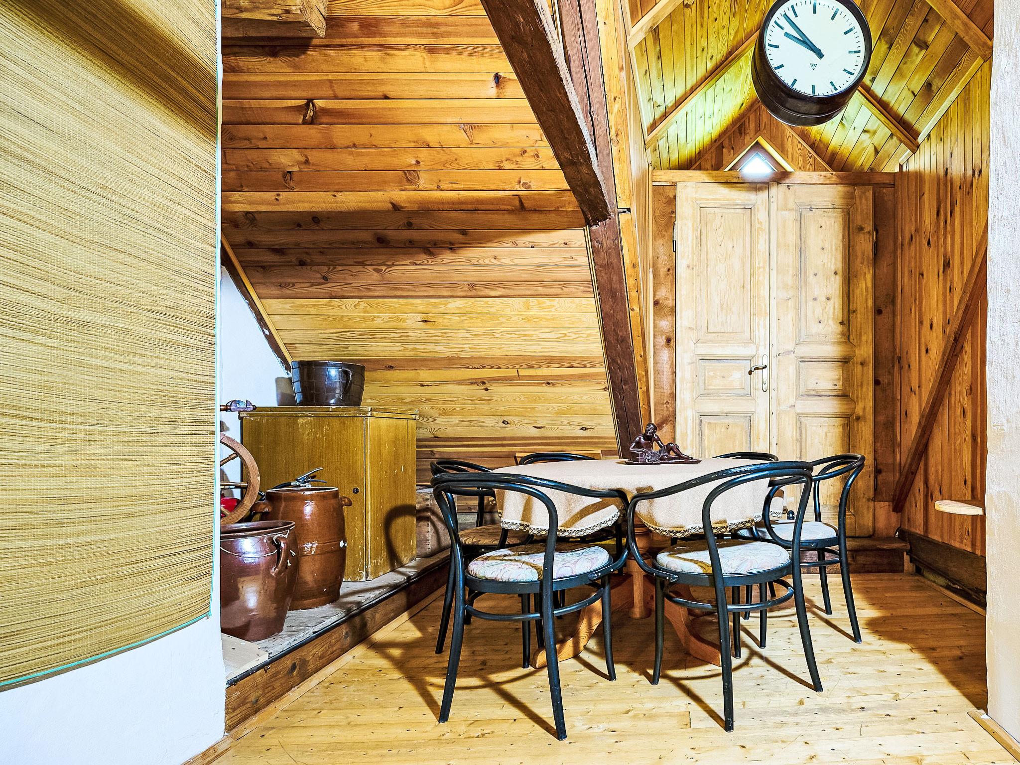 4-room cottage. Rustic and wooden furniture furnishings: living room with 1 sofabed, Scandinavian wood stove, dining table and TV. Kitchen (oven, 4 ceramic glass hob hotplates, toaster, kettle, microwave, freezer) with Scandinavian wood stove. Shower/WC. Electric heating. On the lower ground floor: 1 room with 2 beds. 2nd upper floor: 1 room 36 m2, with sloping ceilings with 2 double beds. 1 room with sloping ceilings with 1 bed and 1 double bed. Wooden floors. Box-room. Beautiful panoramic view of the mountains and the garden. Facilities: Internet (WiFi, free). Please note: non-smoking house.