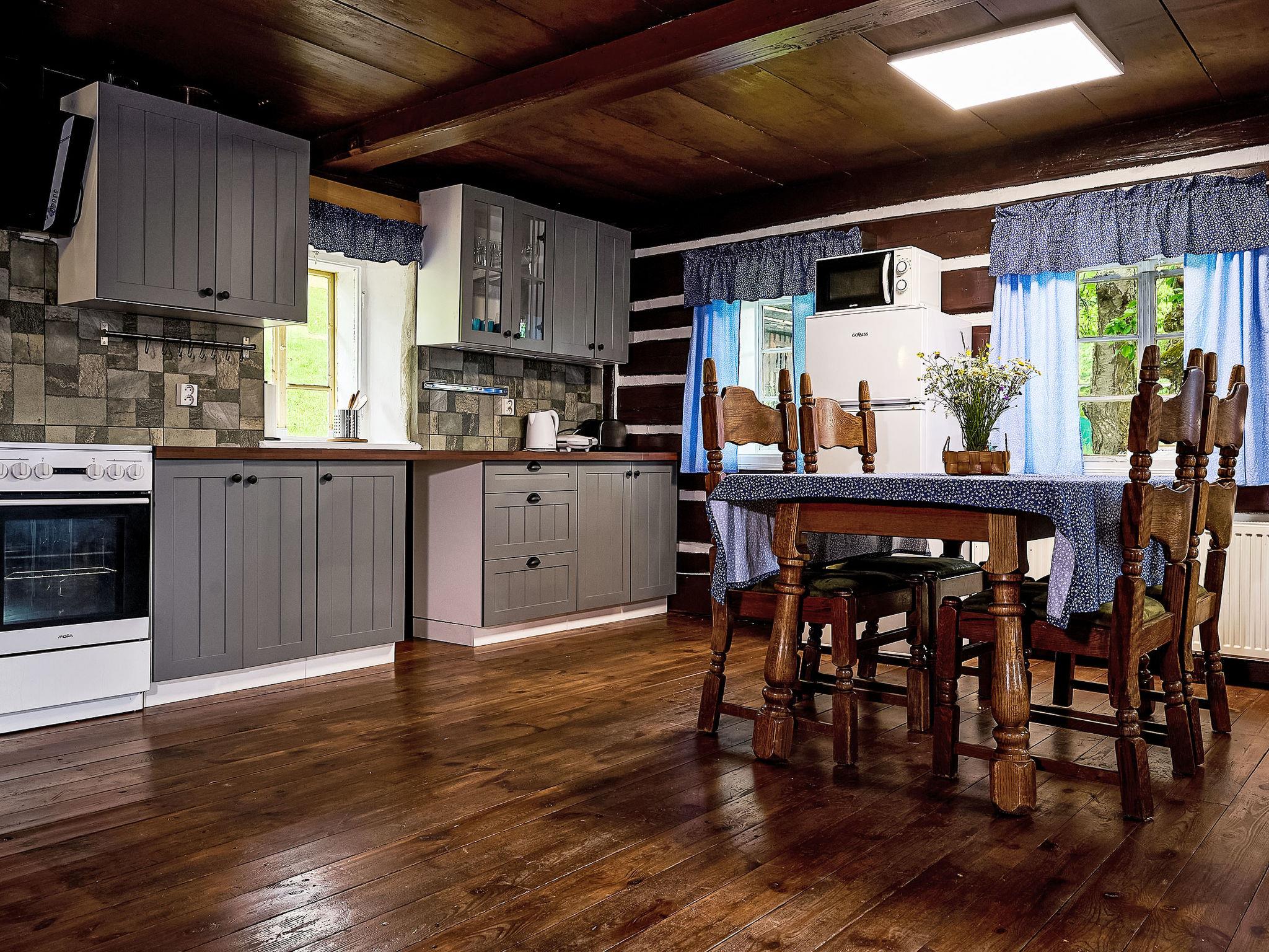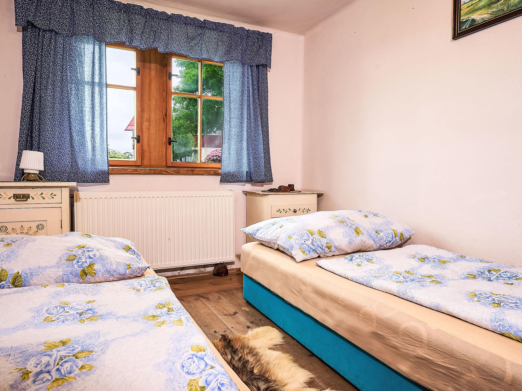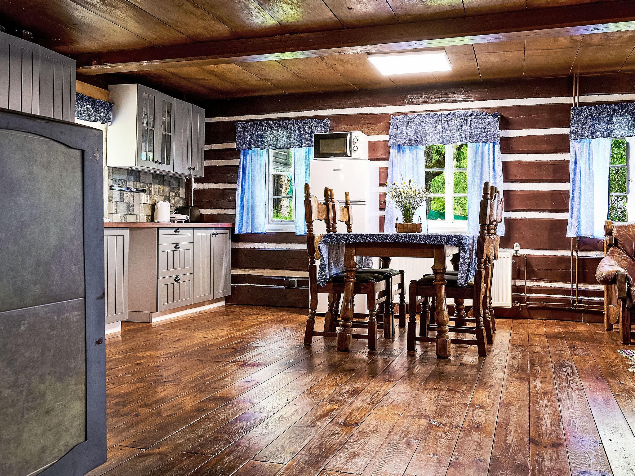 4-room cottage. Rustic and wooden furniture furnishings: living room with 1 sofabed, Scandinavian wood stove, dining table and TV. Kitchen (oven, 4 ceramic glass hob hotplates, toaster, kettle, microwave, freezer) with Scandinavian wood stove. Shower/WC. Electric heating. On the lower ground floor: 1 room with 2 beds. 2nd upper floor: 1 room 36 m2, with sloping ceilings with 2 double beds. 1 room with sloping ceilings with 1 bed and 1 double bed. Wooden floors. Box-room. Beautiful panoramic view of the mountains and the garden. Facilities: Internet (WiFi, free). Please note: non-smoking house.