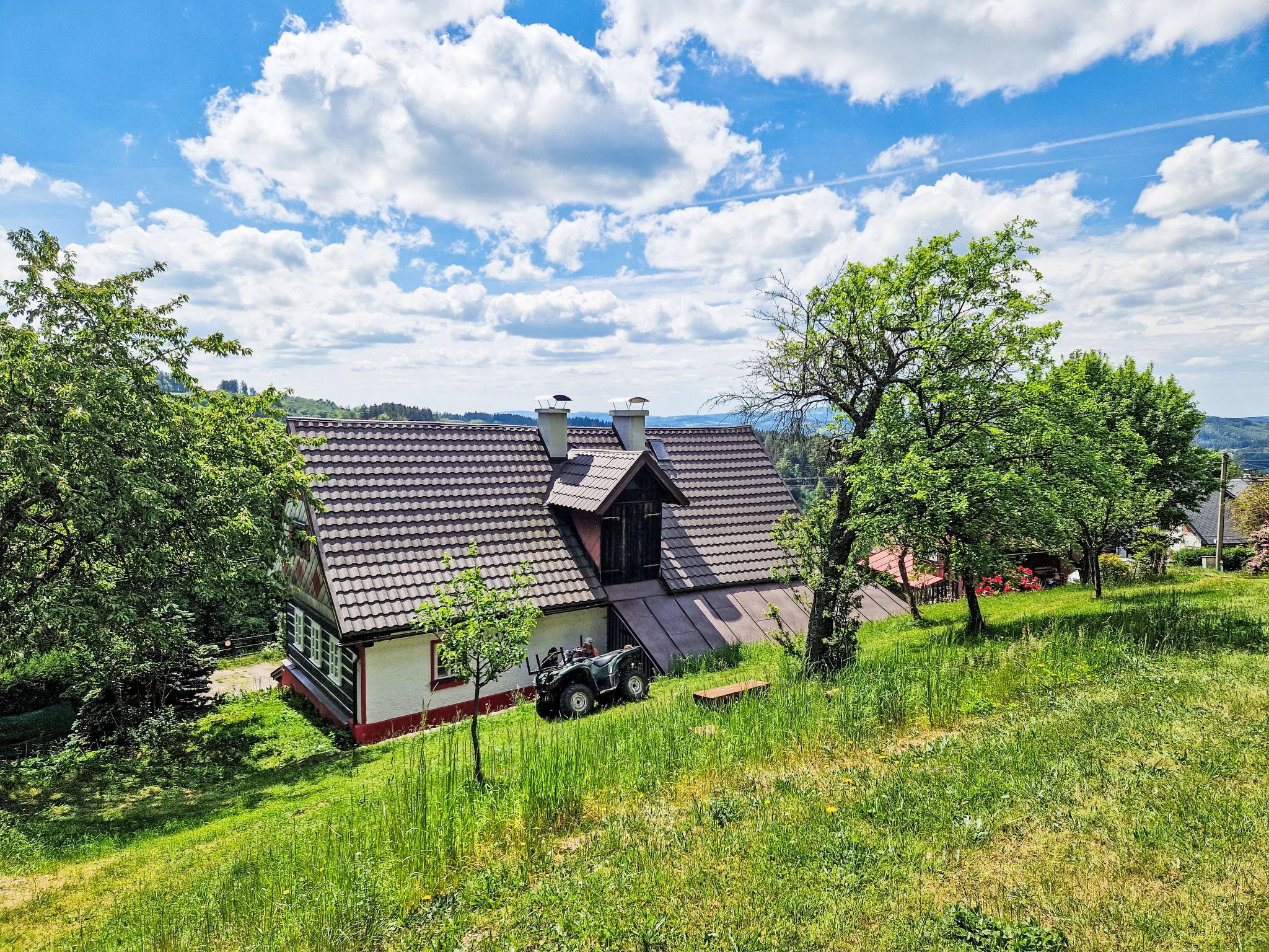 Very old "rustico" cottage "Na kopecku", built in 1840. In a quiet, sunny position on top of a hill. Private: garden (not fenced). Terrace, garden furniture, fireplace, parking (for 3 cars). Shop 6 km, supermarket 6 km, restaurant 3 km, bar 4 km, café 3 m, bus stop "Ceský Šumburk, sokolovna" 200 m. Minigolf 3 km, ski lift 3 km, ski rental 3 km, ski school 3 km. Nearby attractions: Štepánka 3.5 km, Maják J. Cimrmana 3 km, Terezínka 7 km, Malý Špicák Tanvald 8 km, Svetlý vrch 10 km, Termy Cieplickie(Pl) 40 km. Well-known ski regions can easily be reached: Rejdice 7 km, Paseky nad Jizerou 10 km, U Cápa 3 km. Hiking paths: Bukovec 13 km, Jizerka 12km, Bozkov, Riegrova stezka 30 km, Cerná Studnice 10 km. Please note: suitable for families. The owner does not accept any groups.