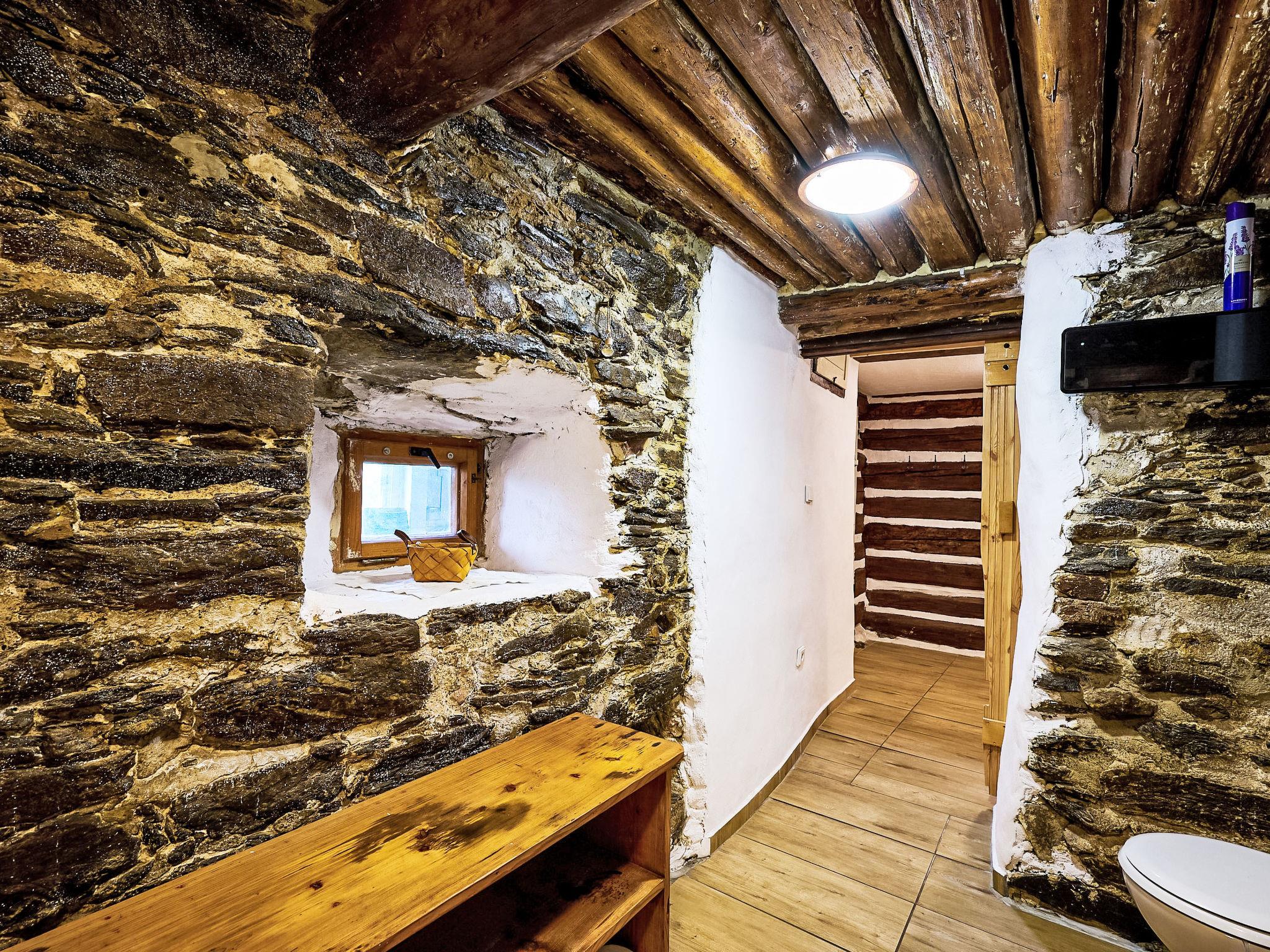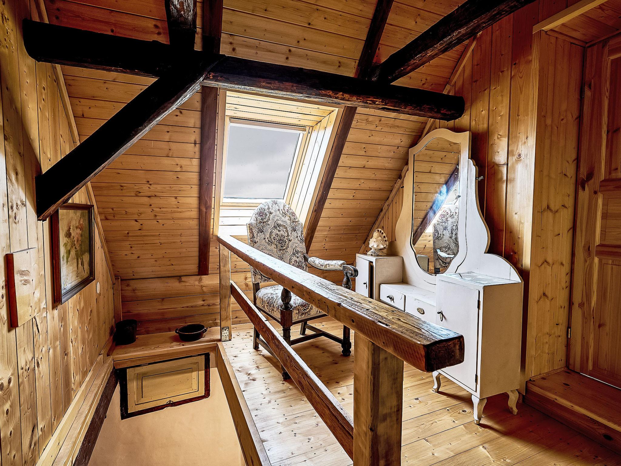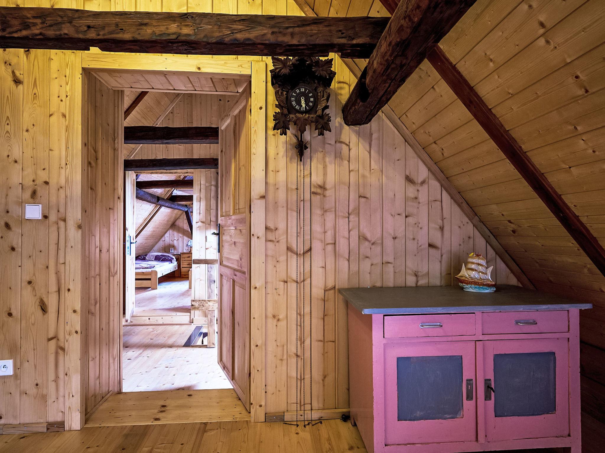 3-room cottage. Rustic and wooden furniture furnishings: living room with 1 sofabed, Scandinavian wood stove, dining table and TV. Kitchen (oven, 4 ceramic glass hob hotplates, kettle, microwave, freezer) with Scandinavian wood stove. Bath/WC. Electric heating. 2nd upper floor: 1 room 20 m2, with sloping ceilings with 2 beds and 1 double bed. 1 room with sloping ceilings with 1 bed and 1 double bed. Box-room. Beautiful panoramic view of the mountains and the garden. Facilities: Internet (WiFi, free). Please note: non-smoking house.
