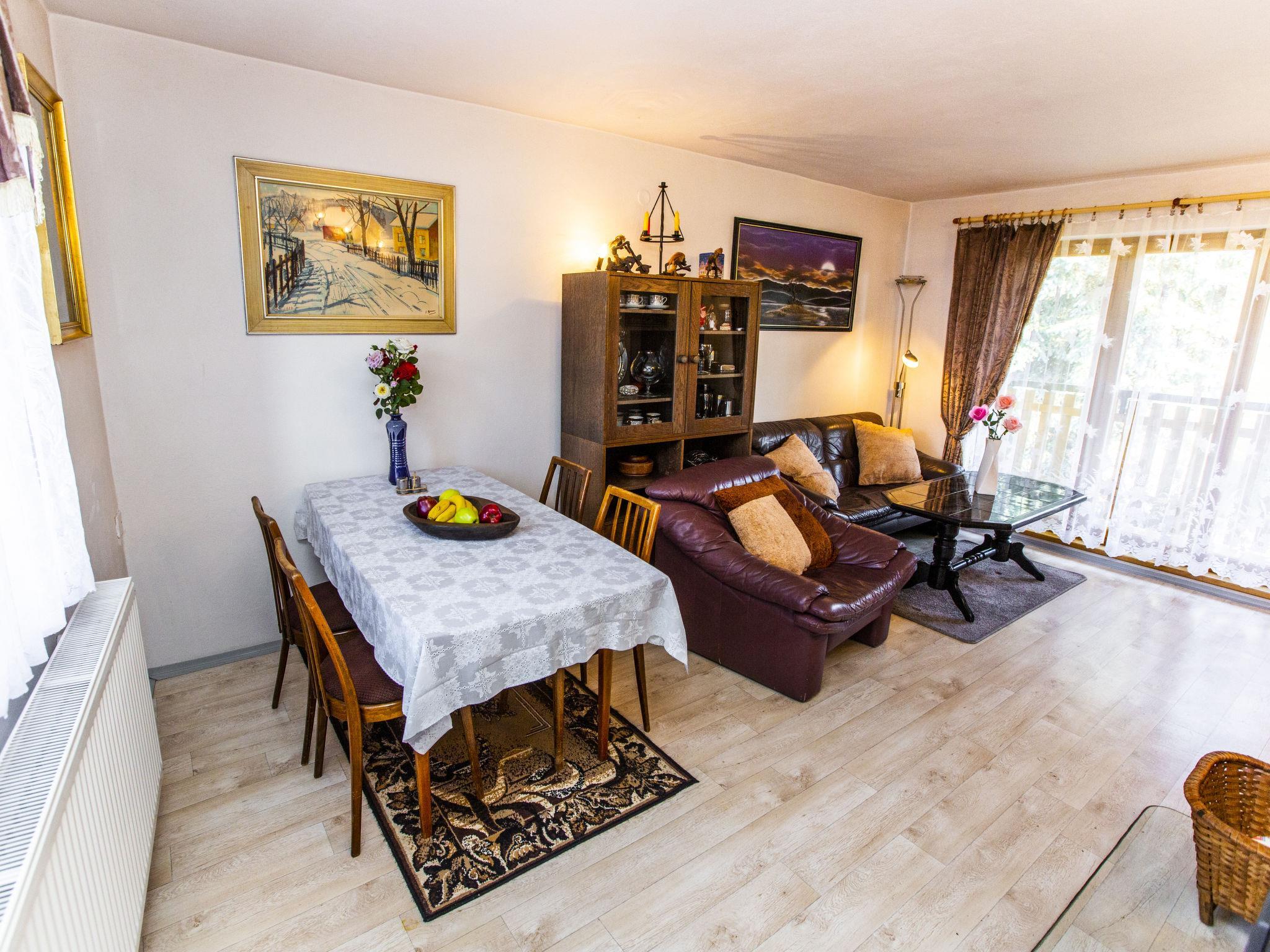 4-room semi-detached house on 2 levels. Walk-through room with 2 beds. 1 room with 2 beds. Small kitchen (oven, 4 ceramic glass hob hotplates, kettle, microwave, freezer) with kitchen corner. Upper floor: living room with Scandinavian wood stove and TV. 1 room with 1 double bed. Bath/WC with corner bath. Electric heating, wood heating. Terrace furniture. Facilities: washing machine. Internet (WiFi, free). Please note: suitable for families. Private entrance.