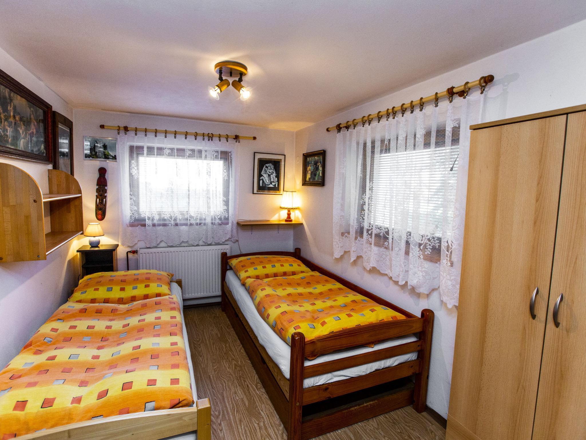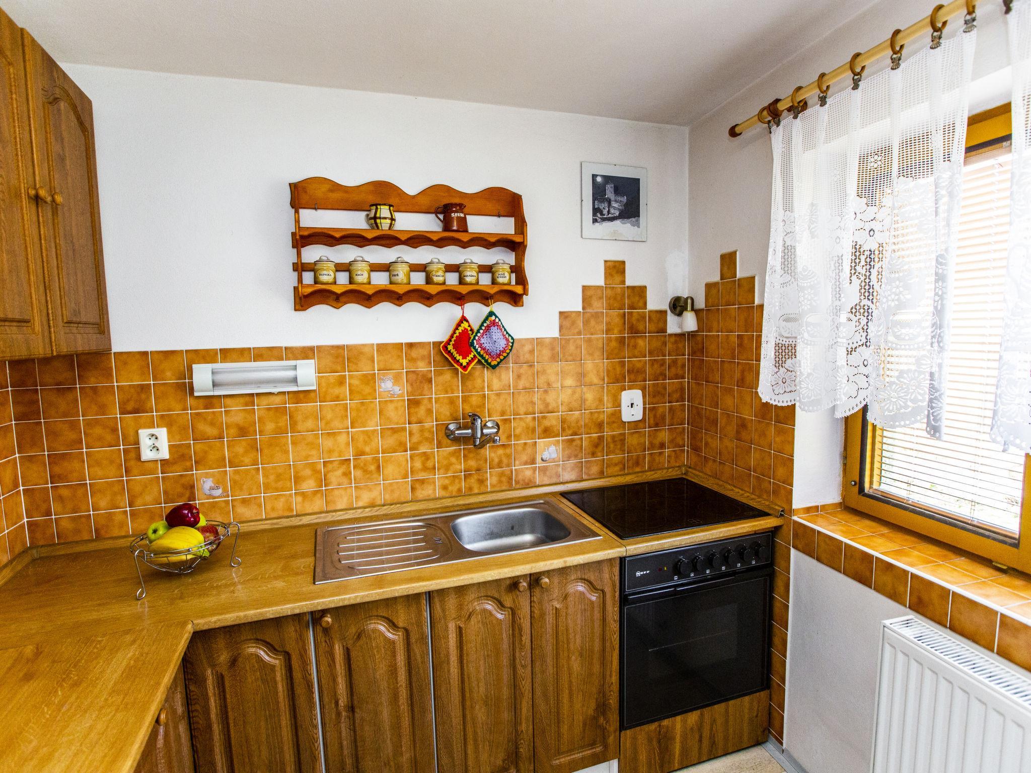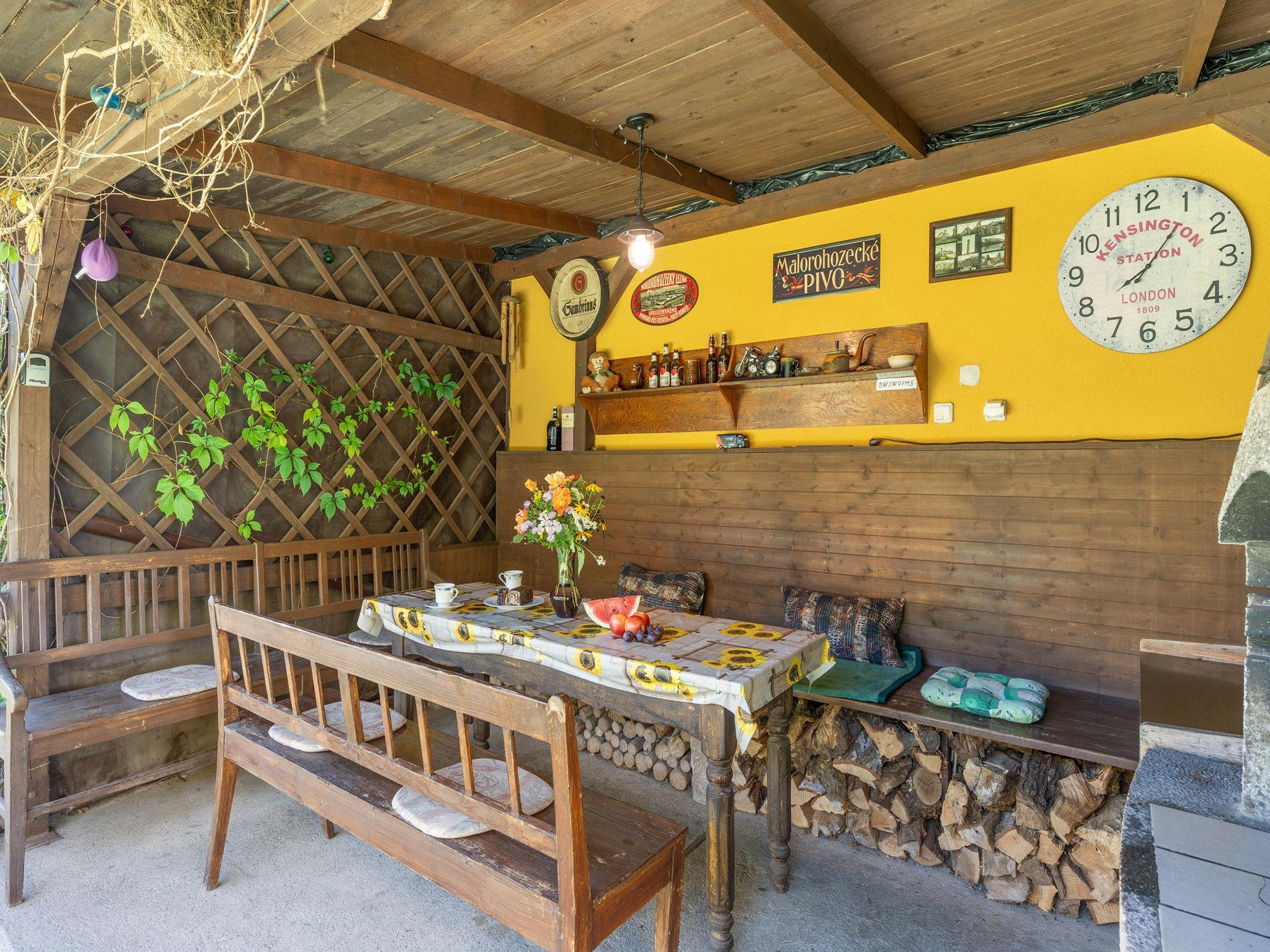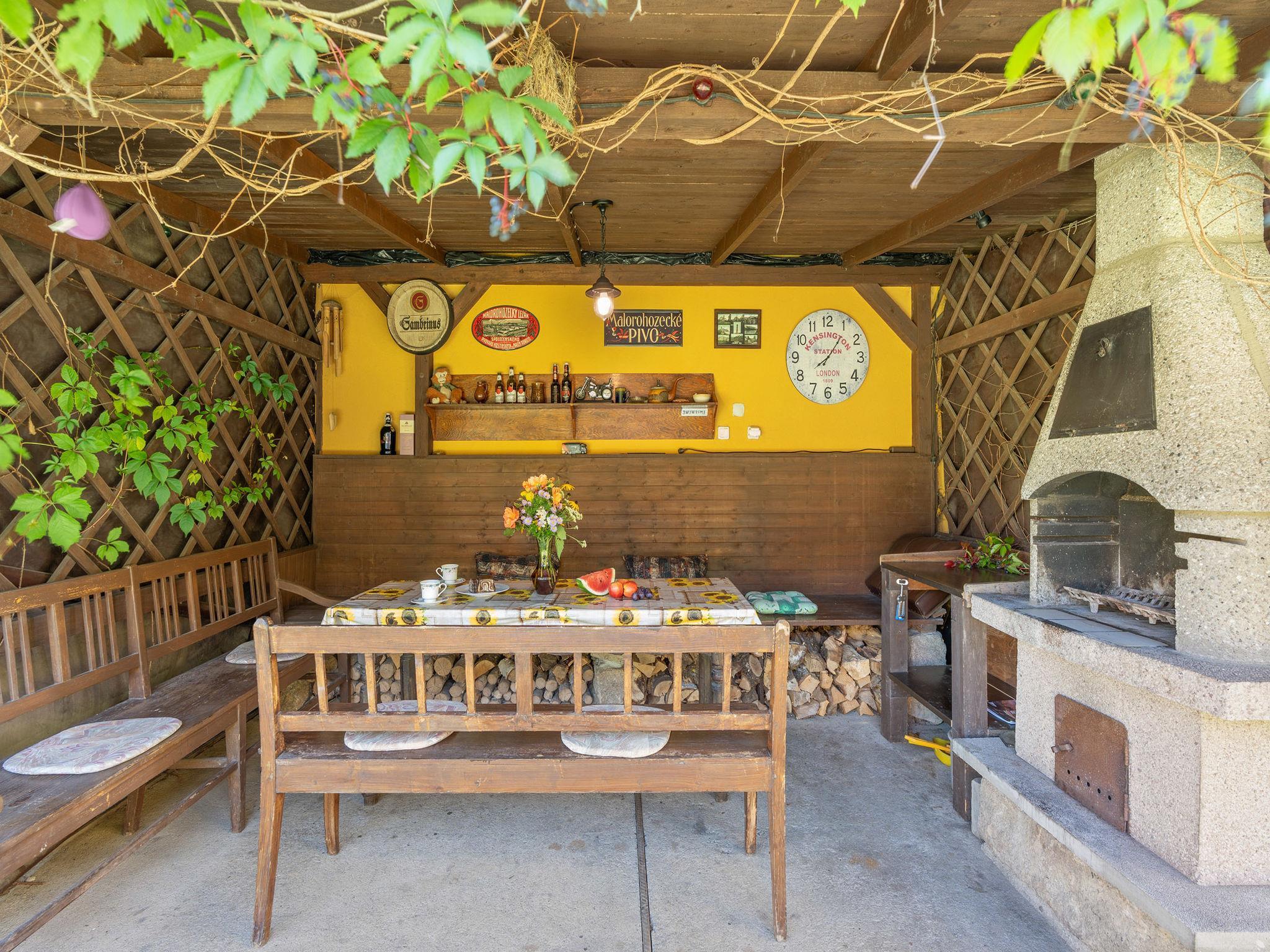 Cosy house "Tatobity", 2 storeys, semi-detached. In the resort, in a sunny position, 50 m from the edge of the forest, in the countryside. Private: garden (fenced). Pergola, garden furniture, barbecue, fireplace. In the house: storage room for bicycles, storage room for skis. Parking at the house. Grocery 200 m, shopping centre 11 km, restaurant 50 m, bus stop "Tatobity U Studnicku" 50 m, railway station "Rovensko p. Troskami" 9 km, outdoor swimming pool 8 km. Golf course (9 hole) 9 km, tennis 500 m, ski lift 4 km, children's playground 500 m. Nearby attractions: Rozhledna Kozákov 6 km, Lázne Sedmihorky 8 km, Hrubá Skála/CHKO Ceský ráj 10 km, Semily, Turnov 10 km, Hrad Valdštejn, Zbiroh 11 km, Hrad Trosky 13 km, Prachovské skály 20 km, Hrad Kost 24 km. Well-known ski regions can easily be reached: Kozákov 4 km, Vysoké nad Jizerou 25 km.