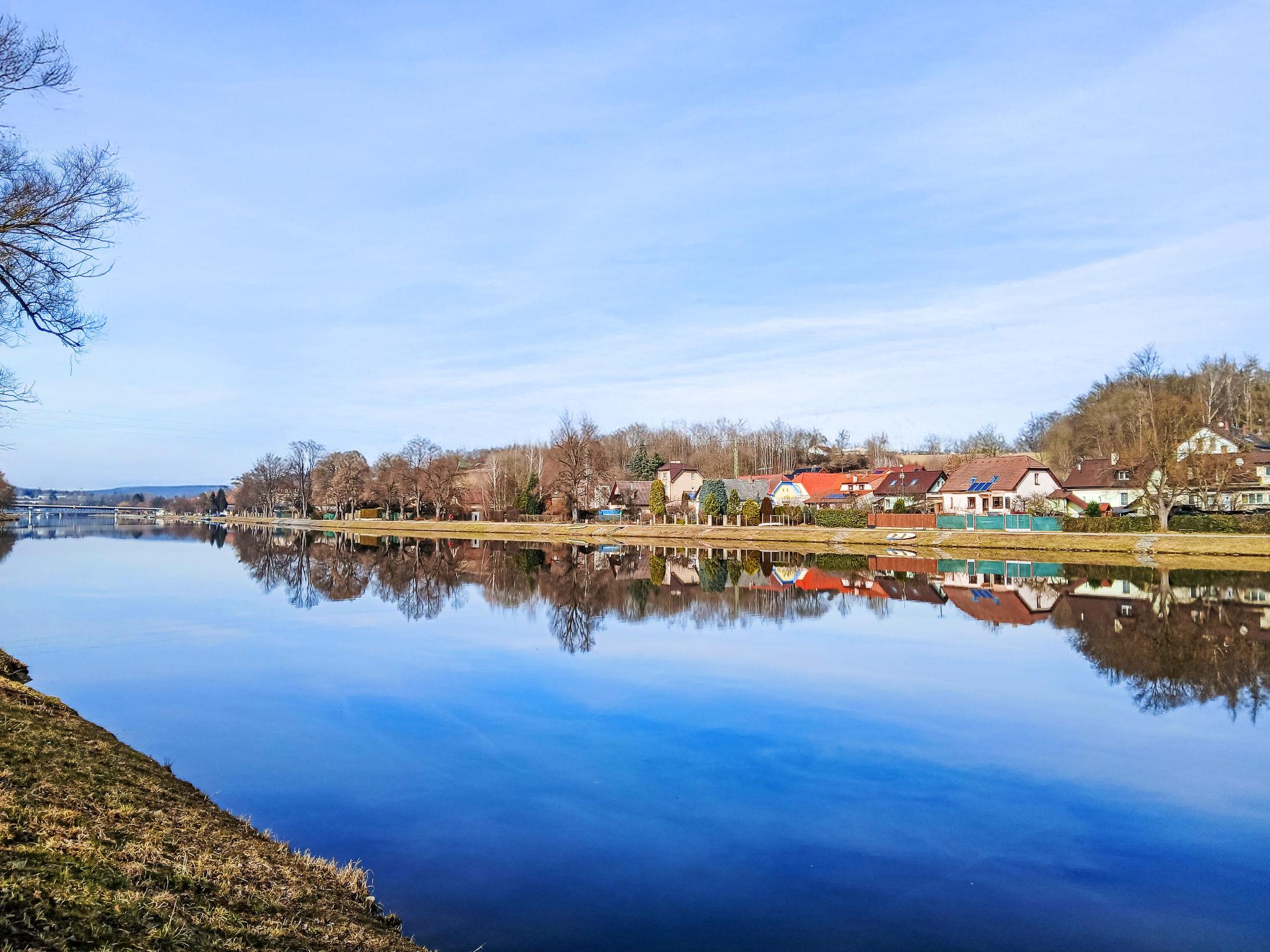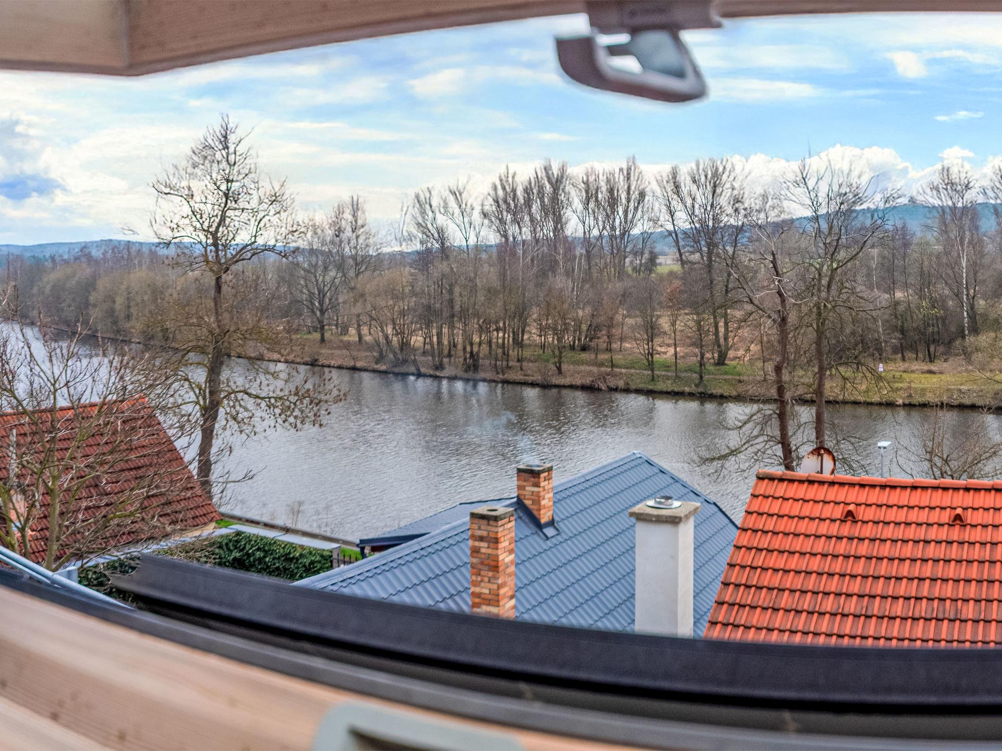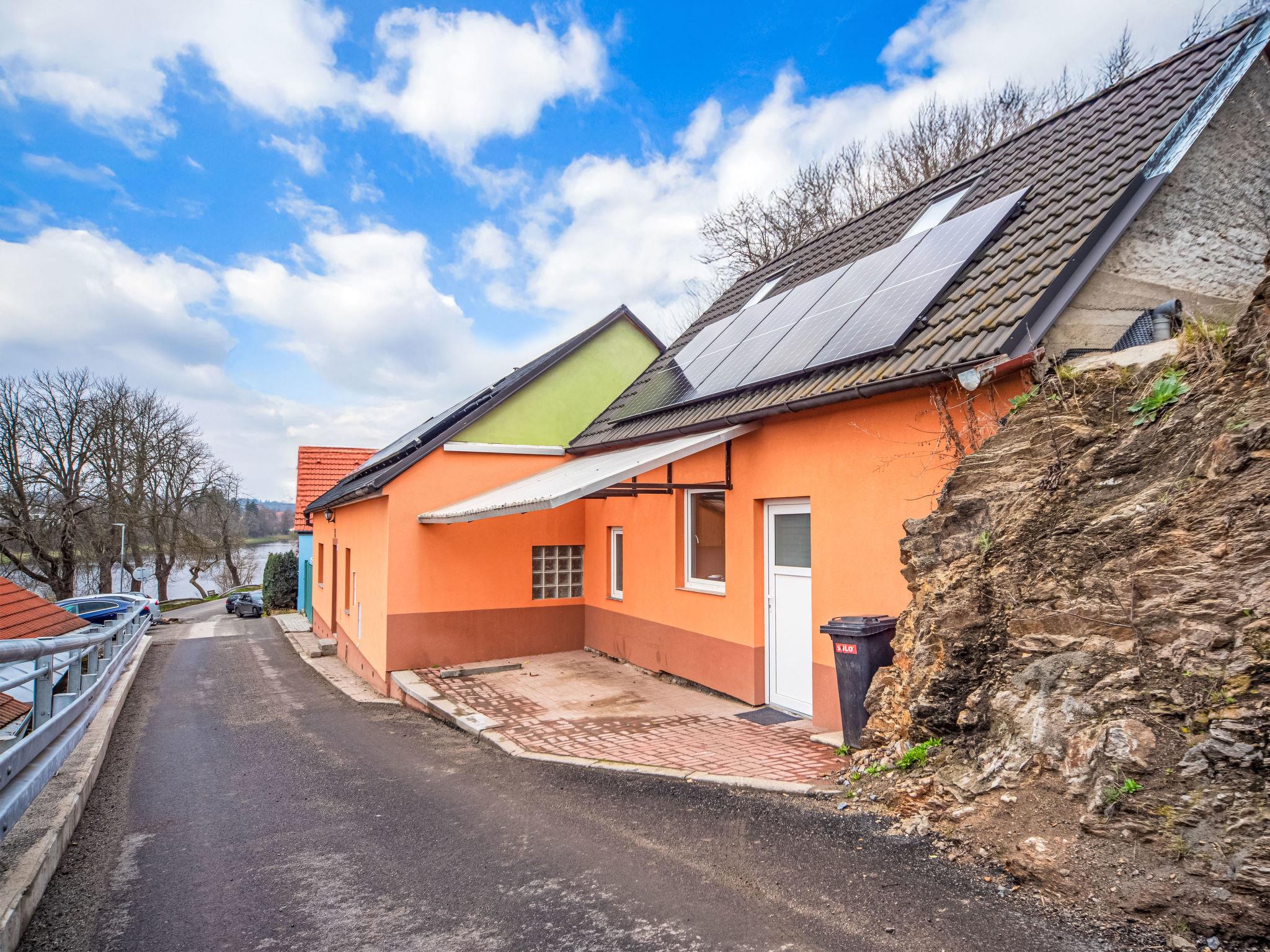 "Vltava", 2-room semi-detached house. Simple and practical furnishings: kitchen-/living room (2 hot plates, oven, kettle, microwave, electric coffee machine) with dining table, 1 pull-out bed and electric heating. Shower. Upper floor: (steep stair) with sloping ceilings, 1 room with 2 beds and separate WC. Small terrace. Terrace furniture. View of the river. Facilities: Internet (WiFi). Maximum 1 pet/ dog allowed.