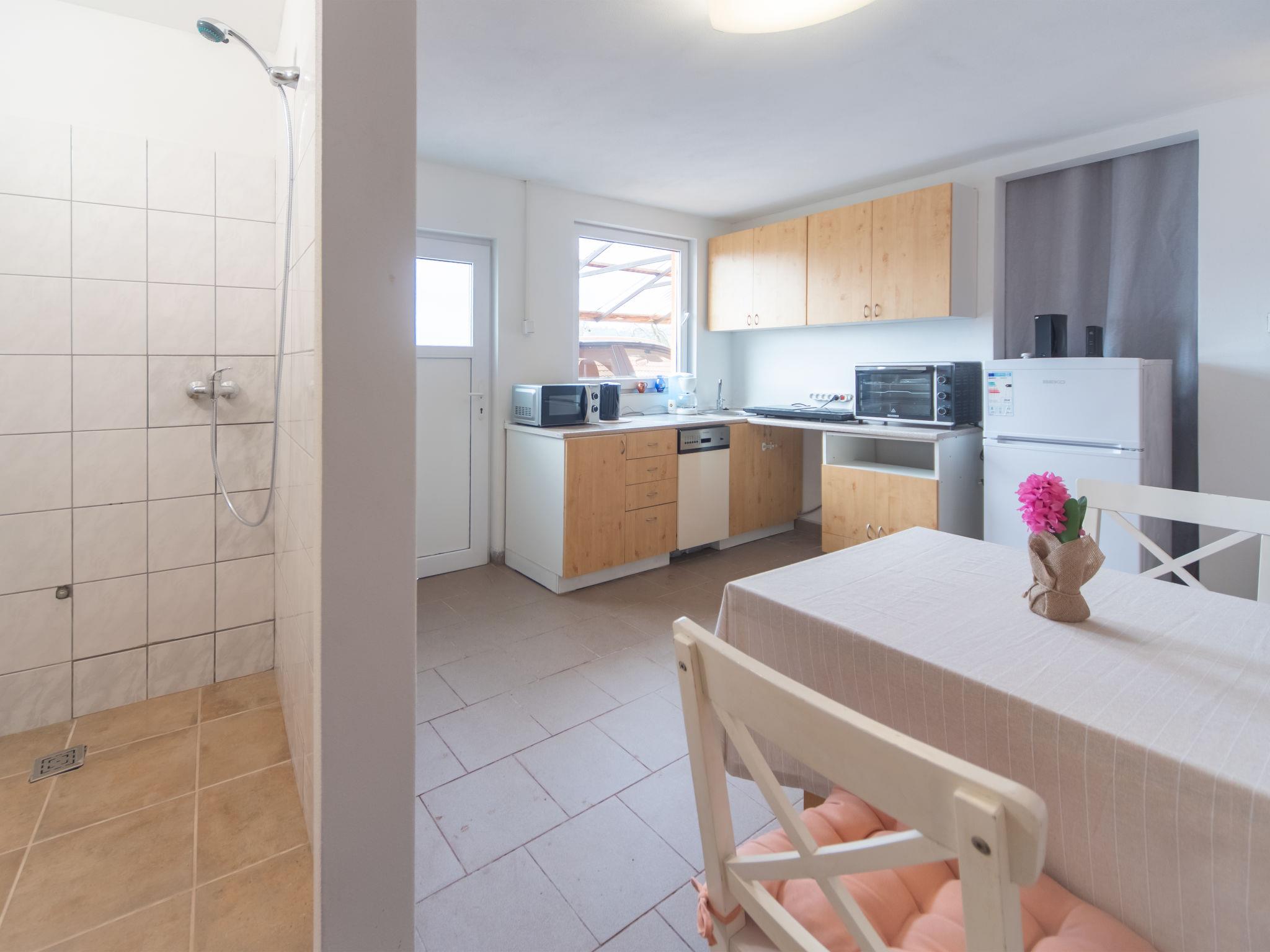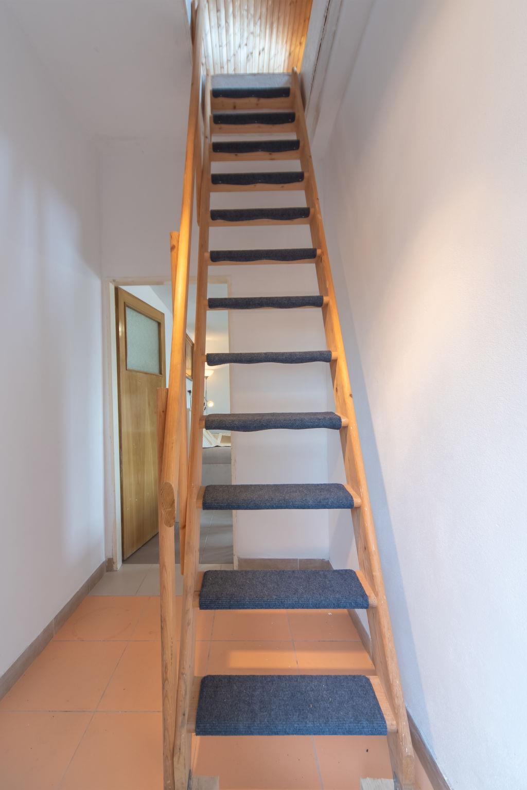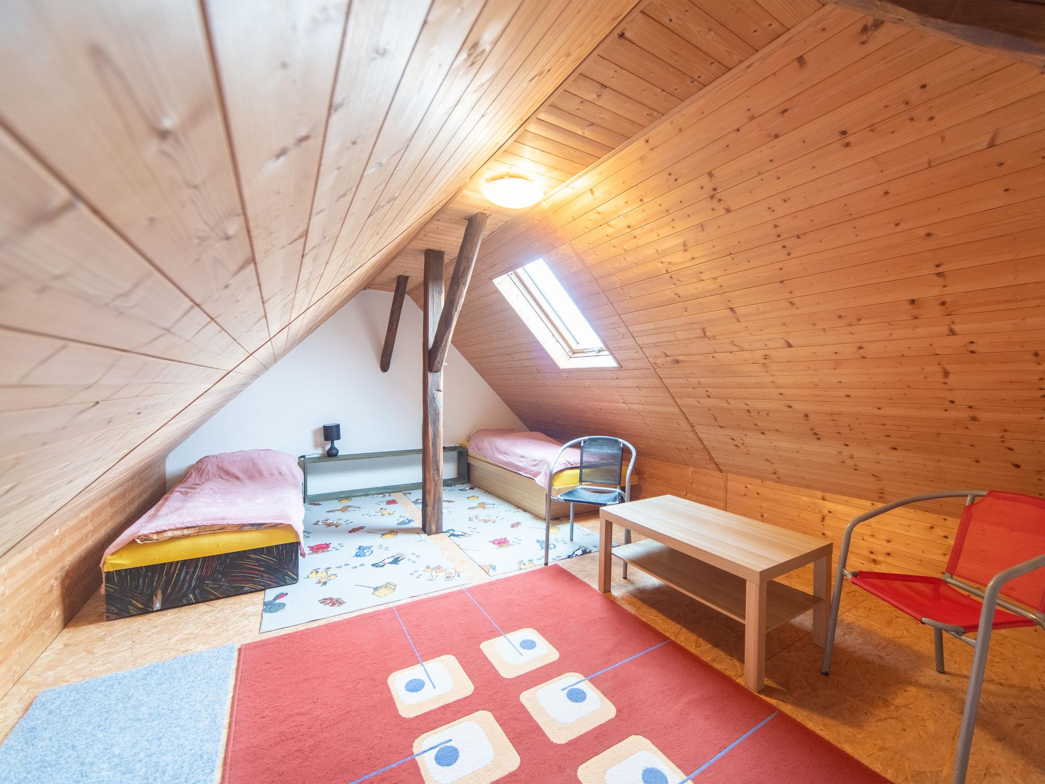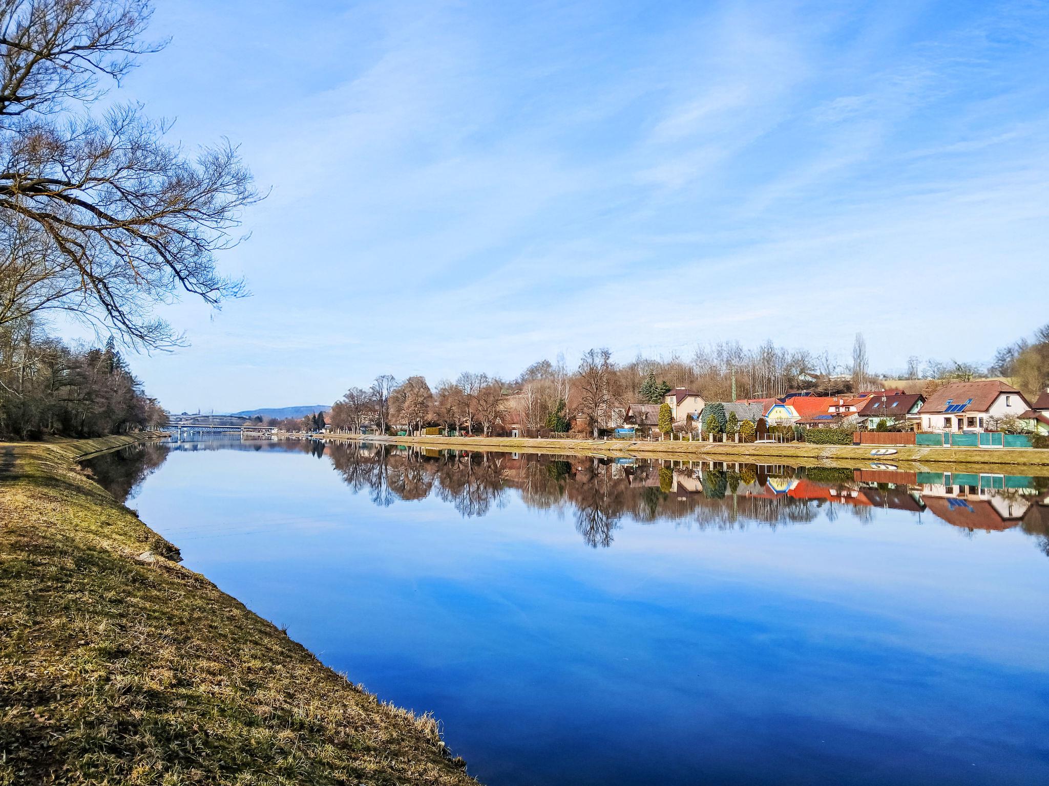 "Vltava", 2-room semi-detached house. Simple and practical furnishings: kitchen-/living room (2 hot plates, oven, kettle, microwave, electric coffee machine) with dining table, 1 pull-out bed and electric heating. Shower. Upper floor: (steep stair) with sloping ceilings, 1 room with 2 beds and separate WC. Small terrace. Terrace furniture. View of the river. Facilities: Internet (WiFi). Maximum 1 pet/ dog allowed.