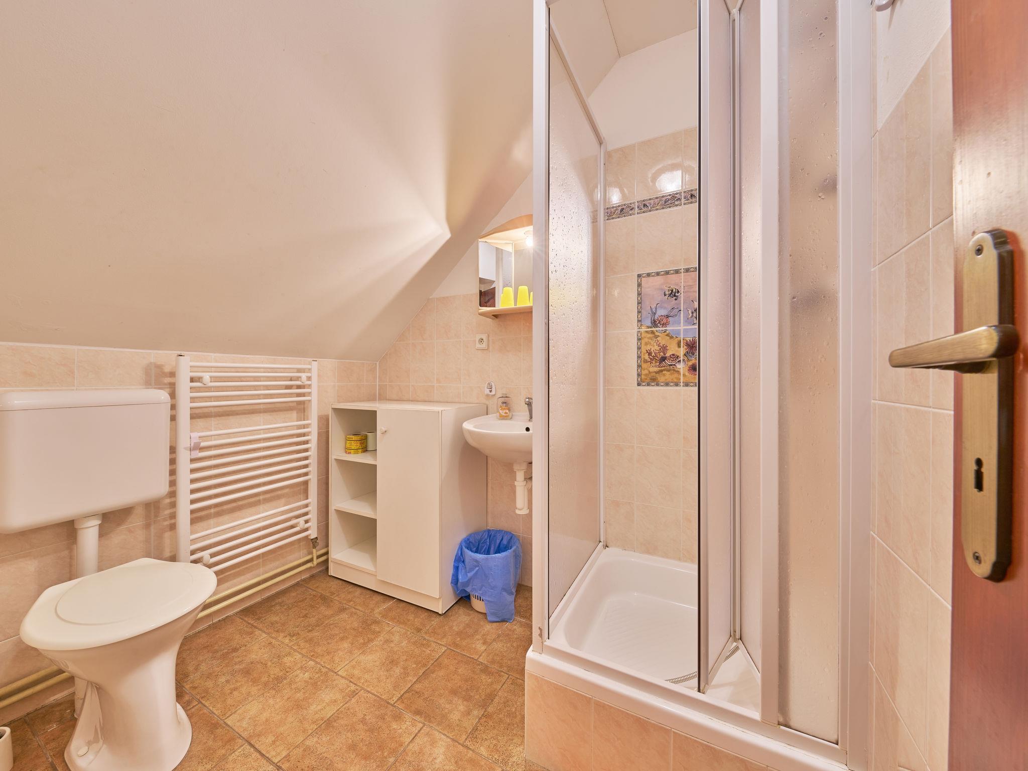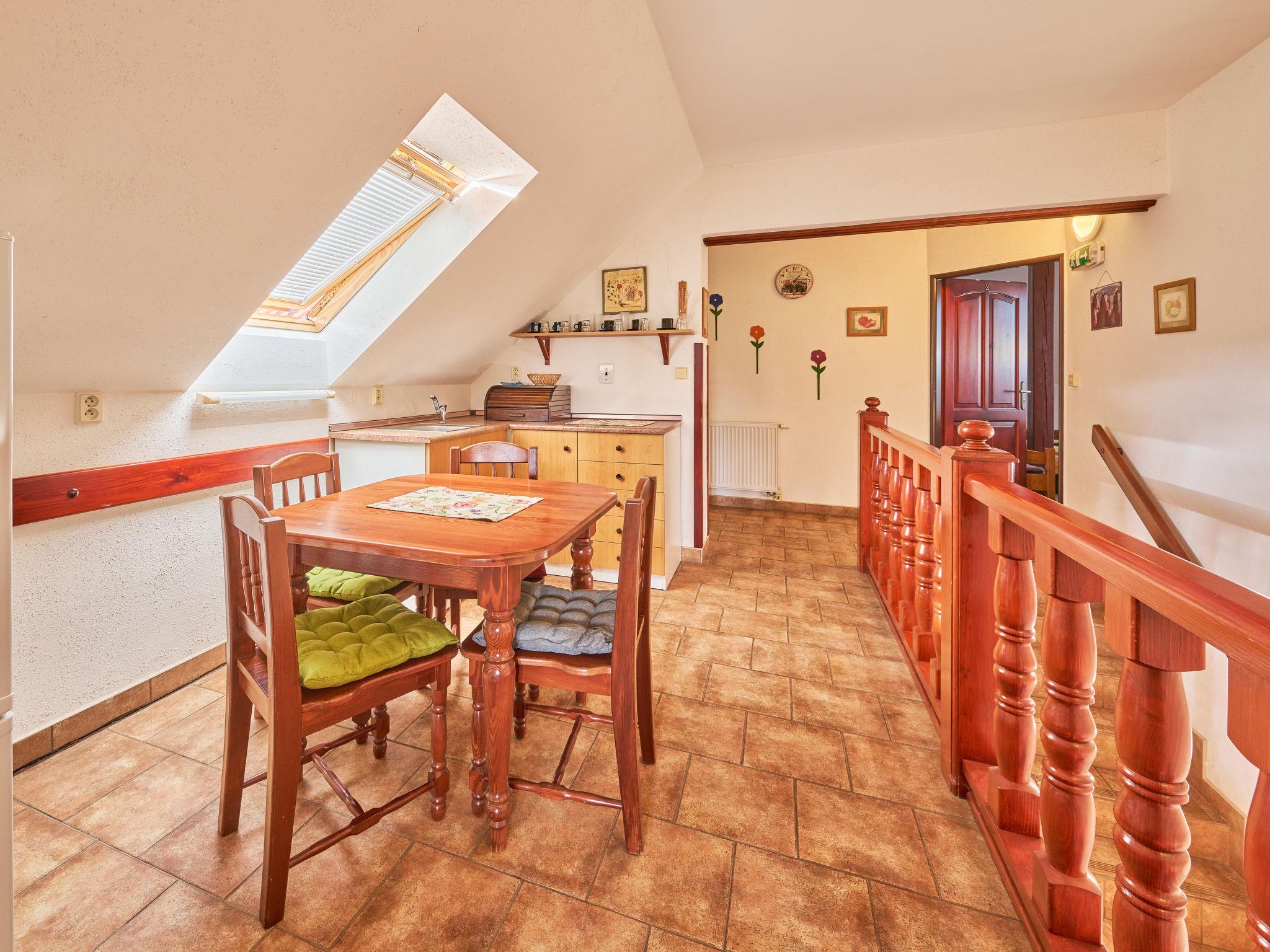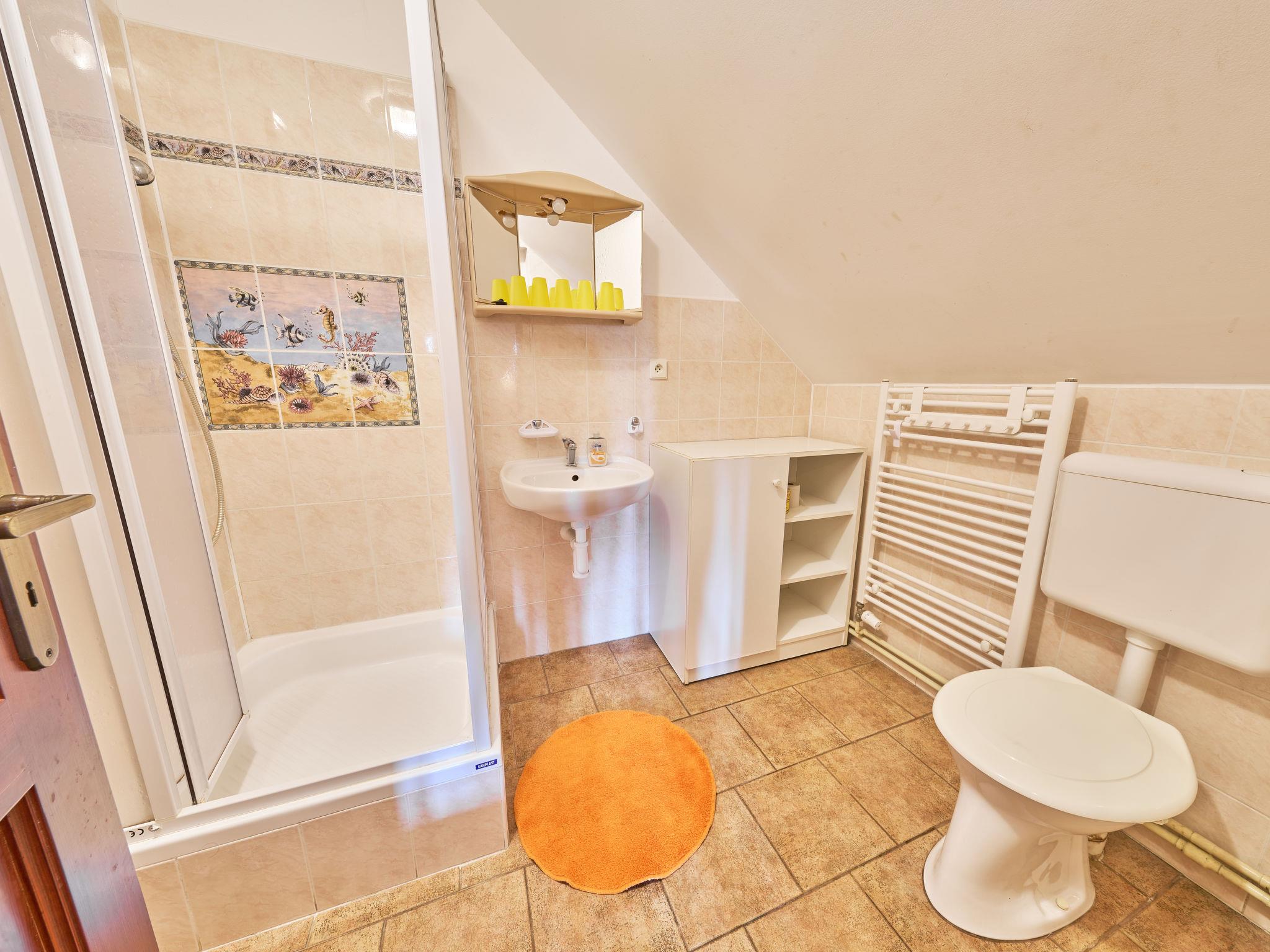 6-room house 270 m2 on 2 levels. Renovated in 2014, beautiful and stylish furnishings: playroom with dining table. Living room with Scandinavian wood stove, dining table, dining nook, bar, satellite TV and radio. 1 room with 4 beds and shower/WC. Kitchenette (4 hot plates, dishwasher, toaster, kettle, microwave, electric coffee machine). Electric heating. Top floor: 1 room with sloping ceilings with 6 beds and shower/WC. 1 room with sloping ceilings with 3 beds and shower/WC. 1 room with sloping ceilings with 3 beds and shower/WC. Studio with 4 beds, 1 double bed, dining table, kitchen corner, shower/WC, satellite TV and radio. With sloping ceilings, open kitchen in the entrance (2 hot plates, toaster, kettle, microwave) with dining table. Electric heating. Patio. Terrace furniture, barbecue. Facilities: children's high chair, baby cot. Internet (WiFi, free). Please note: suitable for families. Non-smokers only. Maximum 2 pets/ dogs allowed. The studio, which is located on the 1st floor, has a separate entrance from the back of the house.