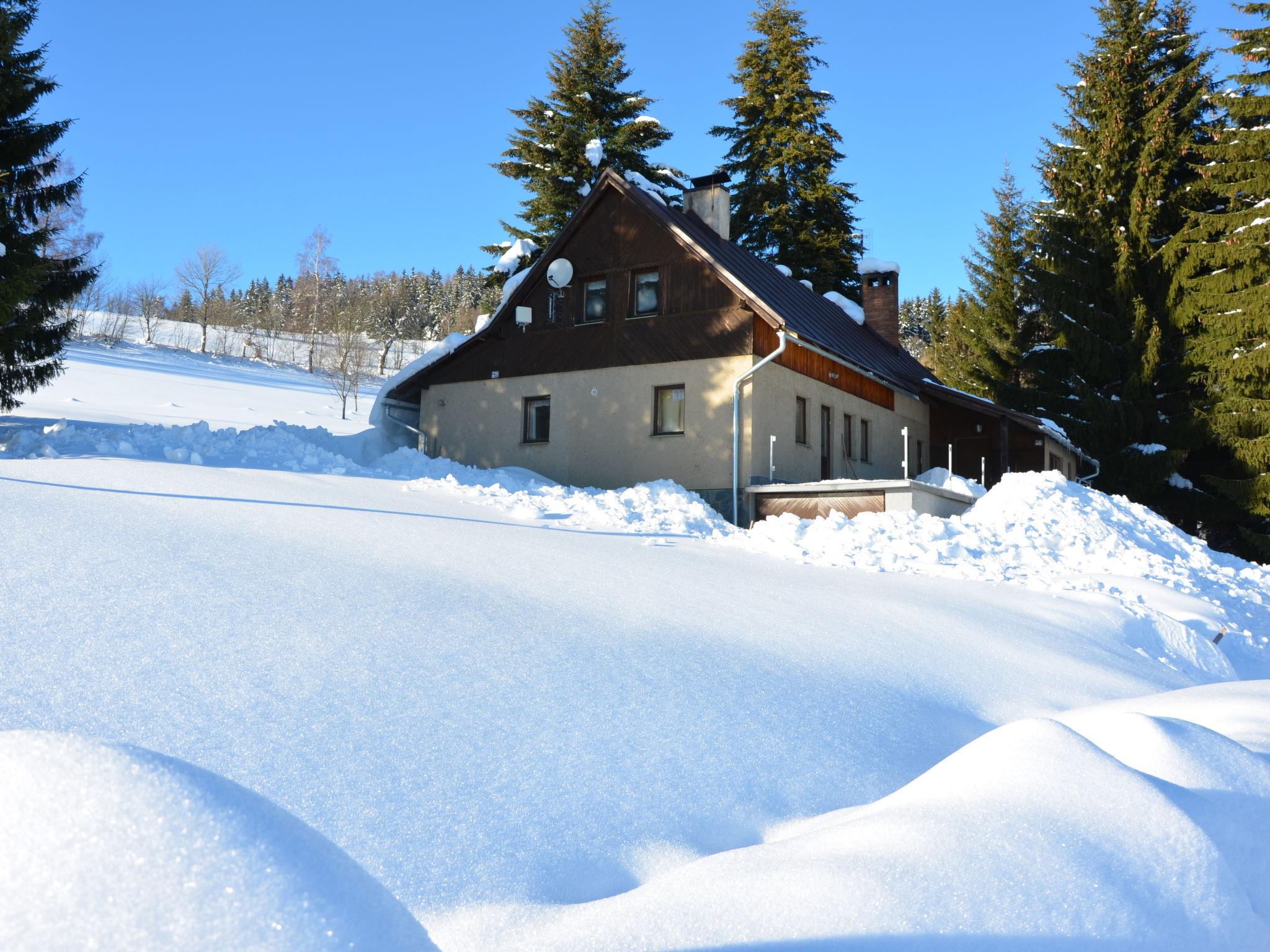 Vítkovice 8 km from Benecko: Cosy cottage "Hoja", surrounded by trees and meadows. 2 apartments in the property. On the outskirts, 100 m from the edge of the forest, 900 m from the skiing area, in a cul-de-sac, in the countryside. For shared use: property, lawn for sunbathing. Terrace, garden furniture. In the house: WiFi. Public parking 800 m. Grocery 2 km, restaurant 1 km, bus stop "Vítkovice,kostel" 1.3 km, railway station "Poniklá" 10 km, outdoor swimming pool 8 km, indoor swimming pool 11 km. Golf course (9 hole) 26 km, riding stable 5 km, walking paths from the house, cycle lane 50 m, ski lift 1 km, chair lift 1 km, ski rental 1 km, ski school 1 km, cross country ski track 200 m, children's playground 2 km. Nearby attractions: Bikepark Aldrov 1,5 km, Farma Hucul 5 km, Rautis Poniklá - perlickové ozdoby 7 km, Zámek Jilemnice, Rokytnice nad Jizerou 11 km, Zámek Vrchlabí 17 km, Harrachov 24 km, Špindleruv Mlýn 30 km, Pec pod Snežkou 45 km. Well-known ski regions can easily be reached: Vurmovka, Aldrov 1 km, Janova Hora 2 km, Rokytnice n. J. 10 km, Benecko 15 km, Herlíkovice 20 km, Špindleruv Mlýn 30 km. Hiking paths: Krkonošský národní park. Please note: Loading and unloading of baggage is possible at the holiday house. The photograph shows a typical example.