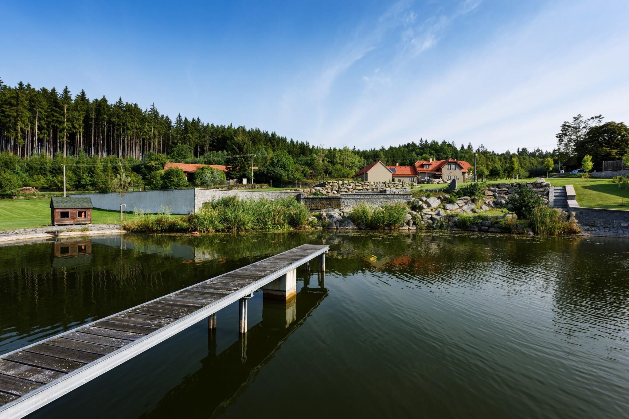 Denne luksuriøse ferievilla i Varvažov tilbyder den perfekte blanding af komfort og elegance til familier eller store grupper på op til 10 personer. Villaen har et rummeligt opholdsareal på 150 m², fire smukt møblerede soveværelser og tre moderne badeværelser. Det fuldt udstyrede køkken, inklusive køleskab, fryser, ovn, mikroovn, opvaskemaskine og kaffemaskine, sikrer, at måltidstilberedningen er ubesværet. Gæsterne kan slappe af i den hyggelige stue med tv eller nyde en spilleaften. Derudover tilføjer vaskemaskinen bekvemmelighed til længere ophold, hvilket gør denne villa til et hjem væk fra hjemmet. Beliggende på en stor grund i et landligt, børnevenligt miljø, byder denne villa på masser af plads til udendørs aktiviteter. Børn kan nyde at løbe rundt, mens de voksne tilbereder måltider på terrassens grill, alt imens de nyder en forfriskende drink og de fredelige omgivelser. Regionen Sydbøhmen byder på masser af muligheder for aktiviteter, fra svømning i nærliggende vandland og golf til at udforske områdets naturlige skønhed. Om sommeren kan du overveje en afslappende bådtur på Vltava-floden eller besøge det fantastiske Zamek Orlík-slot. Om vinteren er regionen en populær destination for vintersportsentusiaster. Villaen tilbyder de ideelle rammer for at skabe uforglemmelige ferieminder i Tjekkiet. Uanset om du leder efter eventyr, afslapning eller familiesjov, giver dette luksuriøse hjem og dets maleriske omgivelser den perfekte baggrund. Bemærk venligst, at lejeprisen er eksklusiv el-omkostninger, hvilket sikrer, at dit ophold er både behageligt og overkommeligt.