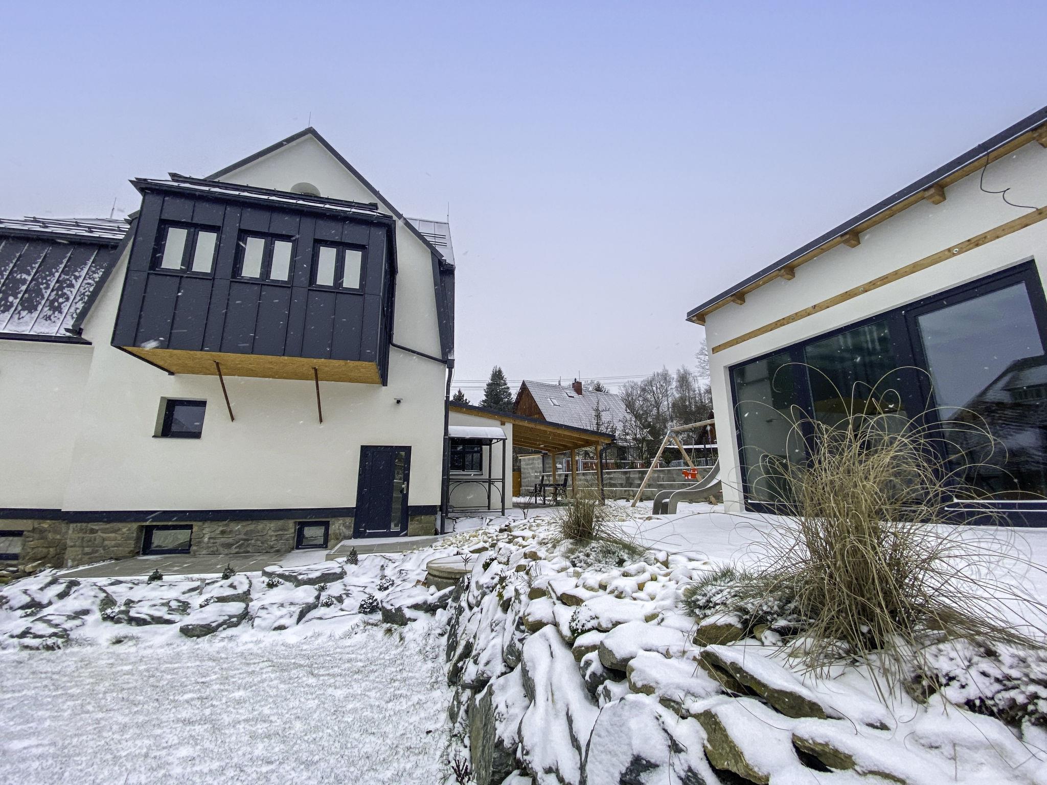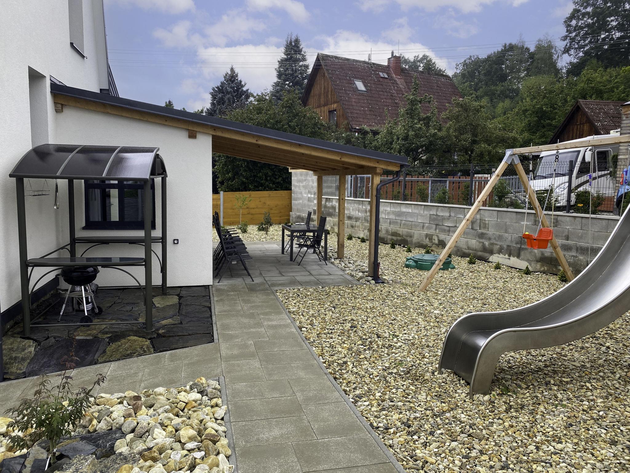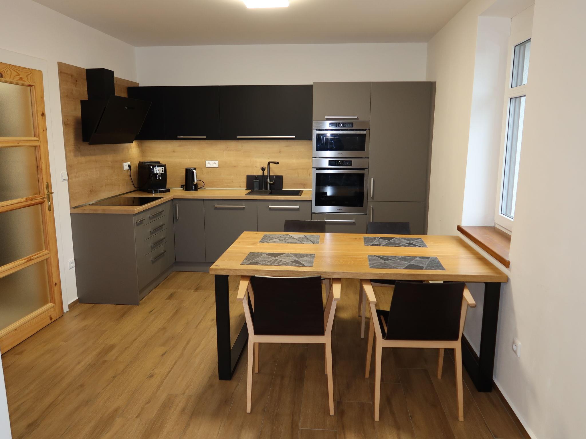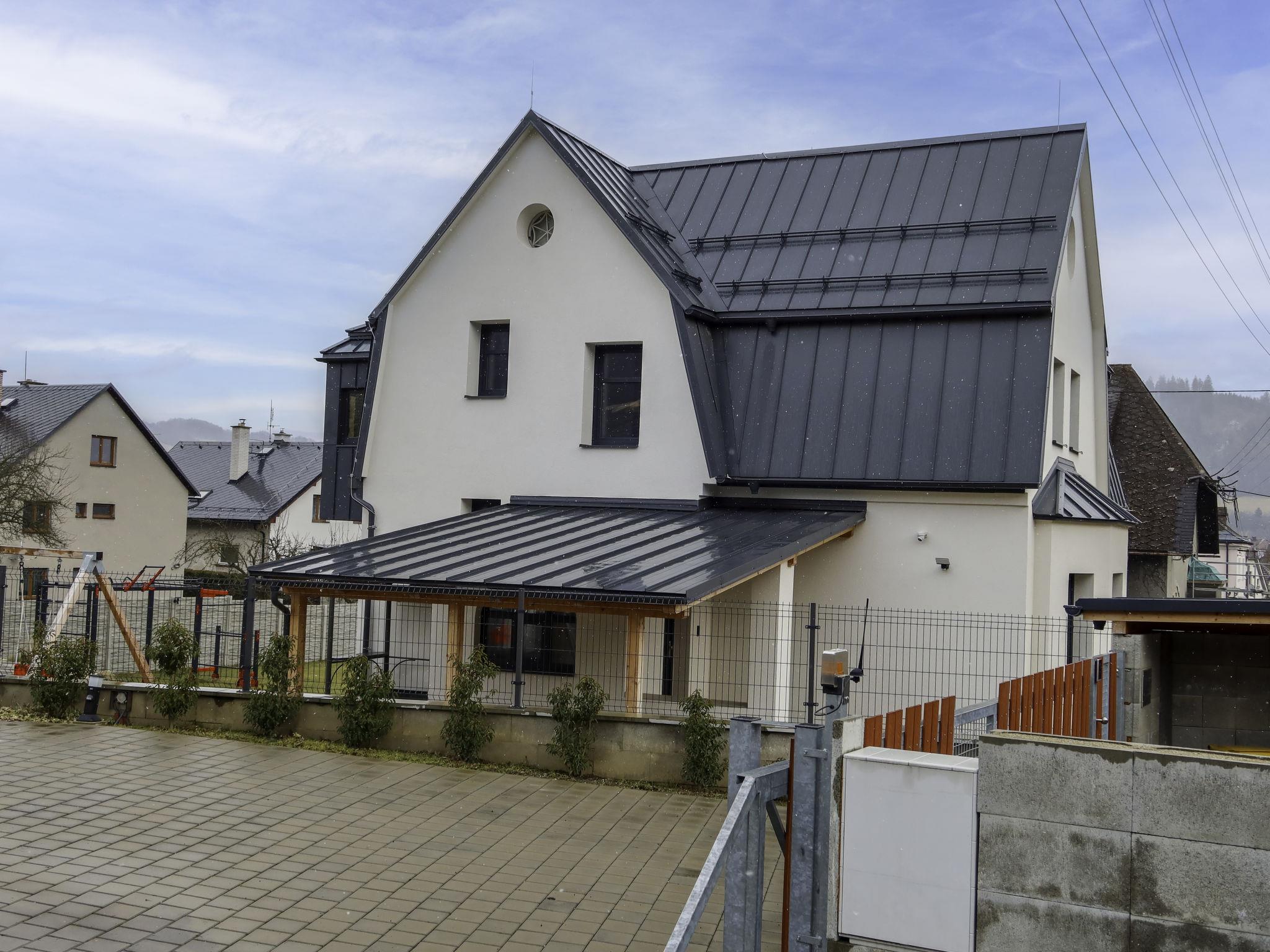 Very beautiful villa "Velké Losiny", 2 storeys, built in 1930, renovated in 2021. 2 apartments in the property. In the resort, 500 m from the centre, in a quiet position, 8 km from the skiing area, in a cul-de-sac. Private: property 750 m2 (fenced), garden. Terrace, garden furniture, barbecue, children's playground (slide, swing). In the house: storage room for skis, central heating system, washing machine, tumble dryer. Parking (for 6 cars) on the premises. Grocery 600 m, supermarket 700 m, shopping centre 10 km, restaurant, café, bus stop 900 m, railway station "Velké Losiny" 900 m, 500 m, thermal baths "Velké Losiny" 500 m. Tennis 9 km, minigolf 700 m, sports centre 9 km, walking paths from the house, cycle lane 100 m, ski lift 8 km, chair lift 10 km, skisport facilities 10 km, slopes 8 km, ski rental 10 km, ski school 10 km, children's ski school 10 km, cross country ski track 8 km, children's playground 1.5 km. Nearby attractions: Termály 500 m, Muzeum papíru, rucní papírna 1 km, Zámek Velké Losiny 1.8 km, Šumperk 11 km, Vodní nádrž Dlouhé stráne 20 km, Jeseník 35 km. Well-known ski regions can easily be reached: Kouty nad Desnou 10 km, Cervenohorské sedlo 20 km, Praded 50 km. Hiking paths: CHKO Jeseníky.