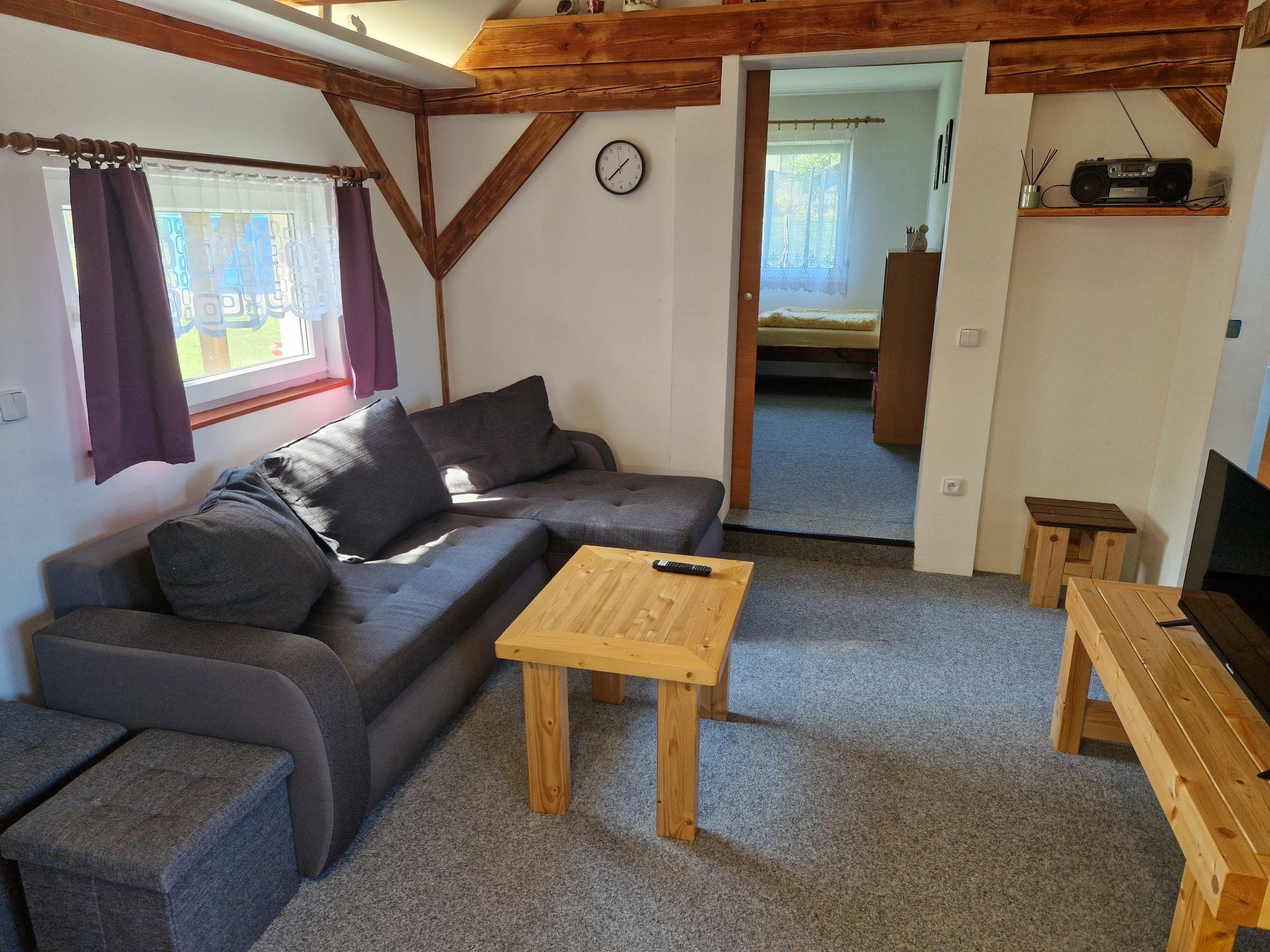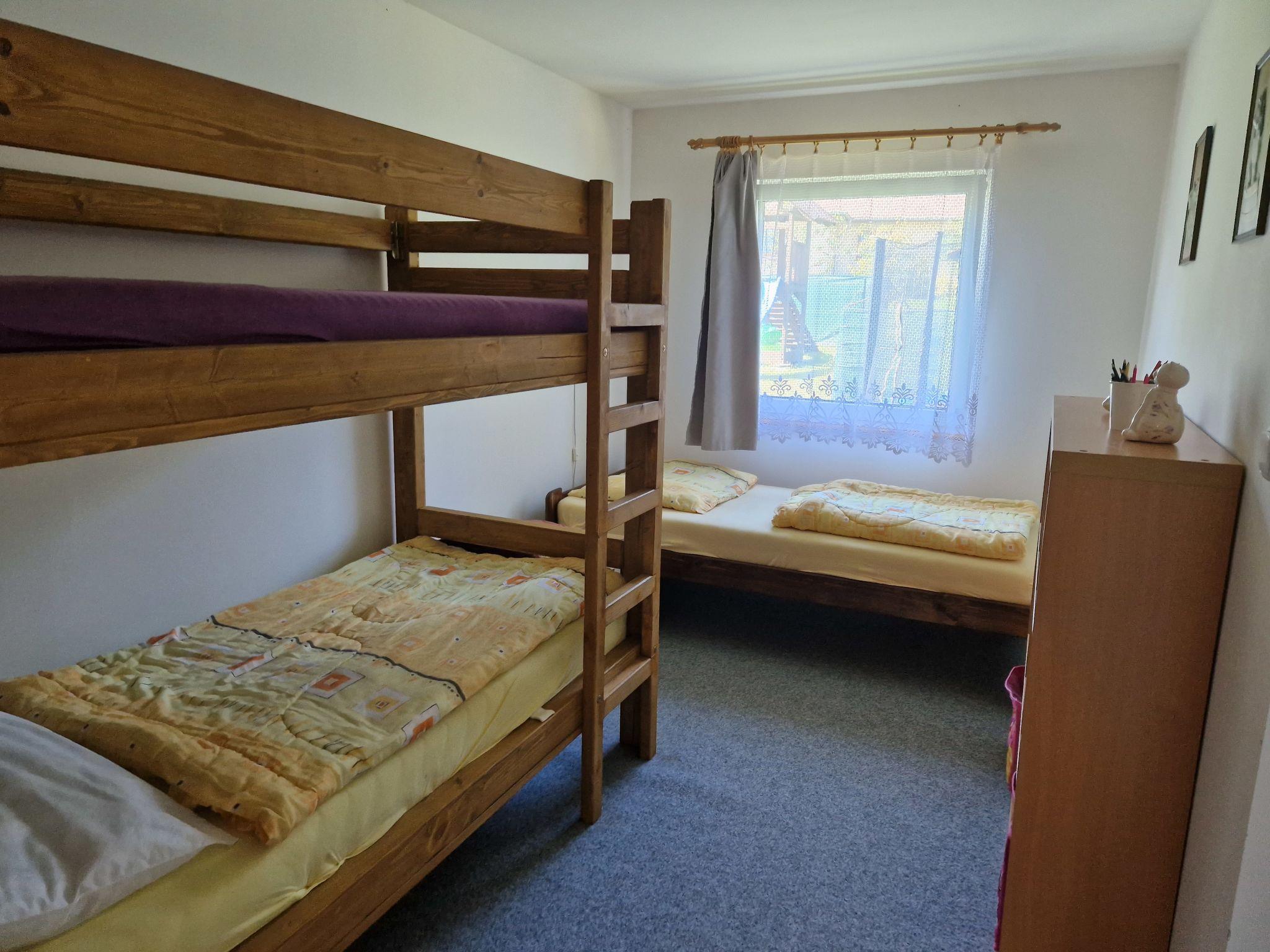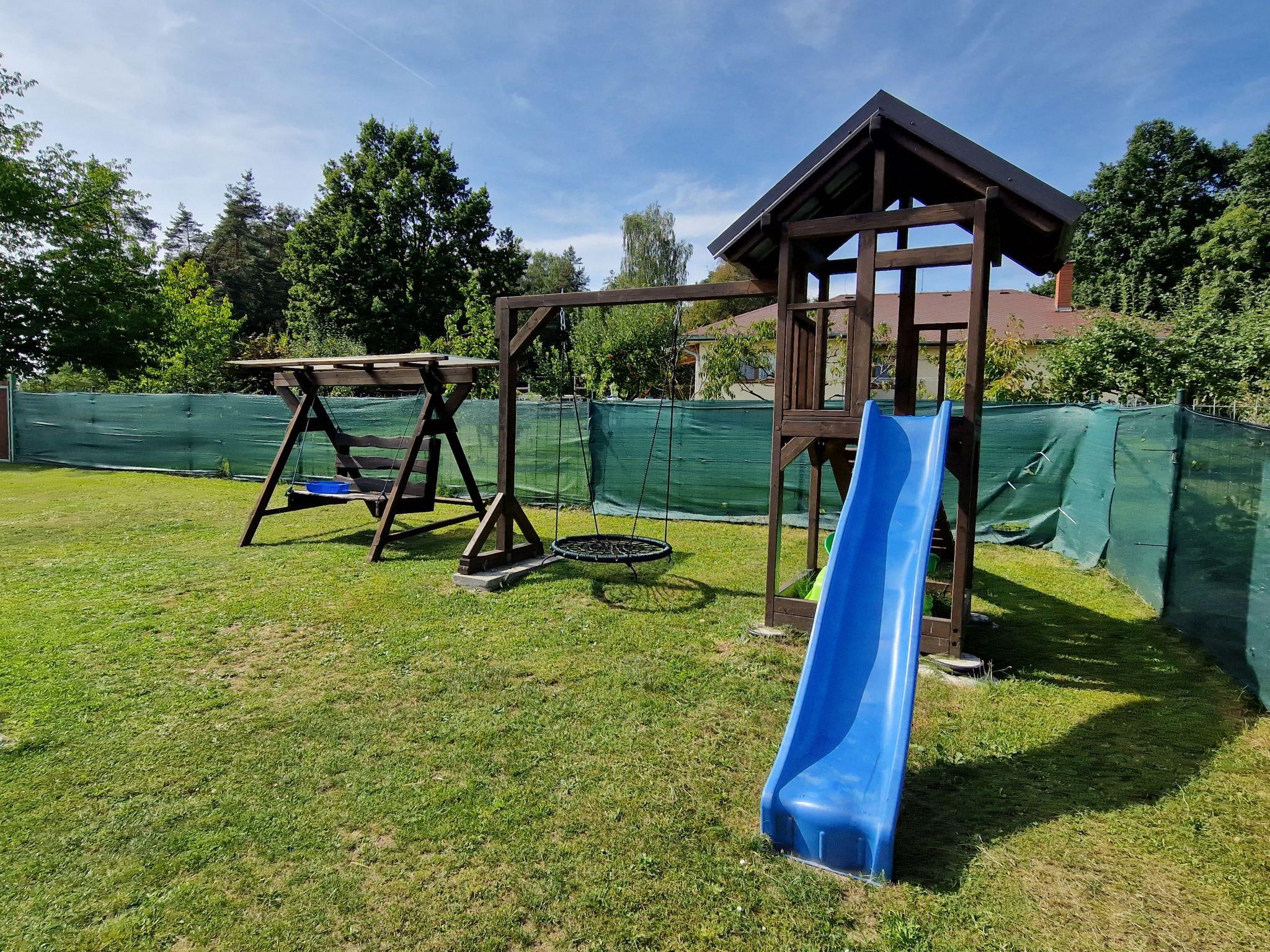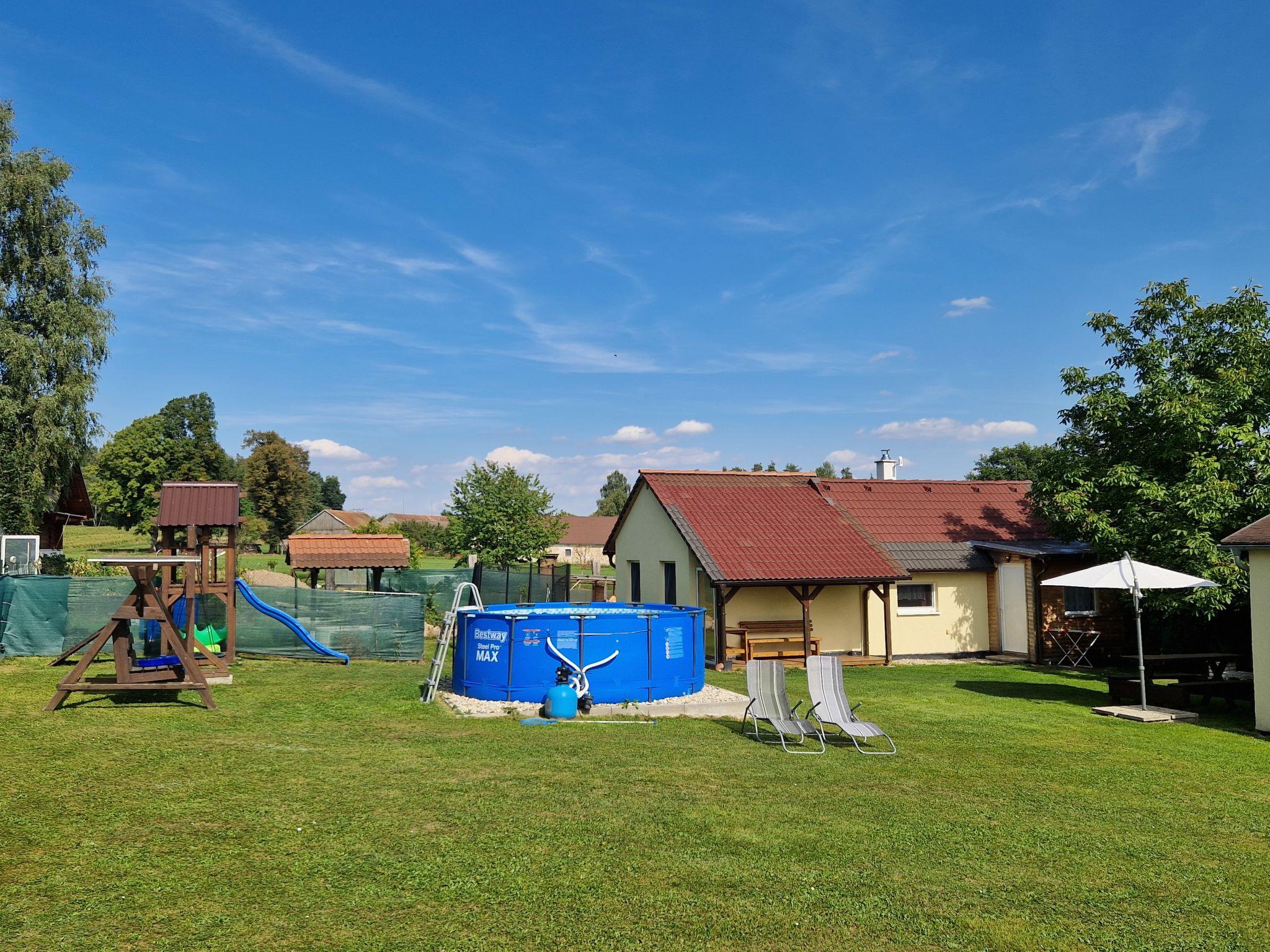 Cosy bungalow "Velký Ratmírov", detached. In a quiet, sunny position. Private: property 100 m2 (fenced), swimming pool (above ground) round (3.6 m diameter, depth 120 cm, seasonal availability: 01.Jun. - 30.Sep.). Garden furniture, barbecue, children's playground. In the complex: trampoline. Parking. Shop, restaurant 500 m, bus stop "Velký Ratmírov" 500 m, railway station "Debolín" 2.5 km. Fishing possibilities 2 km. Nearby attractions: Zámek Kardašova Recice, Pluhuv Ždár 10 km, Zámek, muzeum Jindrichuv Hradec 10 km, Zámek Cervená Lhota, Jemcina, Dírná 14 km, Zoopark Na Hrádecku 14 km, Hrad a zámek Stráž nad Nežárkou 16 km, Provaznické muzeum Karla Klika 16 km. Well-known lakes can easily be reached: Velká Holná 6 km. Hiking paths: Ceská Kanada 20 km, Trebon 30 km.