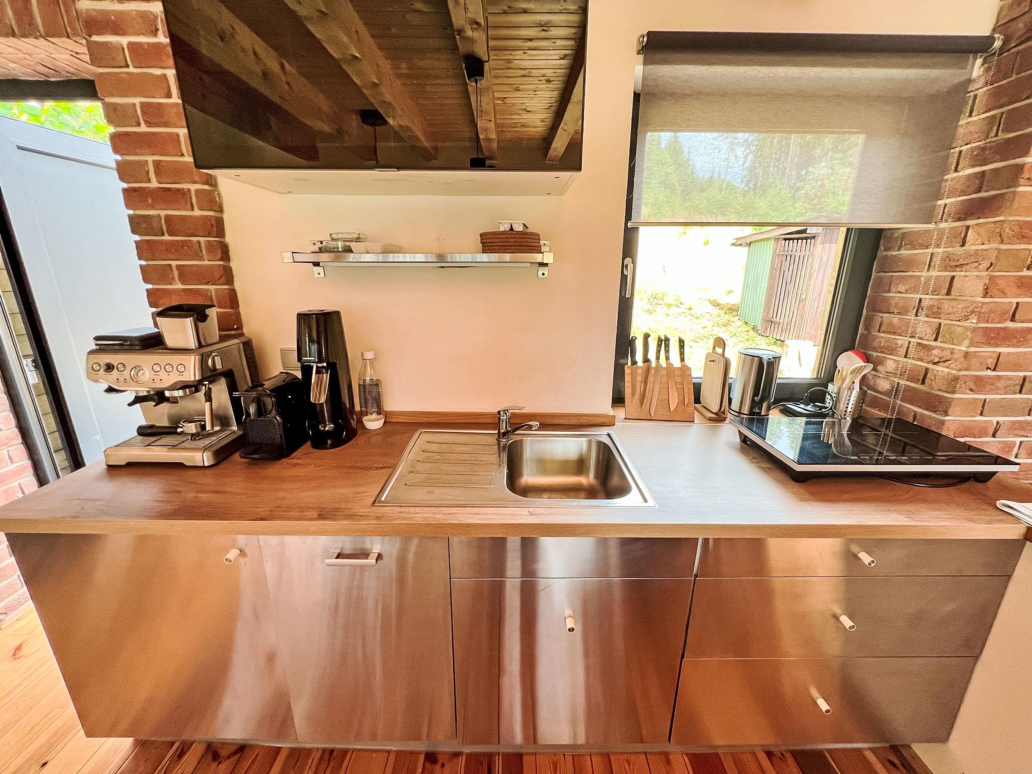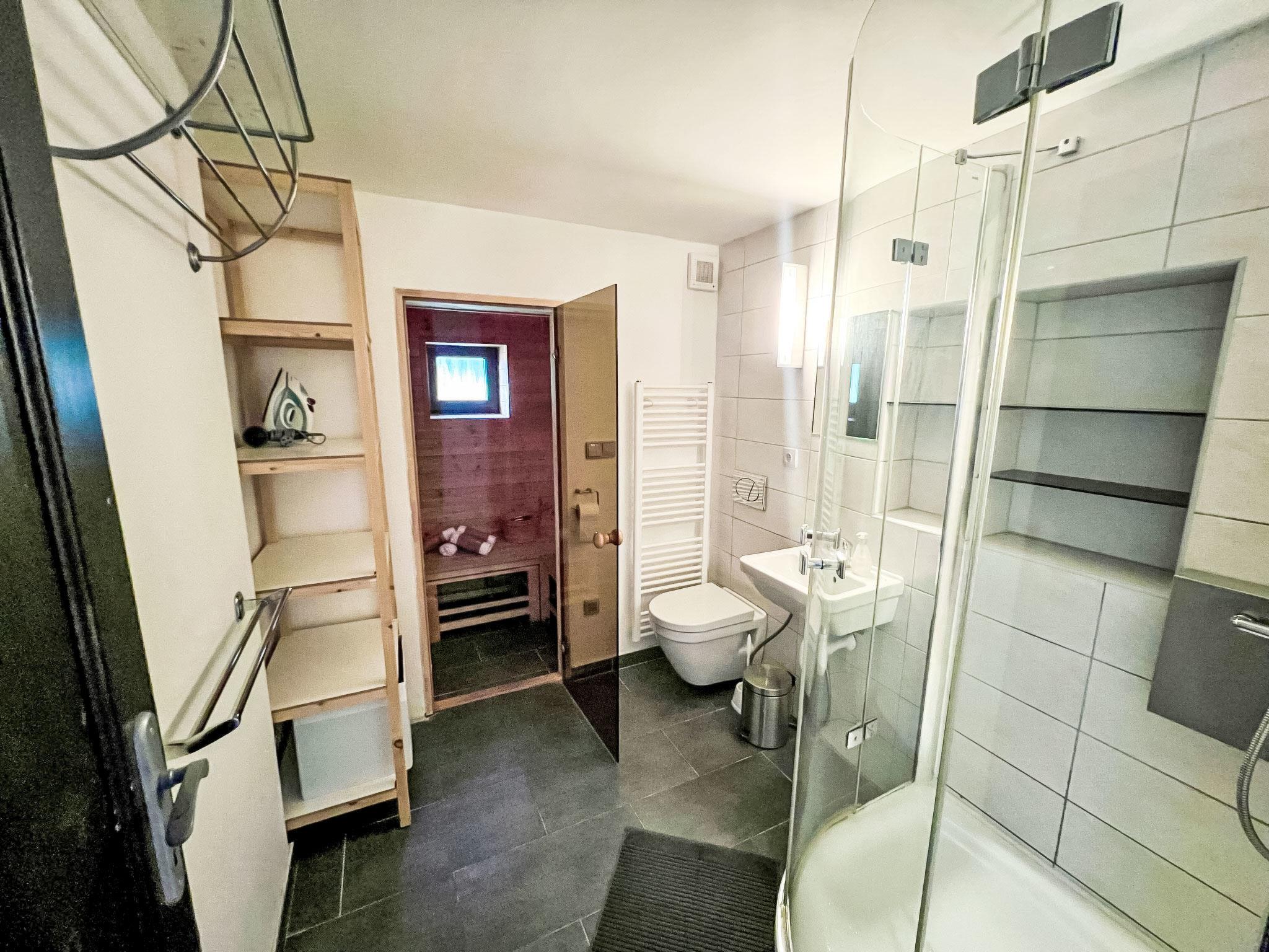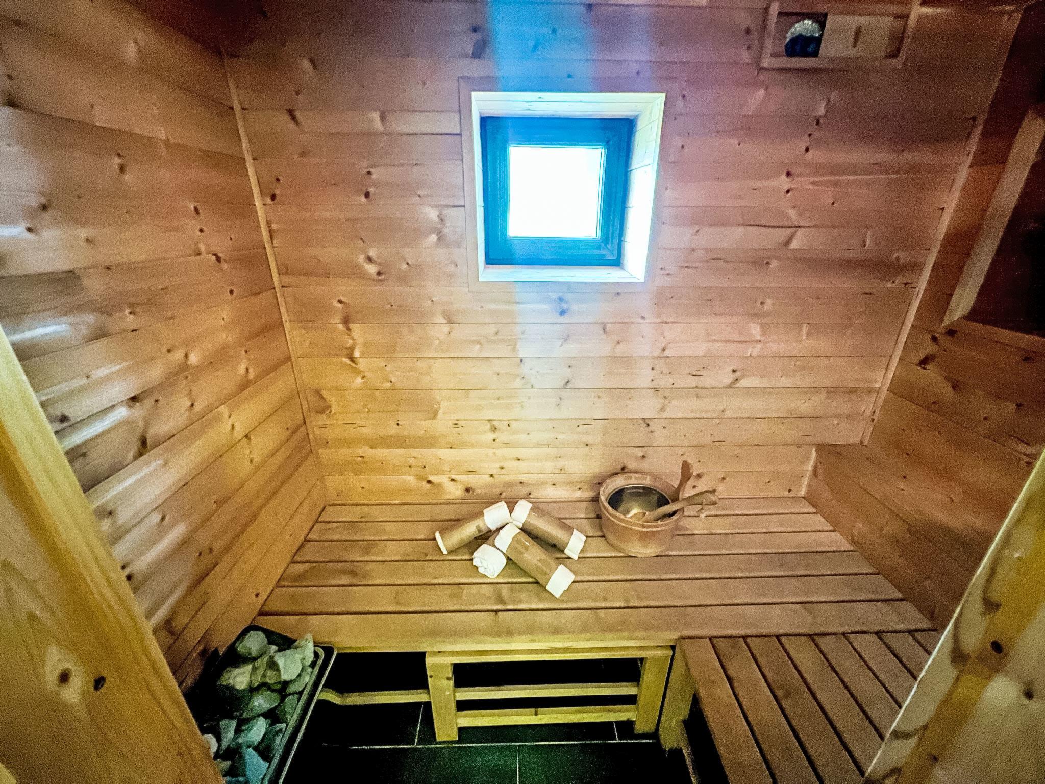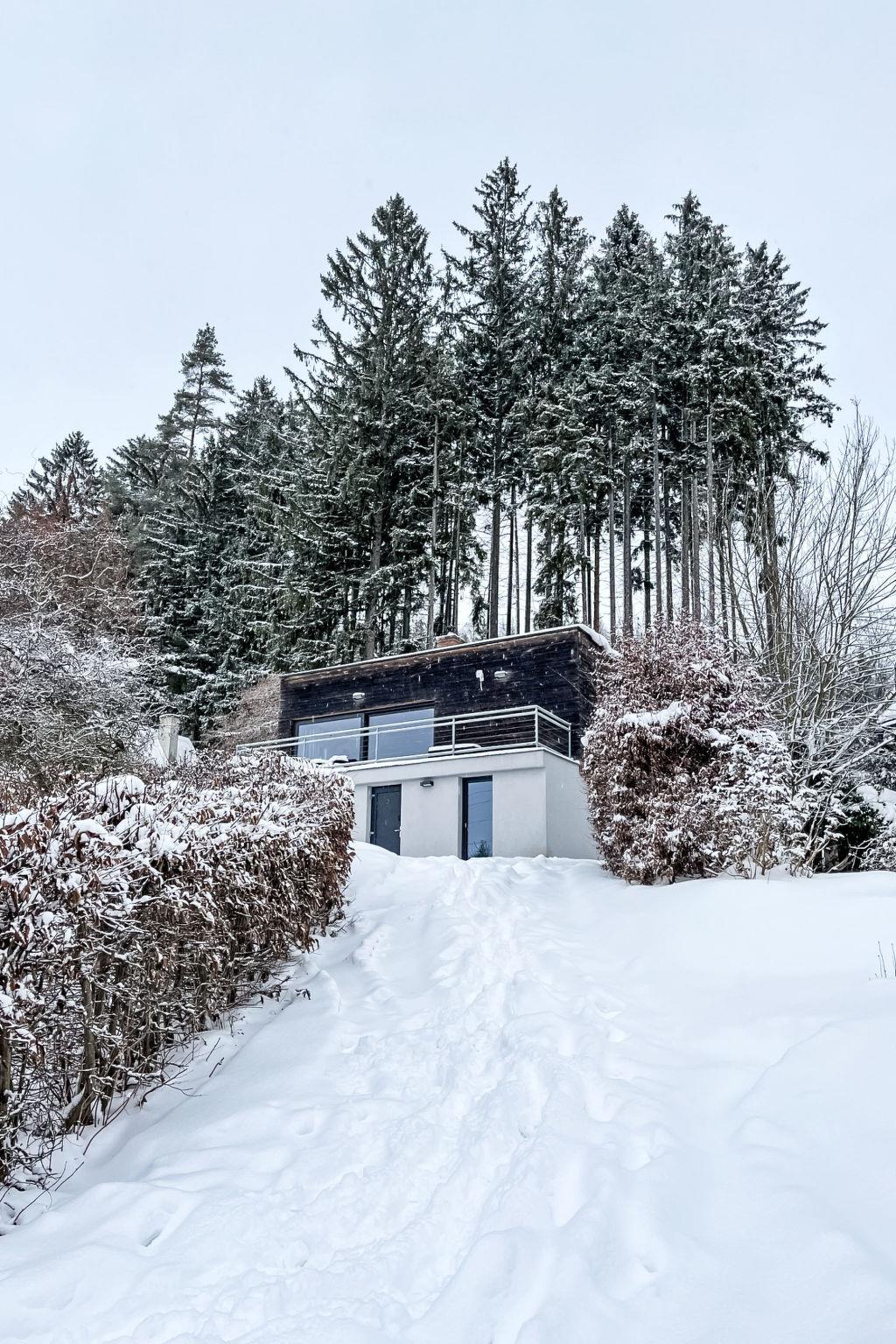 3-room chalet on 2 levels. 1 room with 1 double bed. Exit to the garden. 1 room with 1 x 2 bunk beds, 1 double bed. Exit to the garden. Shower/WC, sep. WC, Sauna. Upper floor: (steep stair) large living room with panoramic window with 1 double sofabed, Scandinavian wood stove and TV. Exit to the terrace. Kitchenette (oven, dishwasher, 4 induction hot plates, toaster, kettle, microwave, freezer, electric coffee machine) with dining table. Electric heating, wood heating. 2 terraces. Terrace furniture. Beautiful view of the countryside. Facilities: washing machine. Internet (WiFi, free). Please note: non-smoking house. Maximum 1 pet/ dog allowed.