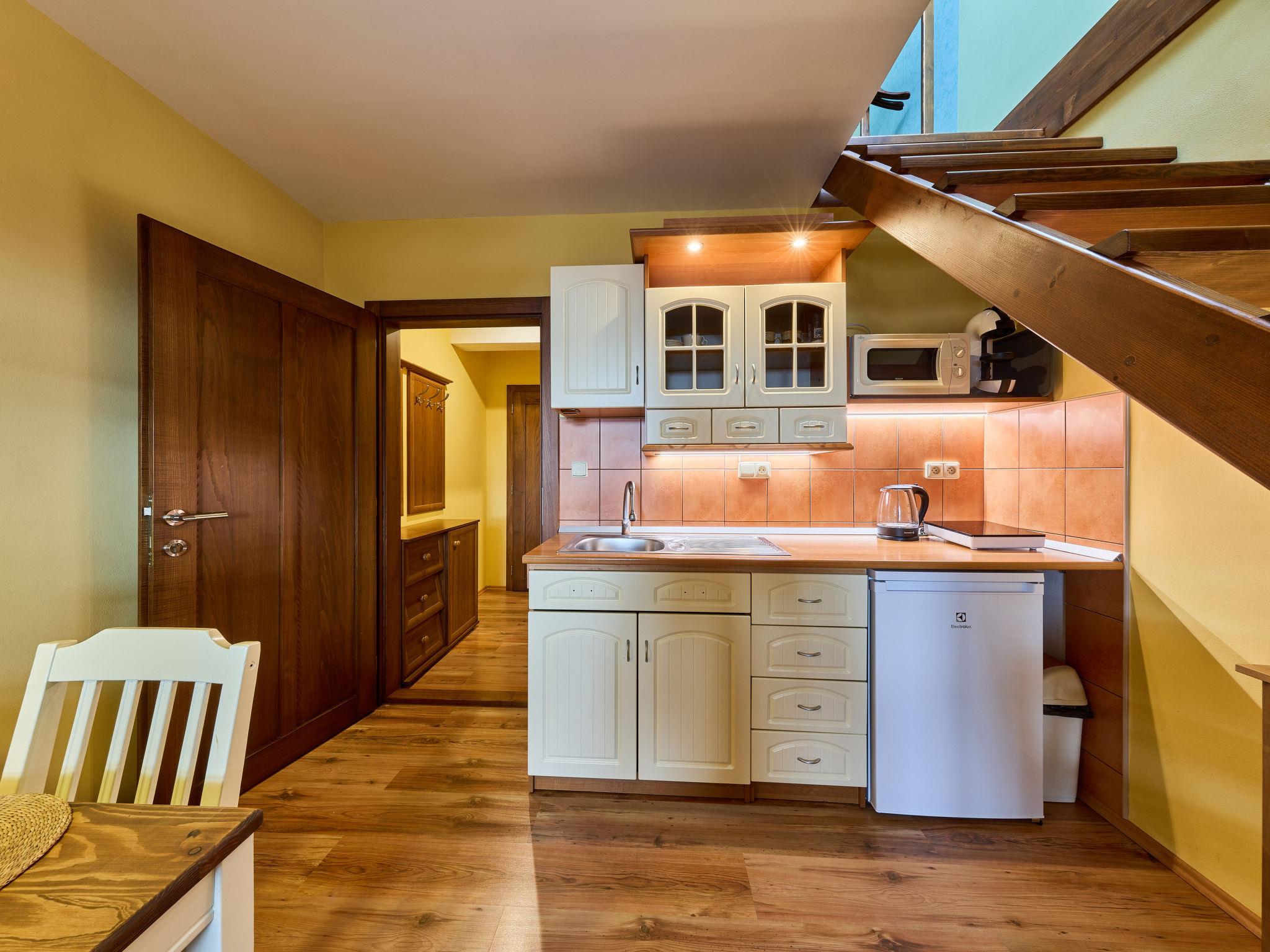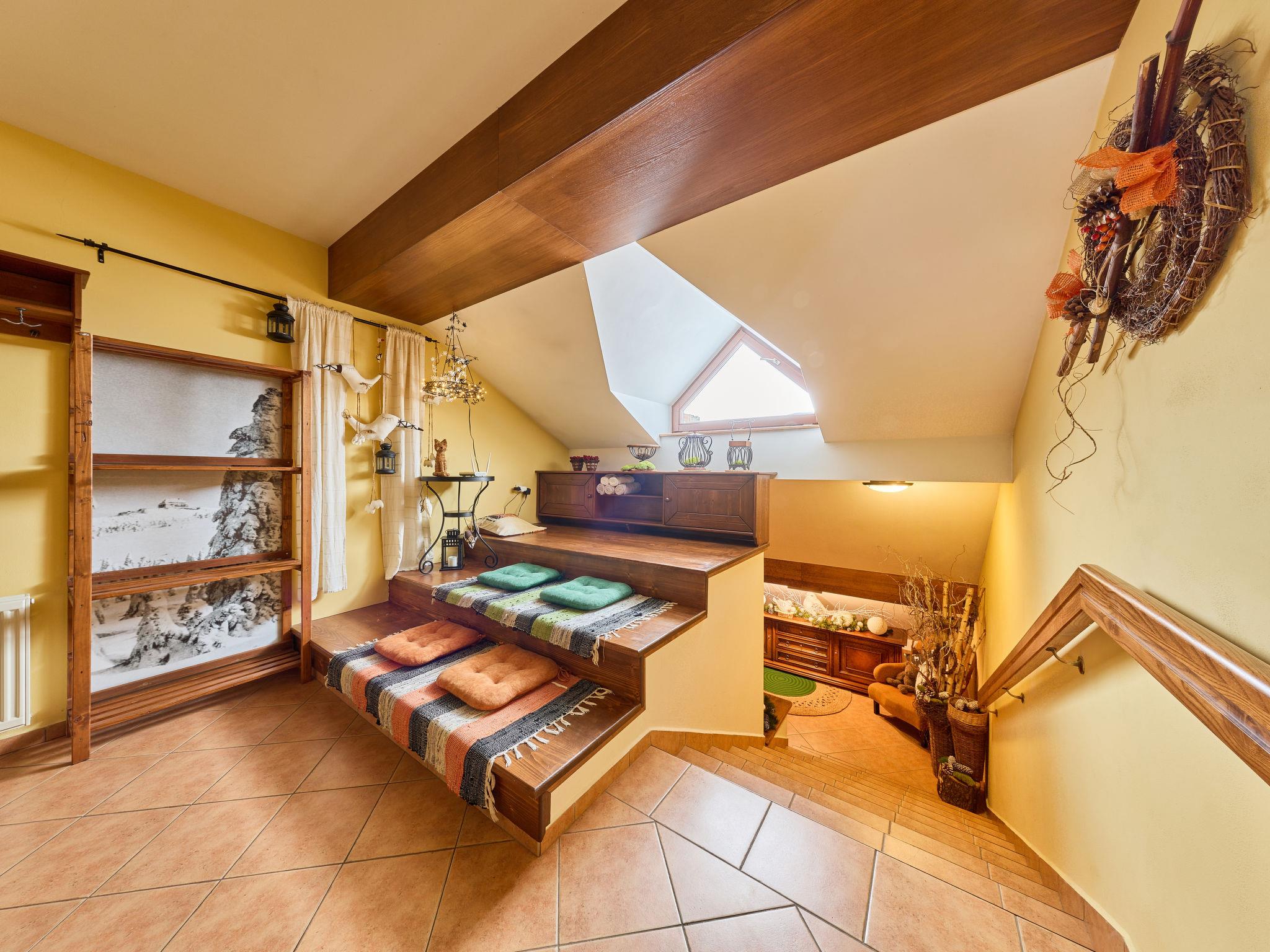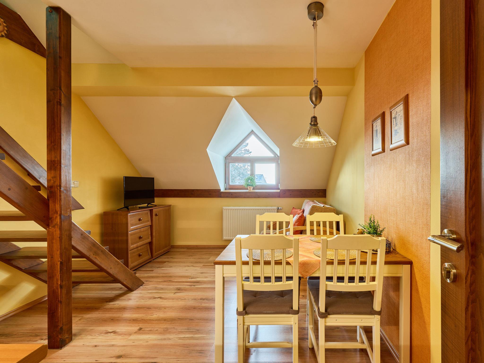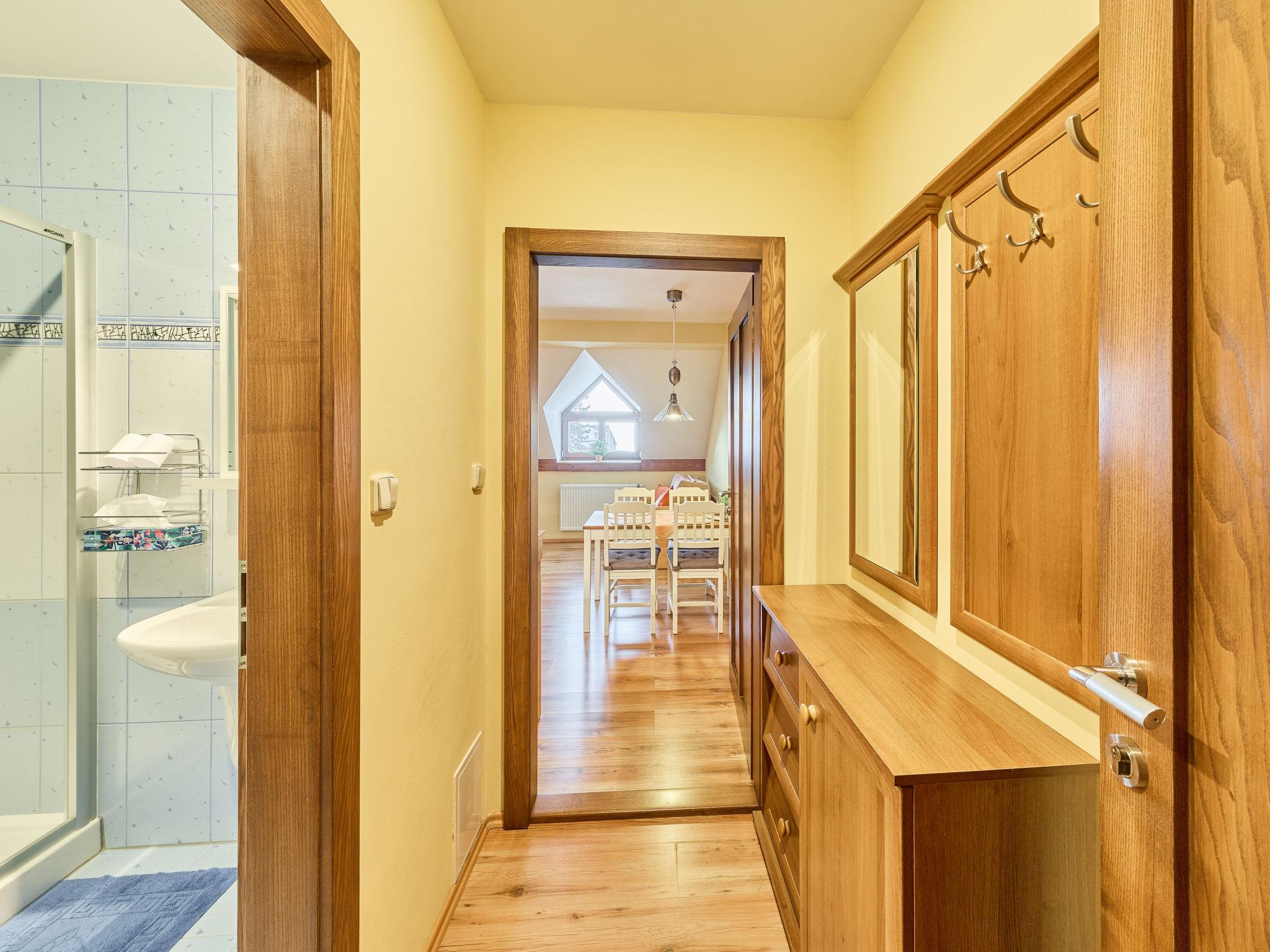 Very beautiful apartment house "Vysoké nad Jizerou". In the centre, in a quiet, sunny position, excellent location: right in the centre but still quiet, in the heart of the city, 1 km from the skiing area. In the house: central heating system. Parking (for 4 cars, extra), communal covered parking. Grocery, supermarket 100 m, bar 50 m, bakery, café 100 m, bus stop "Vysoké nad Jizerou, námestí" 50 m, park "Vysoké nad Jizerou" 200 m, outdoor swimming pool 3.5 km. Golf course (9 hole) 15 km, ski lift, ski rental 100 m, ski school 1 km, children's ski school 1 km, cross country ski track 50 m. Nearby attractions: Rozhledna U Borovice 3.5 km, Bozkovské jeskyne 10 km, Návarov 8 km, Štepánka 10 km. Hiking paths: Malá Skála 30 km, Rokytnice nad Jizerou 10 km. Please note: suitable for families. The owner does not accept any groups.