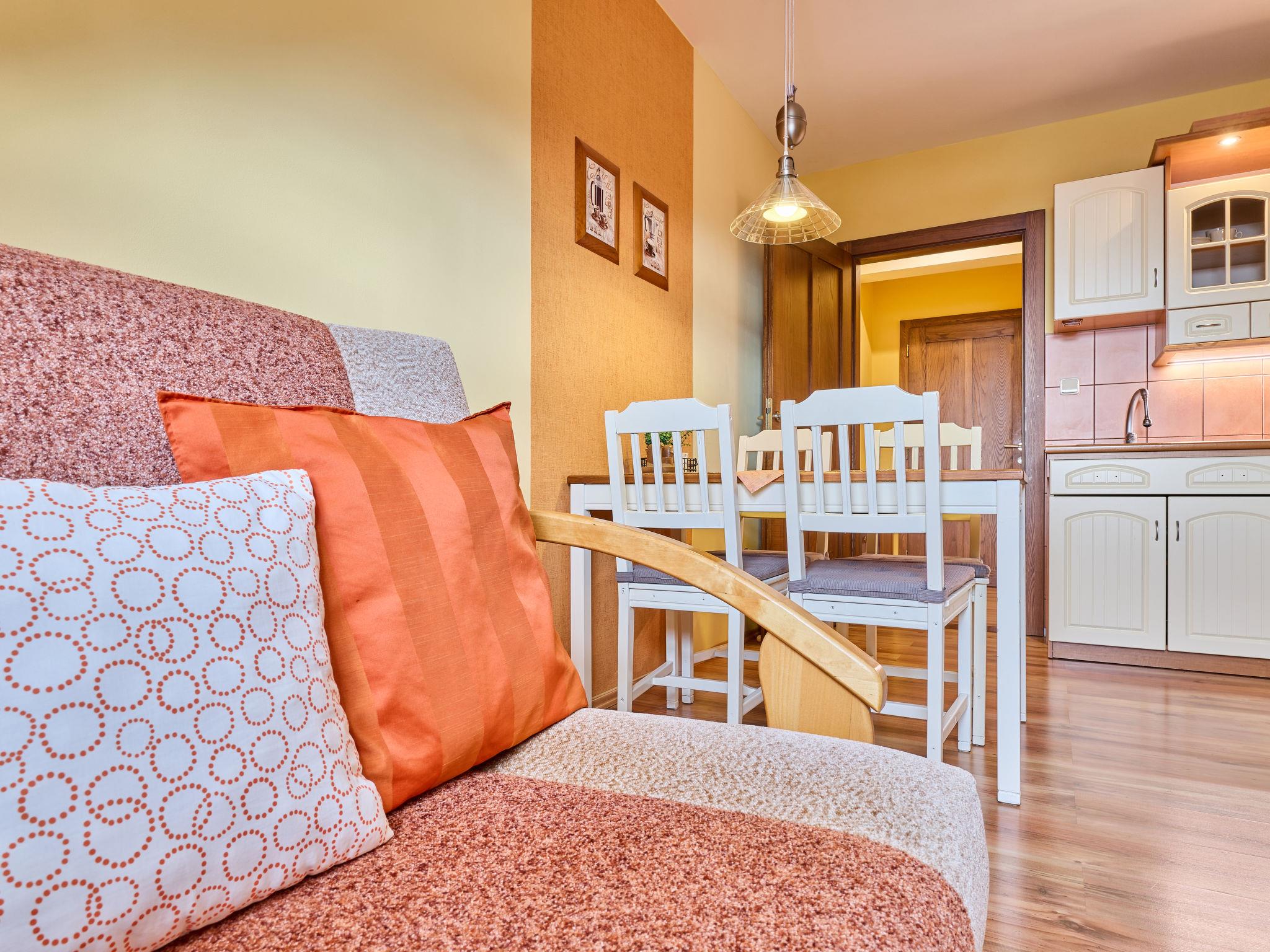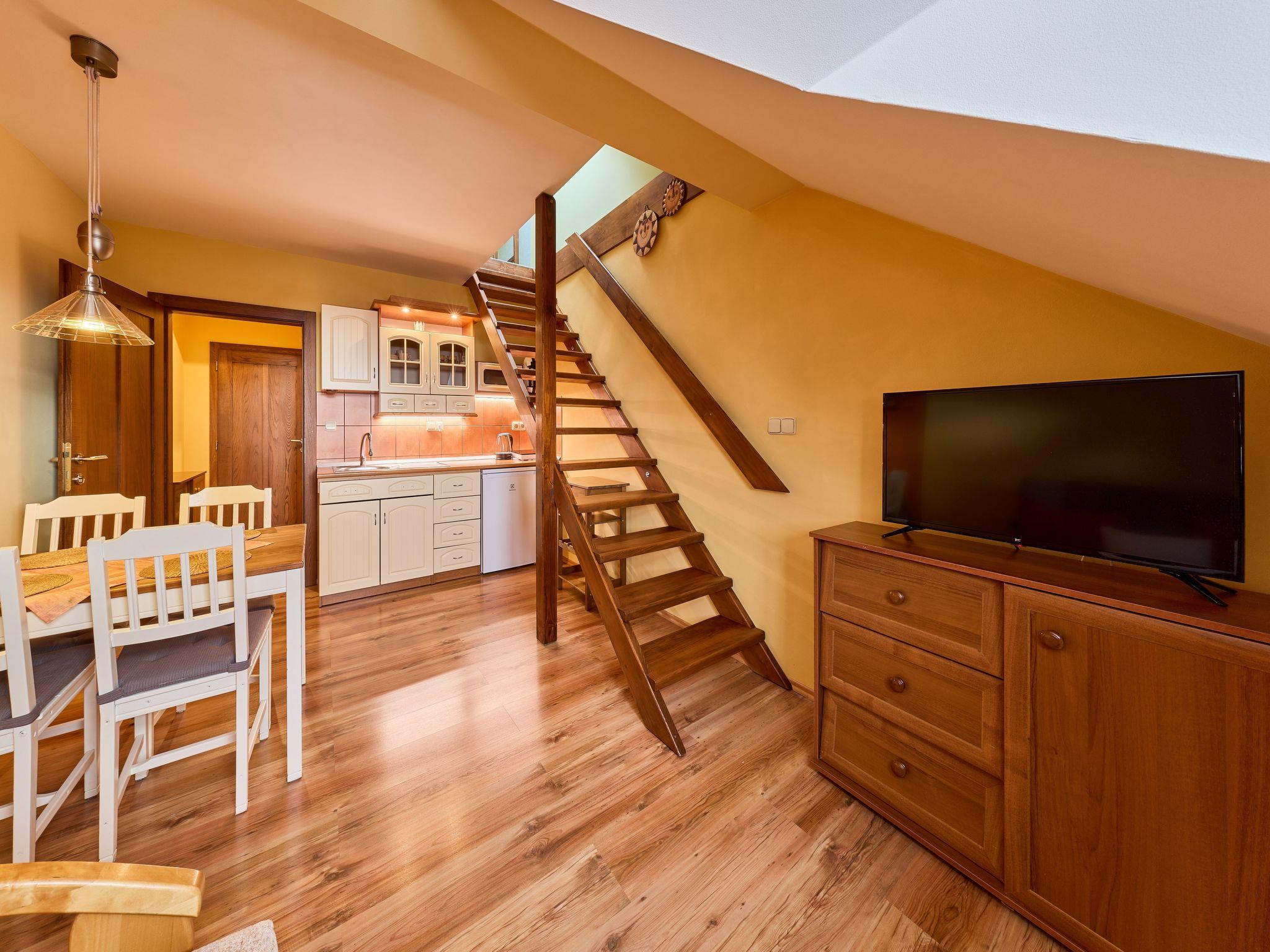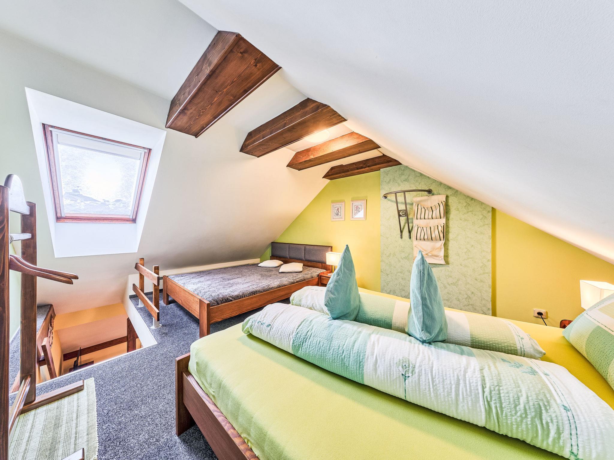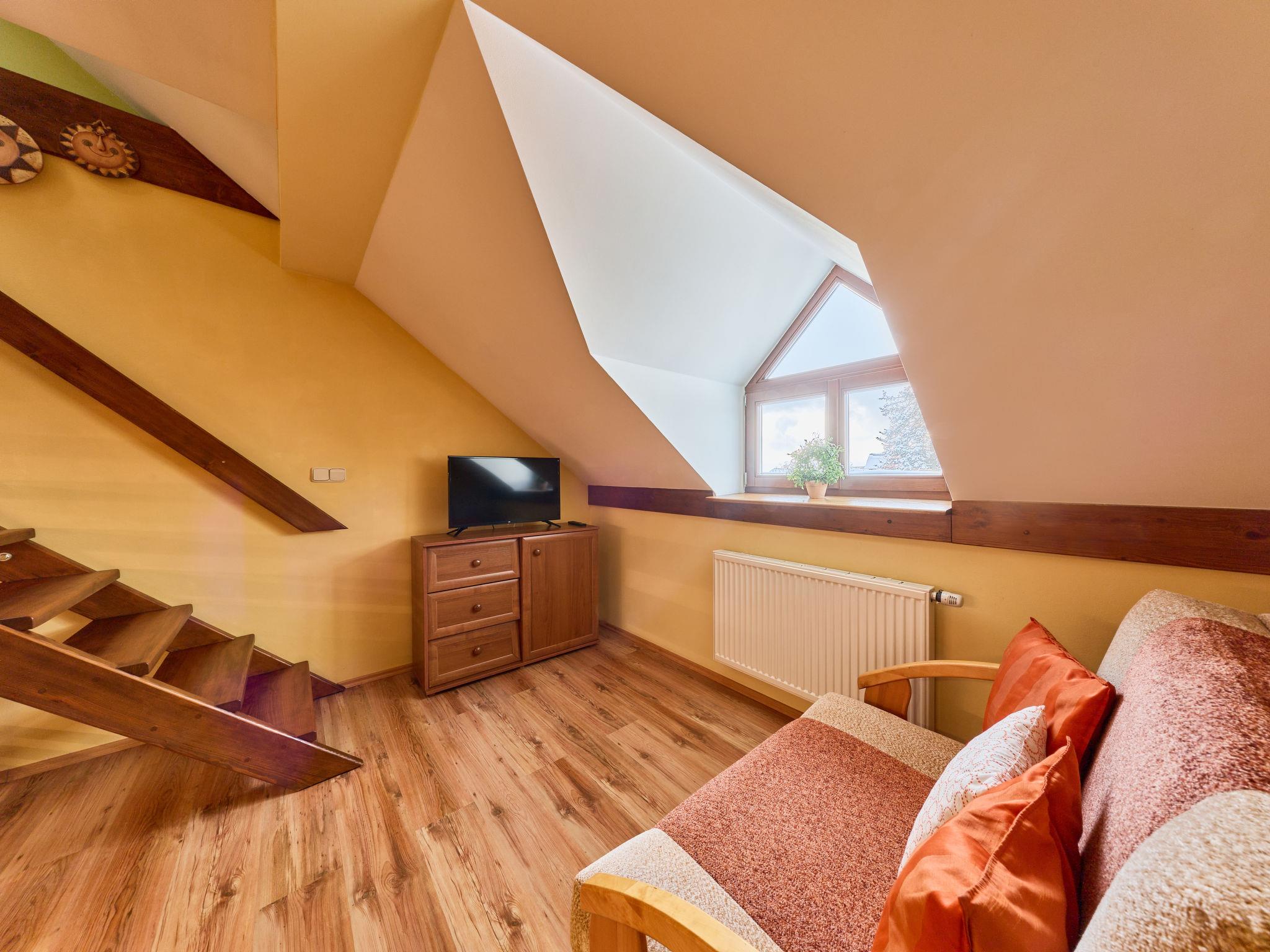 Very beautiful apartment house "Vysoké nad Jizerou". In the centre, in a quiet, sunny position, excellent location: right in the centre but still quiet, in the heart of the city, 1 km from the skiing area. In the house: central heating system. Parking (for 4 cars, extra), communal covered parking. Grocery, supermarket 100 m, bar 50 m, bakery, café 100 m, bus stop "Vysoké nad Jizerou, námestí" 50 m, park "Vysoké nad Jizerou" 200 m, outdoor swimming pool 3.5 km. Golf course (9 hole) 15 km, ski lift, ski rental 100 m, ski school 1 km, children's ski school 1 km, cross country ski track 50 m. Nearby attractions: Rozhledna U Borovice 3.5 km, Bozkovské jeskyne 10 km, Návarov 8 km, Štepánka 10 km. Hiking paths: Malá Skála 30 km, Rokytnice nad Jizerou 10 km. Please note: suitable for families. The owner does not accept any groups.
