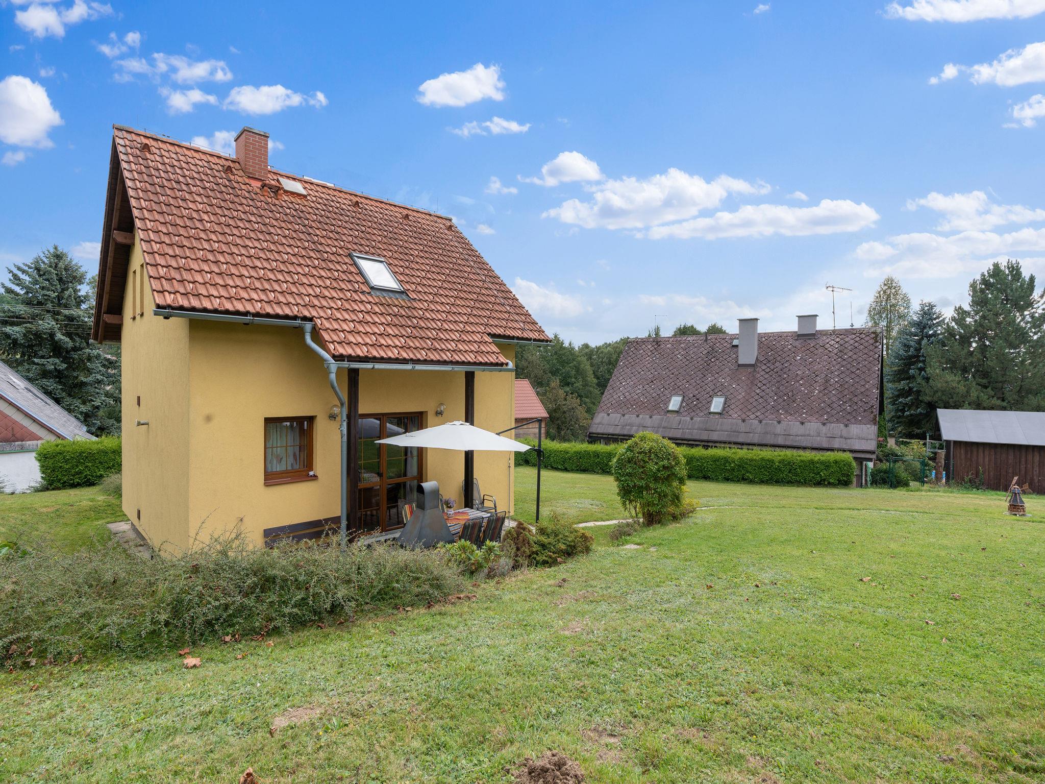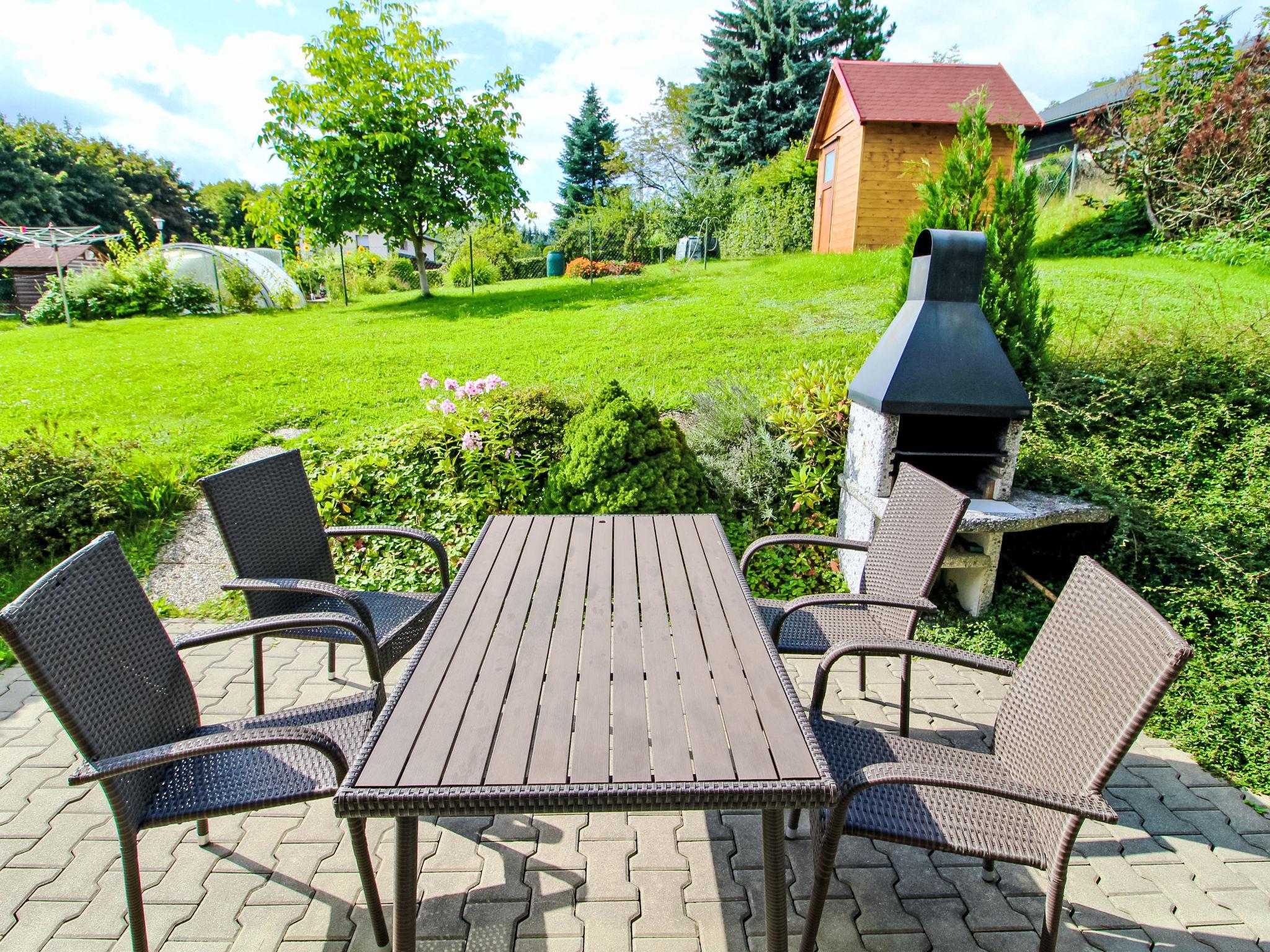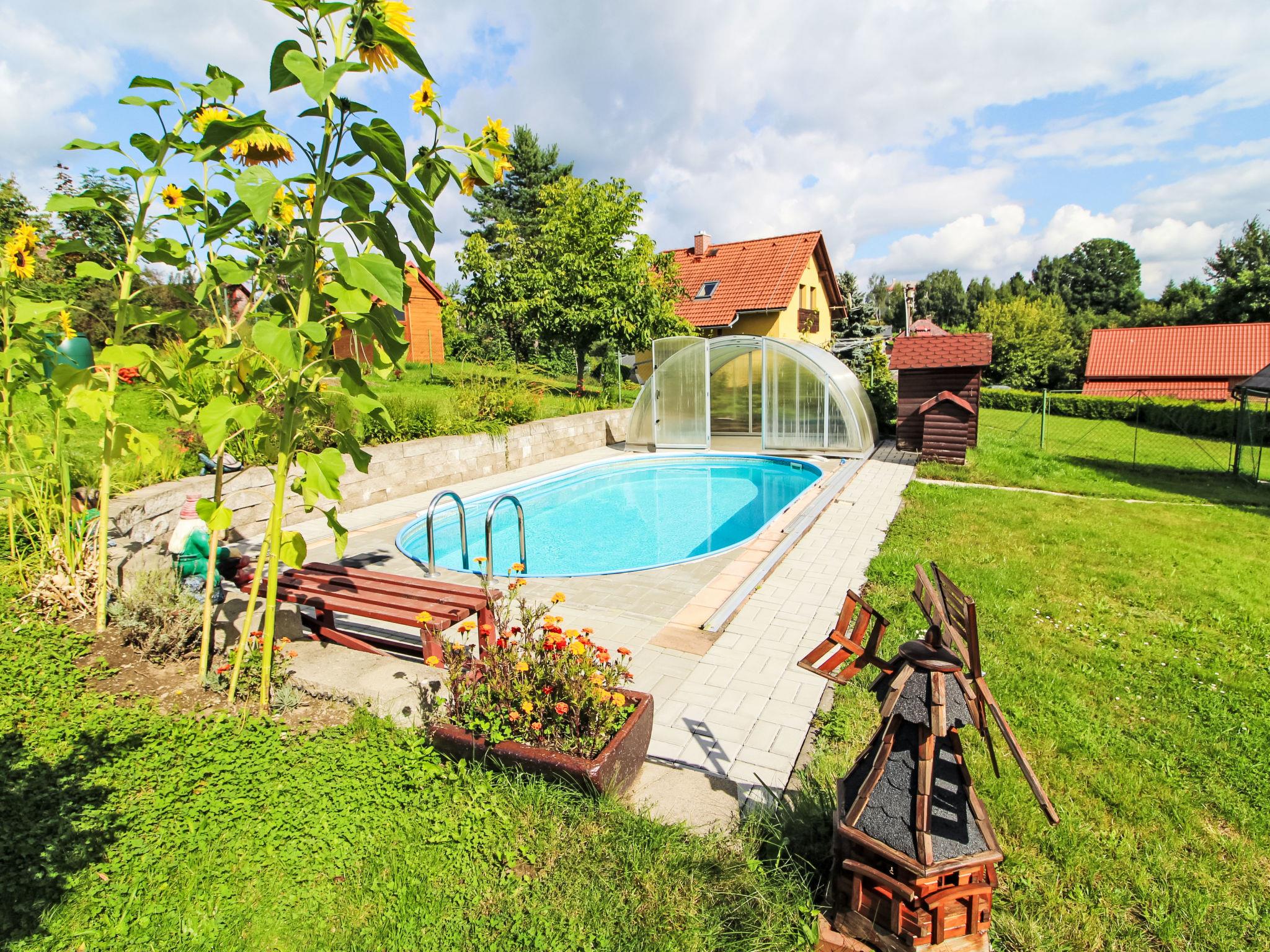 House "Zásada", 2 storeys, detached, built in 2008. On the outskirts, in a quiet, sunny position, 500 m from the skiing area. For shared use: swimming pool heated (6 x 3 m, depth 140 cm, seasonal availability: 01.May. - 30.Sep.). Private: property 900 m2, meadow. Badminton, terrace, garden furniture, barbecue. In the house: WiFi, storage room for bicycles, storage room for skis, washing machine. Motor access to the house. Parking (for 2 cars) at the house. Grocery, restaurant 100 m, bus stop 200 m. Slopes 500 m, ski school 500 m, cross country ski track 10 m, children's playground 300 m. Nearby attractions: Cyklostezka Járy Cimrmana, pivovar 200 m, rozhledna Špicák 12 km, Jizerka 20 km, Aquapark Babylon Liberec 23 km, Ješted 34 km. Well-known ski regions can easily be reached: Tanvaldský Špicák 12 km, Harrachov 25 km, Rokytknice - Lysá Hora 25 km. Hiking paths: Cerná Studnice (869 m) 6 km, Ceský ráj - Hrubá Skála 25 km, hrad Valdštejn 27 km. Please note: the pool is located behind the fence on the owner´s property, who uses the pool minimally and only in the absence of guests.