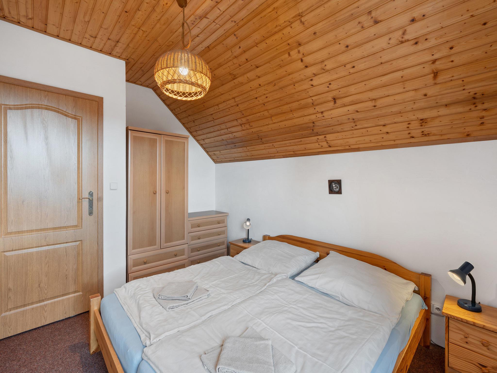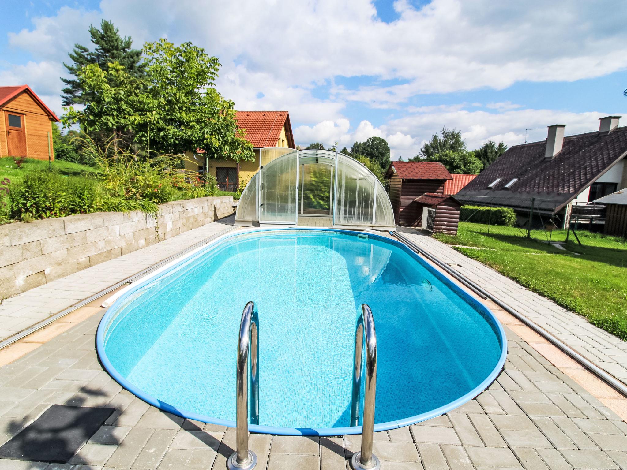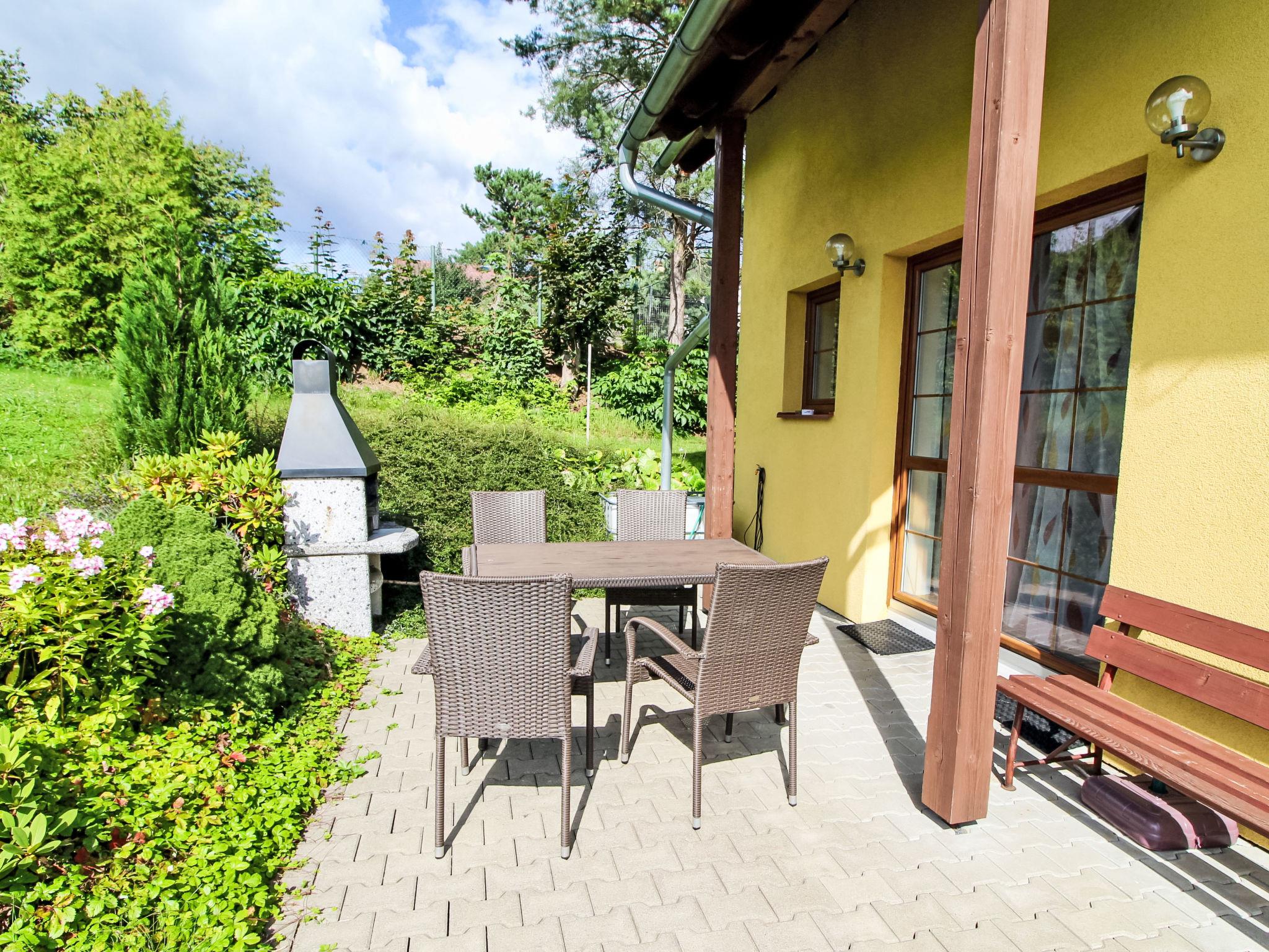 House "Zásada", 2 storeys, detached, built in 2008. On the outskirts, in a quiet, sunny position, 500 m from the skiing area. For shared use: swimming pool heated (6 x 3 m, depth 140 cm, seasonal availability: 01.May. - 30.Sep.). Private: property 900 m2, meadow. Badminton, terrace, garden furniture, barbecue. In the house: WiFi, storage room for bicycles, storage room for skis, washing machine. Motor access to the house. Parking (for 2 cars) at the house. Grocery, restaurant 100 m, bus stop 200 m. Slopes 500 m, ski school 500 m, cross country ski track 10 m, children's playground 300 m. Nearby attractions: Cyklostezka Járy Cimrmana, pivovar 200 m, rozhledna Špicák 12 km, Jizerka 20 km, Aquapark Babylon Liberec 23 km, Ješted 34 km. Well-known ski regions can easily be reached: Tanvaldský Špicák 12 km, Harrachov 25 km, Rokytknice - Lysá Hora 25 km. Hiking paths: Cerná Studnice (869 m) 6 km, Ceský ráj - Hrubá Skála 25 km, hrad Valdštejn 27 km. Please note: the pool is located behind the fence on the owner´s property, who uses the pool minimally and only in the absence of guests.