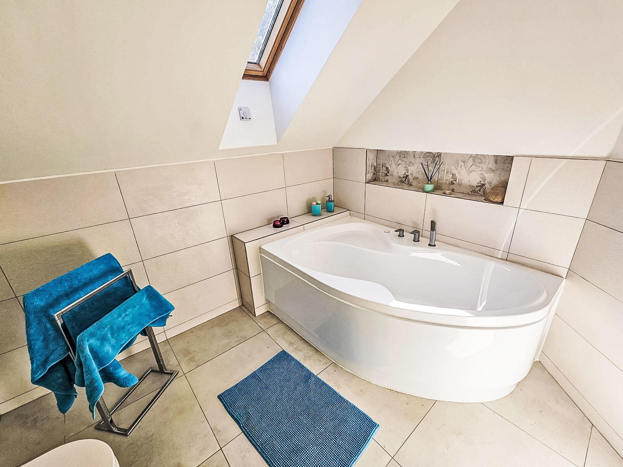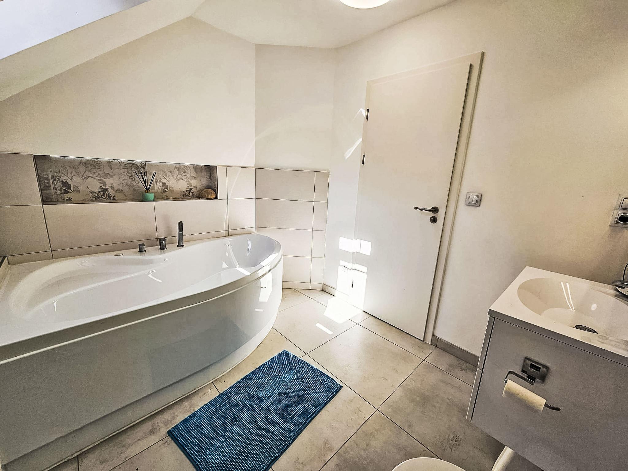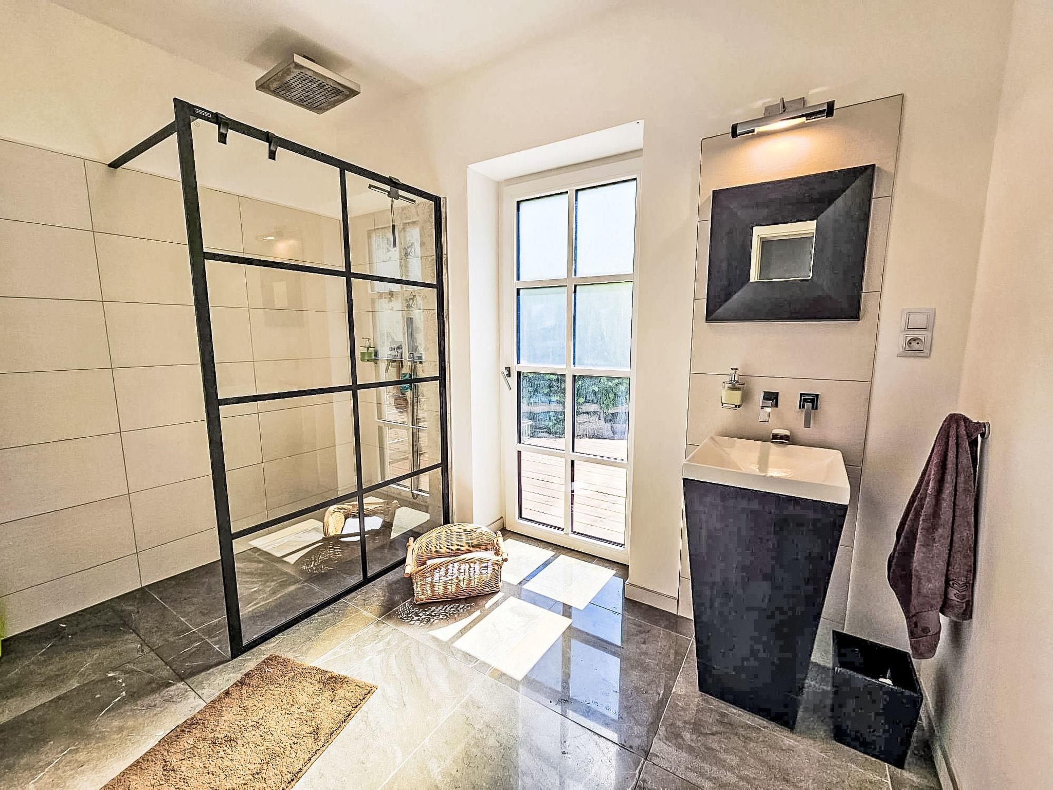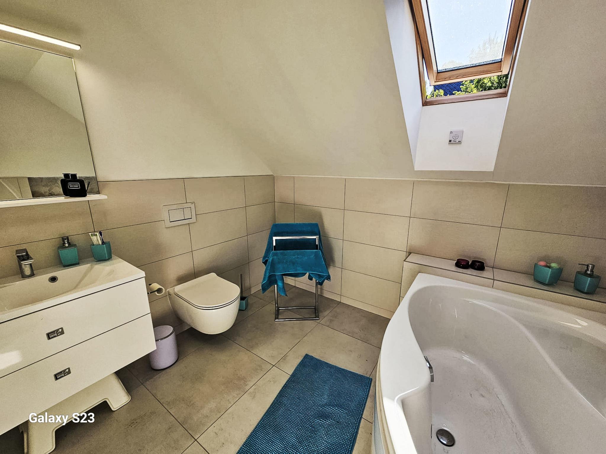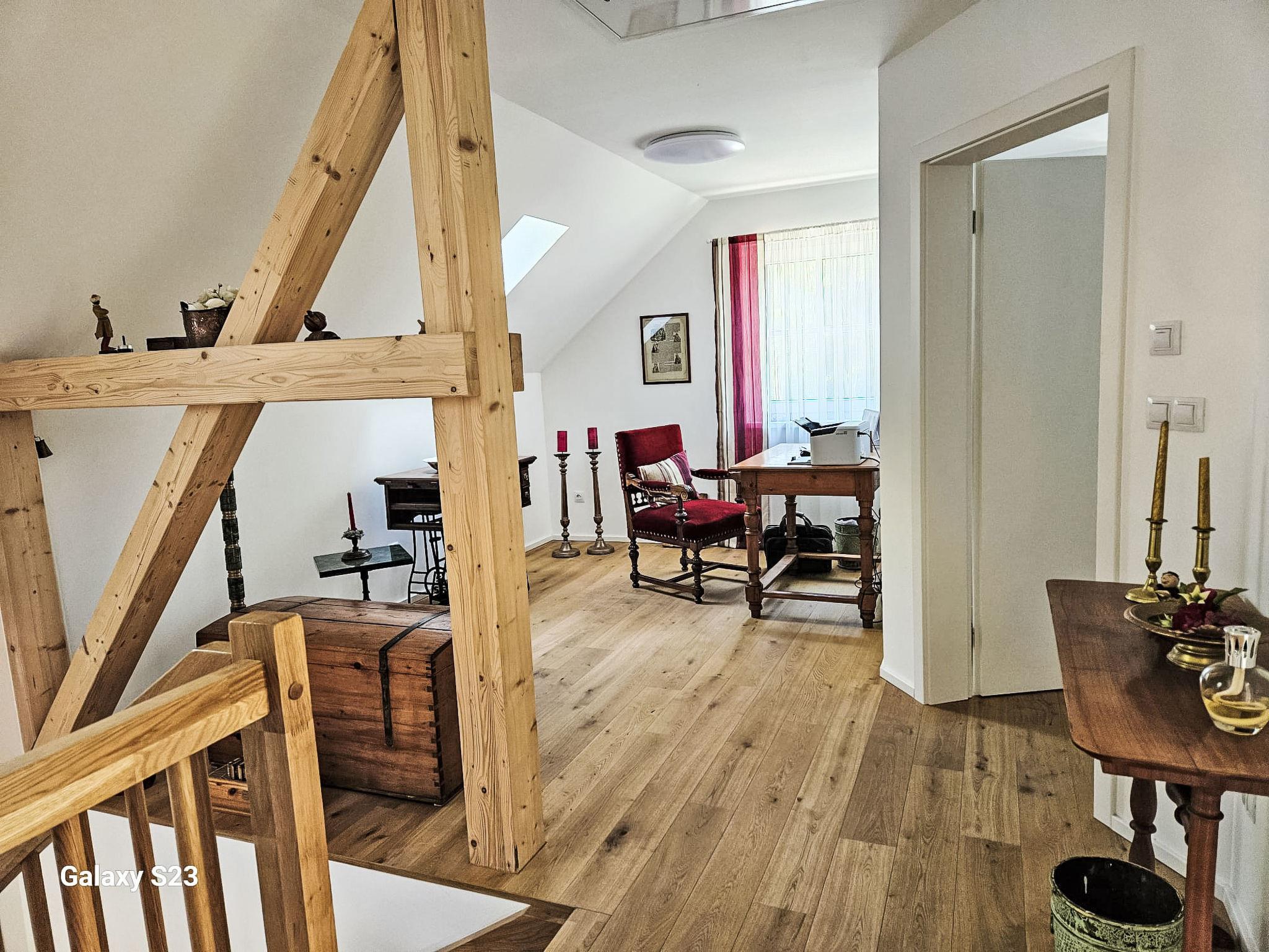 "Casa Lenka", 4-room house 120 m2 on 2 levels. Spacious and bright, tasteful and cosy furnishings: living/dining room with Scandinavian wood stove and satellite TV. Exit to the terrace. Kitchenette (oven, 4 ceramic glass hob hotplates, kettle, electric coffee machine). Bathroom, sep. WC. Underfloor heating. Upper floor: 2 rooms, each room with 2 double beds. Office with bath/WC. Floor heating. Side view of the garden. Facilities: baby cot. Internet (WiFi, free). E-charging station. Please note: suitable for families. Maximum 1 pet/ dog allowed. Smoke alarm, fire extinguisher. Bookings accepted for holiday purposes only.