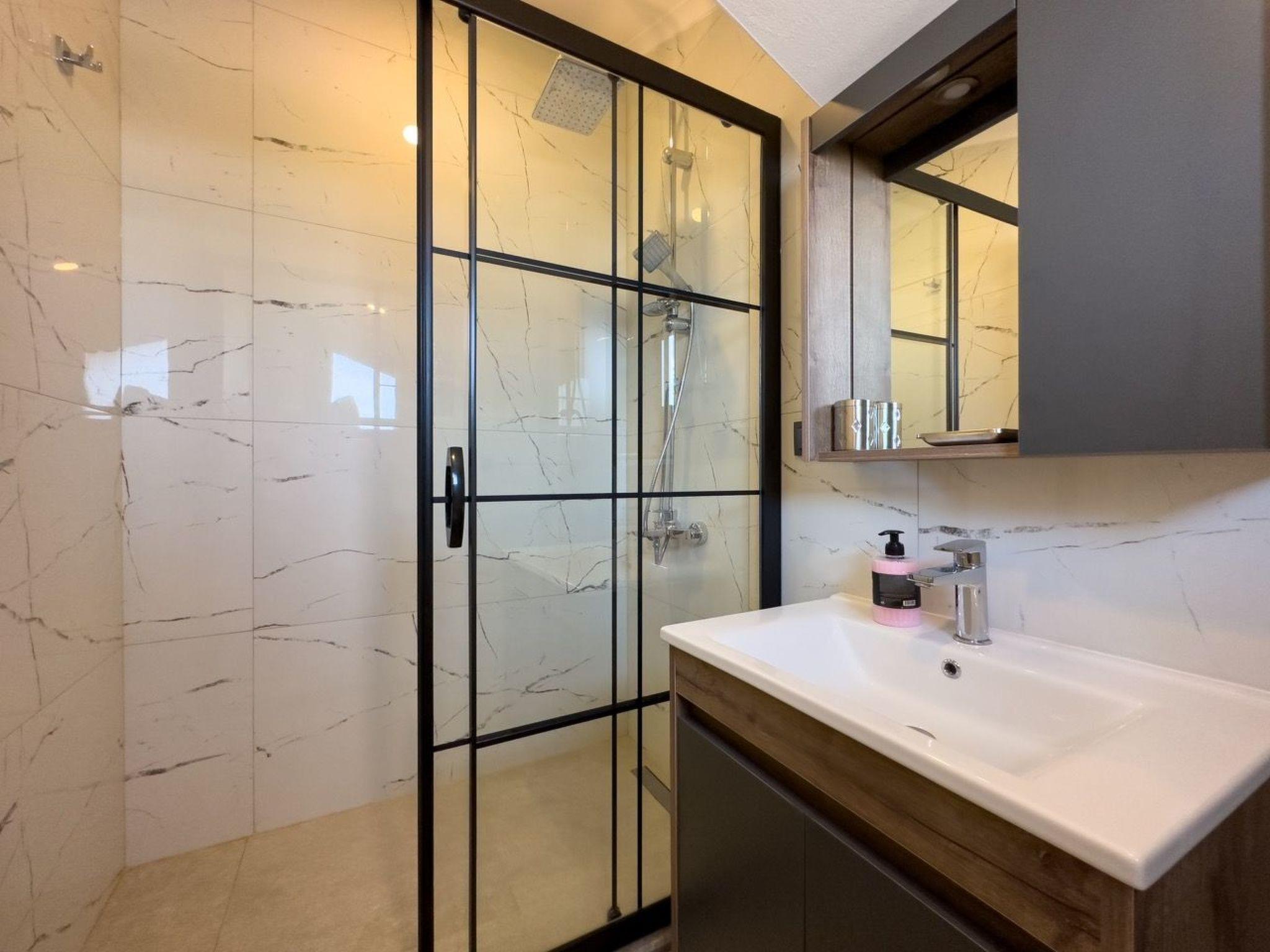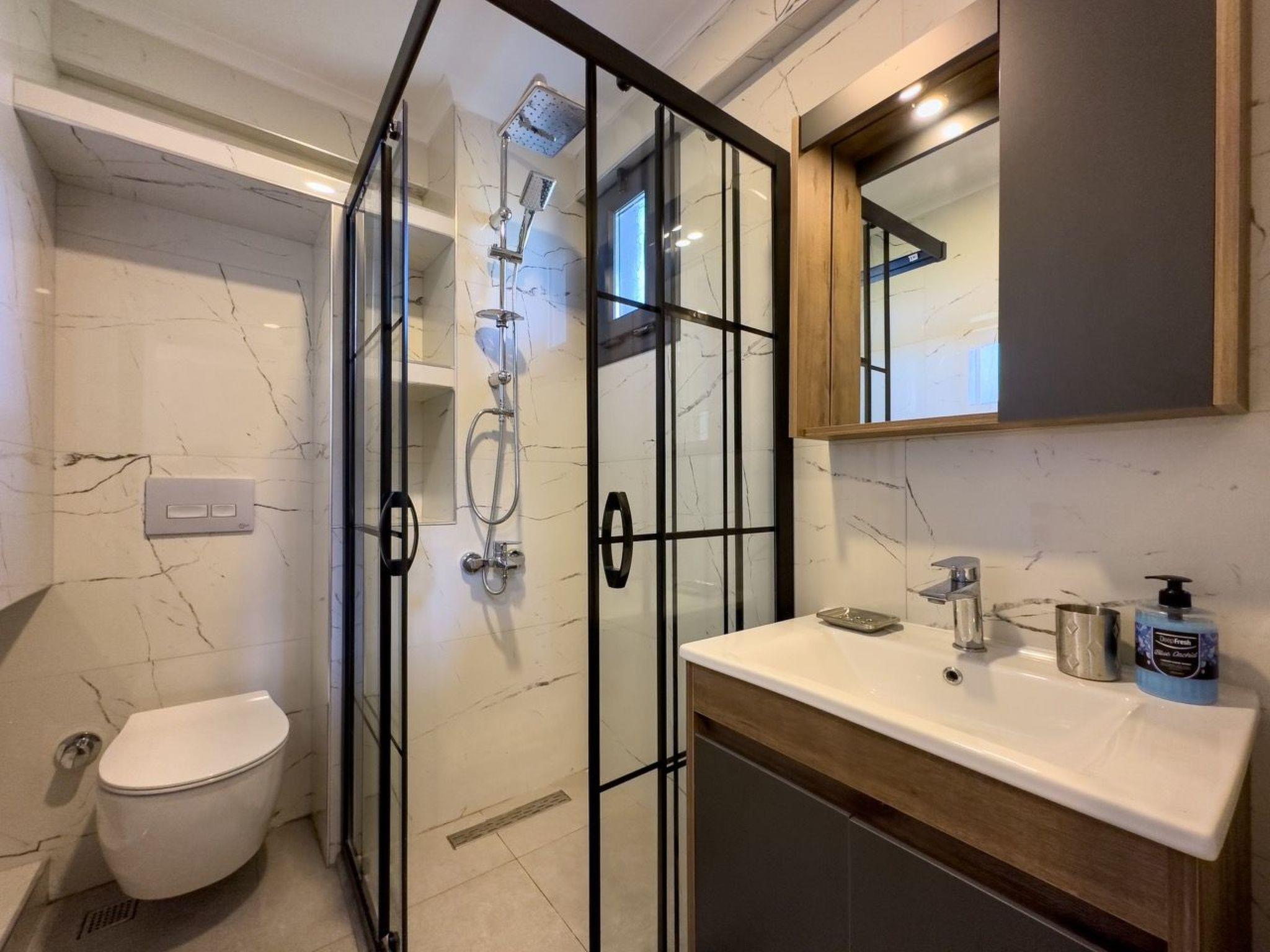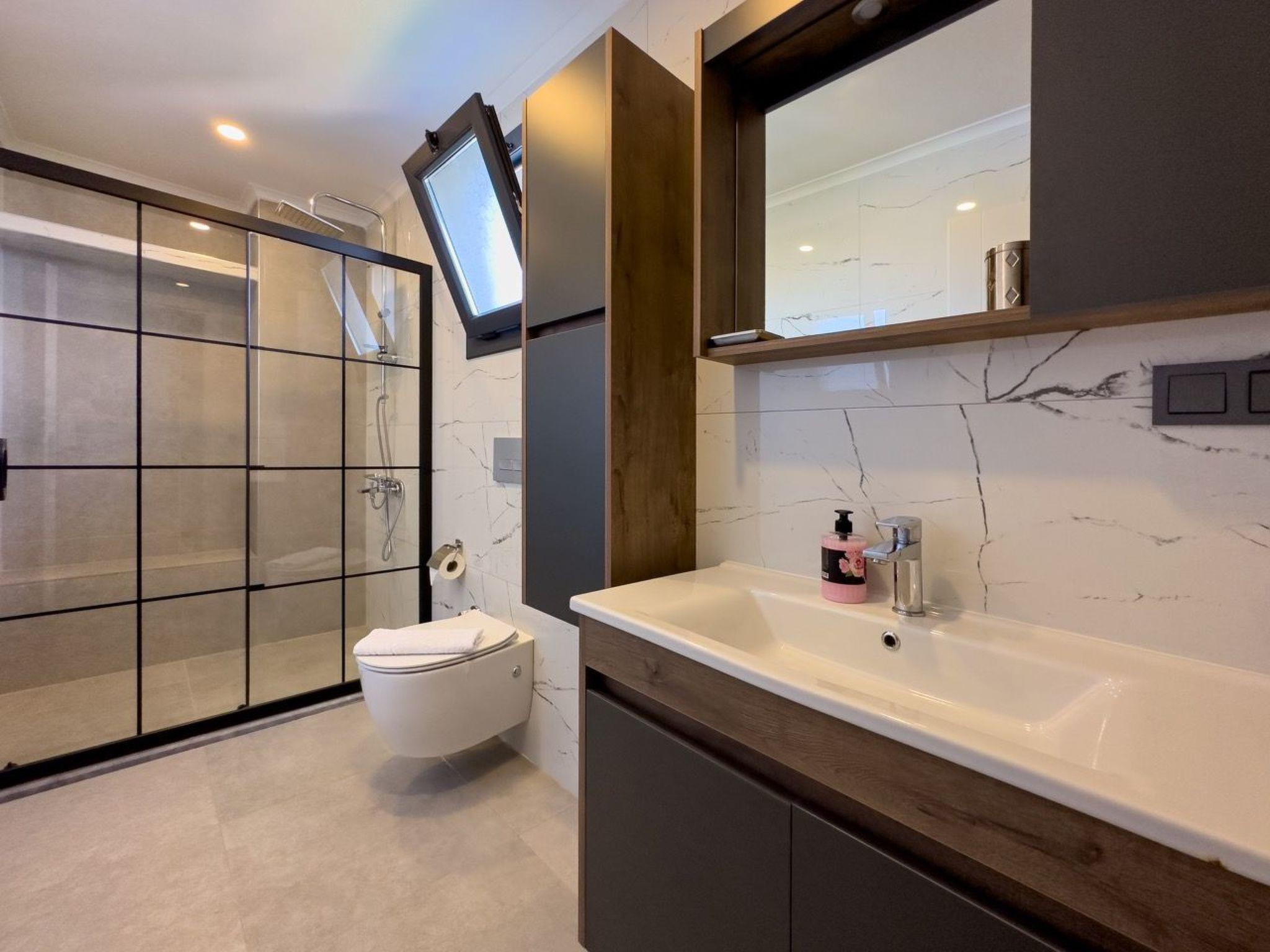 The surroundings of Yaniklar offer numerous opportunities for excursions and adventures. Just 5 kilometres from the villa you will find enchanting beaches and the refreshing sea, ideal for water sports or relaxing days on the sand. For daily needs, a grocery store is only 500 metres away, making shopping easy and convenient. The impressive mountains surrounding the villa are ideal for hiking and exploring.