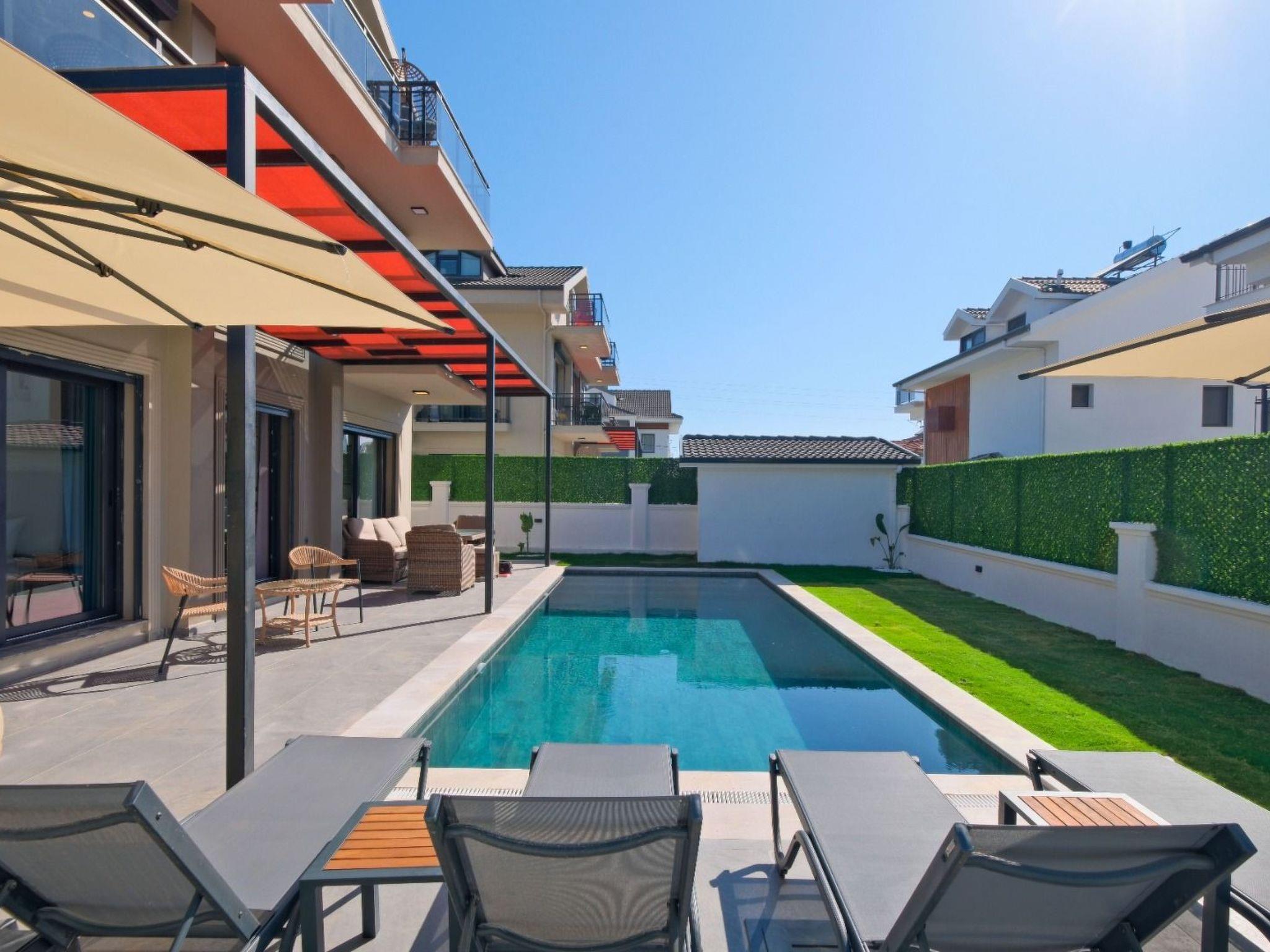 The outdoor area is equally impressive, with a large pool for exclusive use. The sun terrace around the pool invites you to sunbathe, and the well-tended gardens offer plenty of space to relax and enjoy the peaceful surroundings.