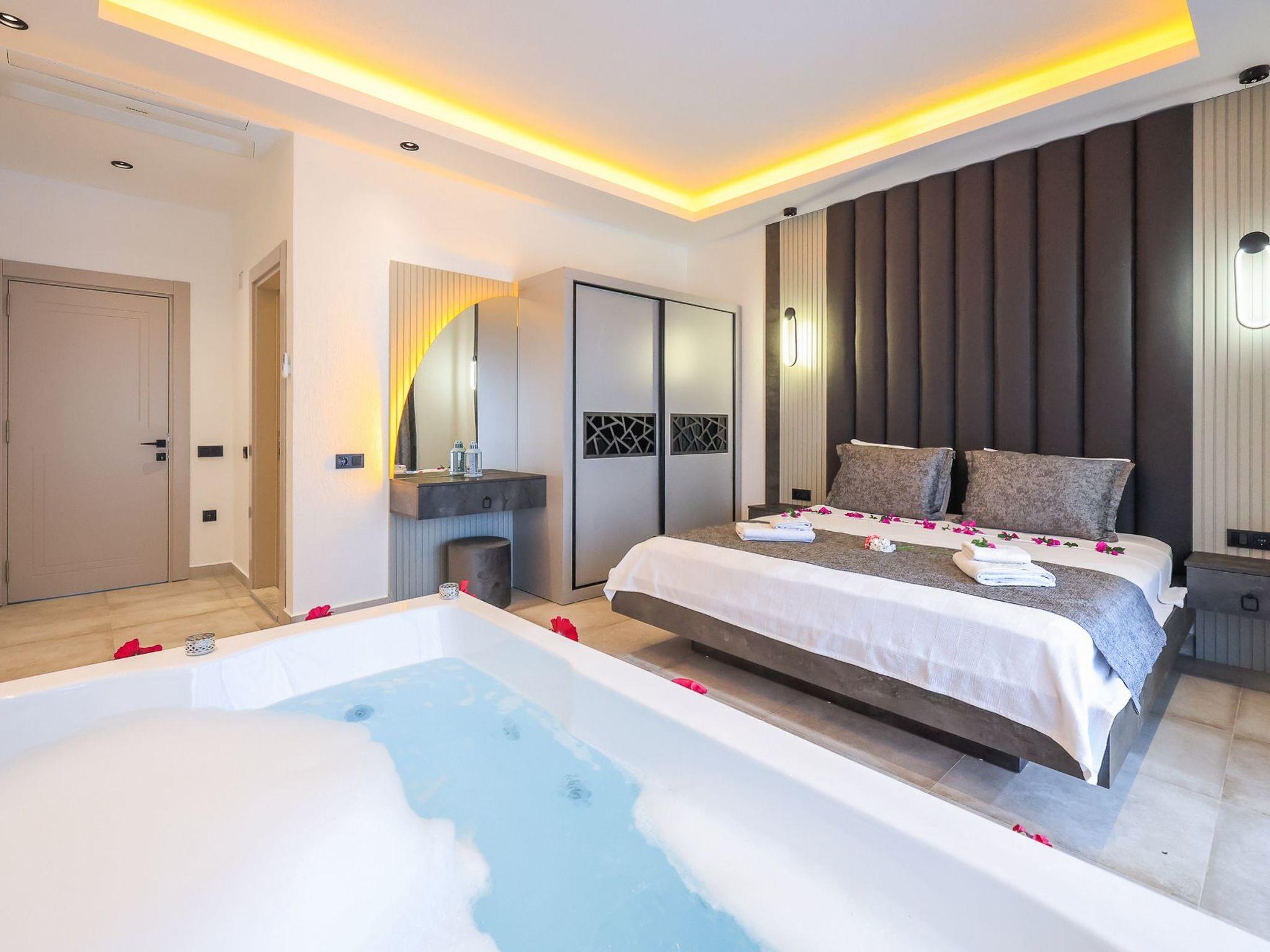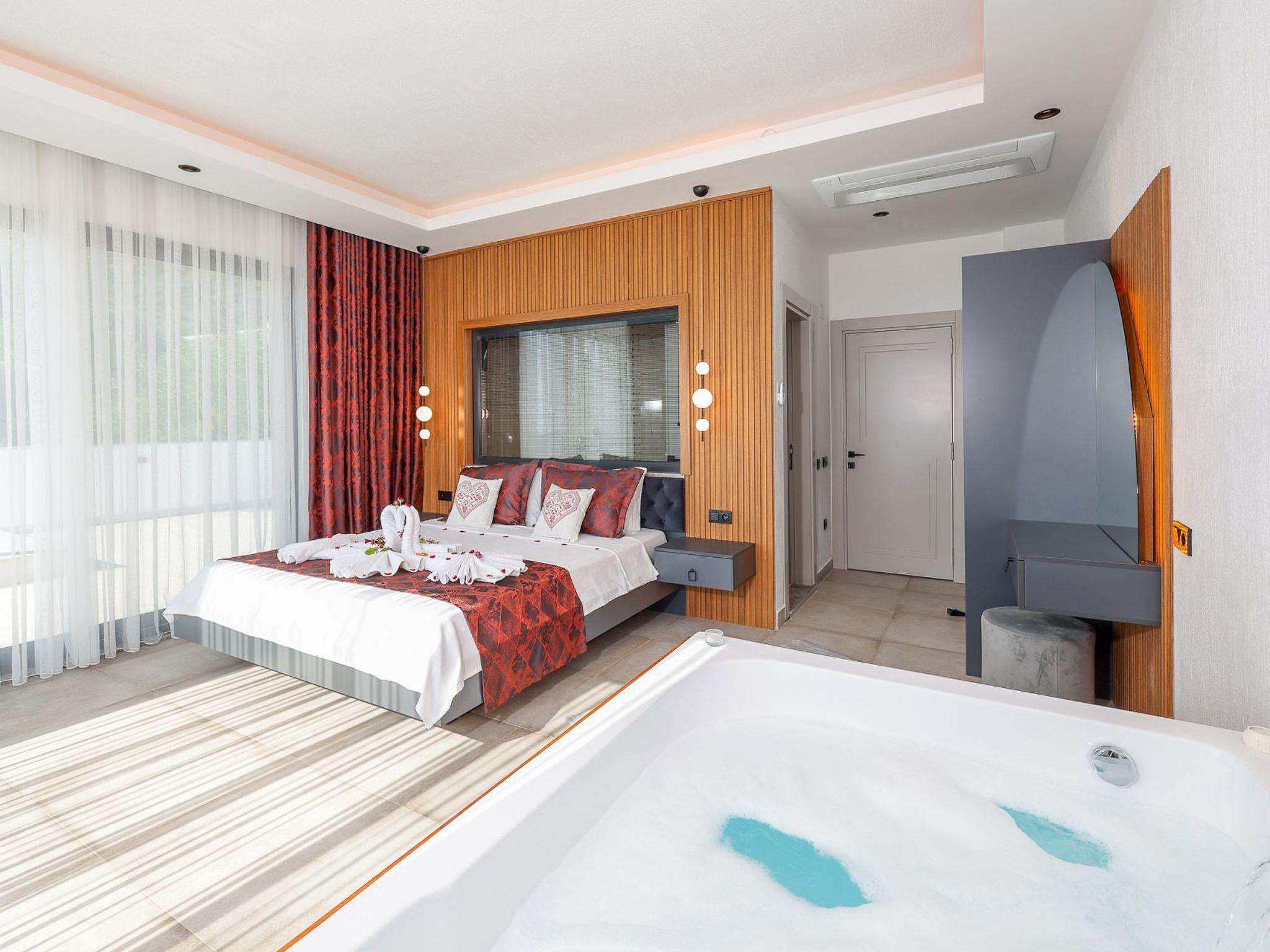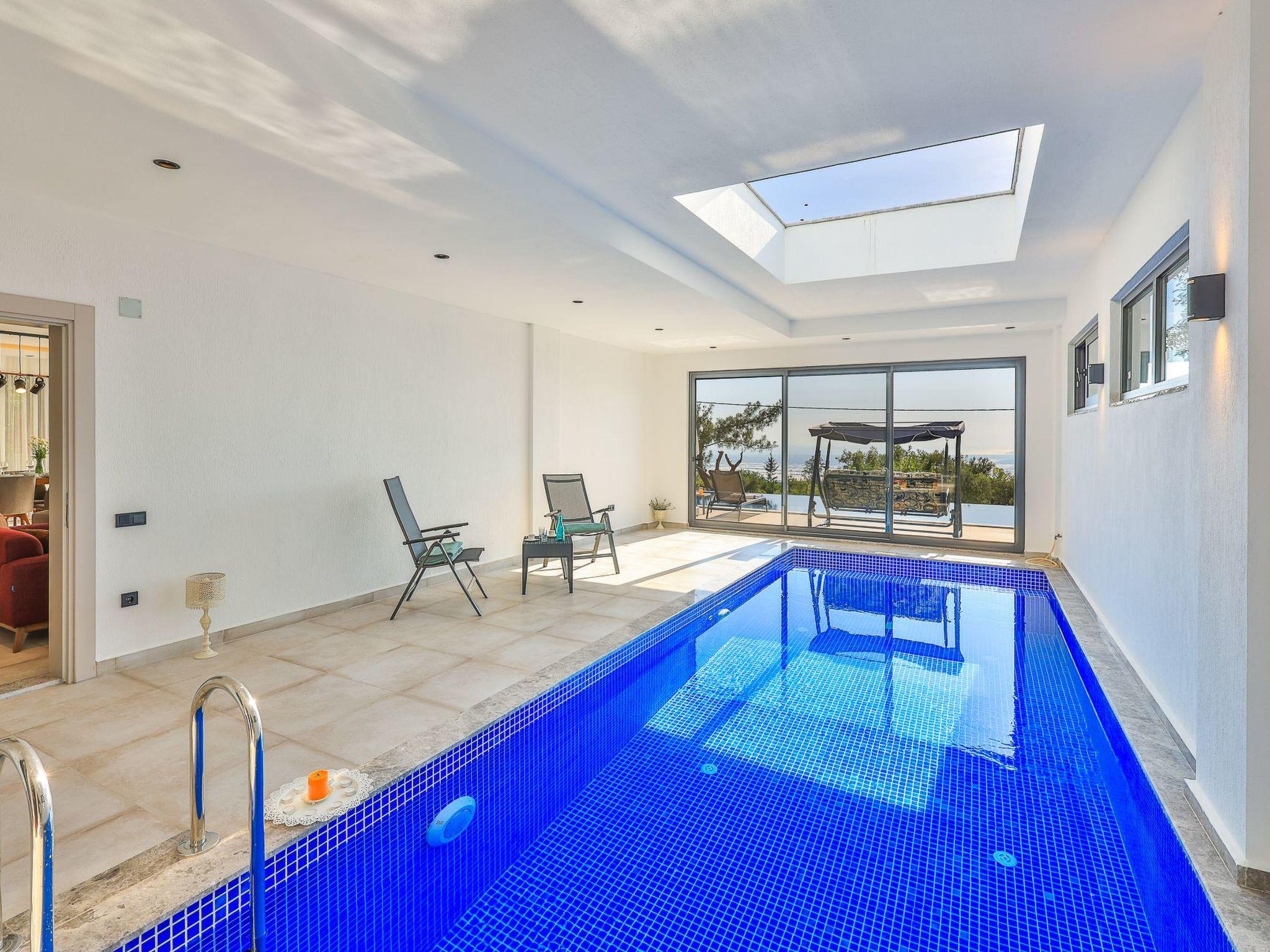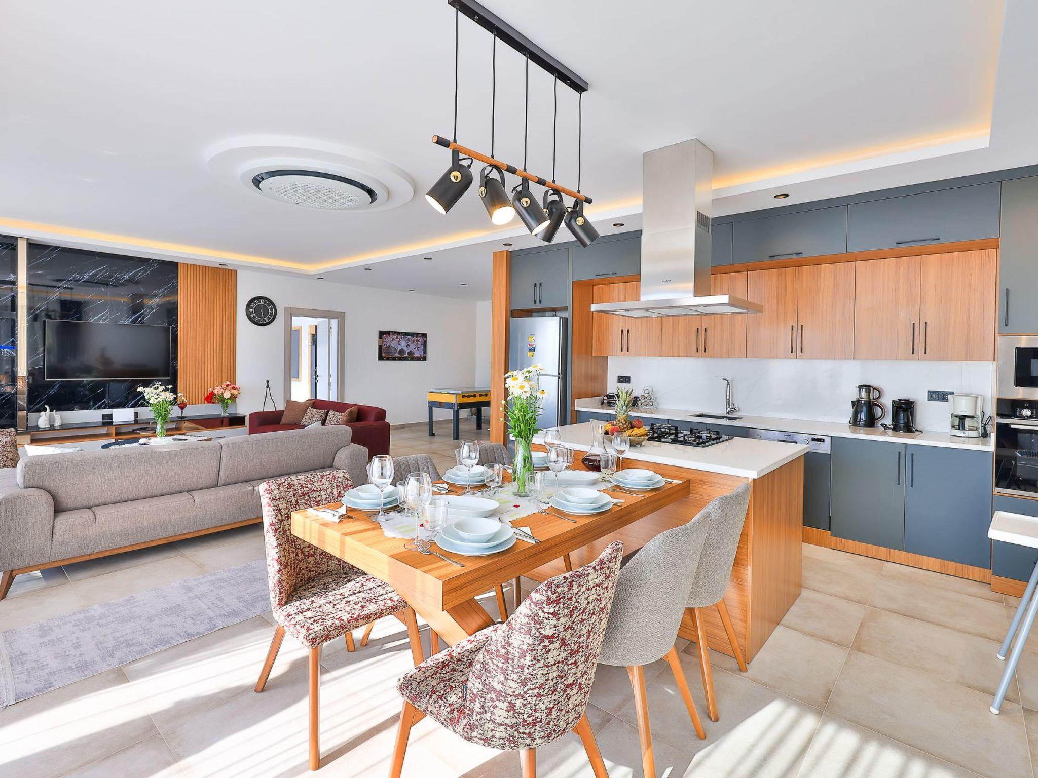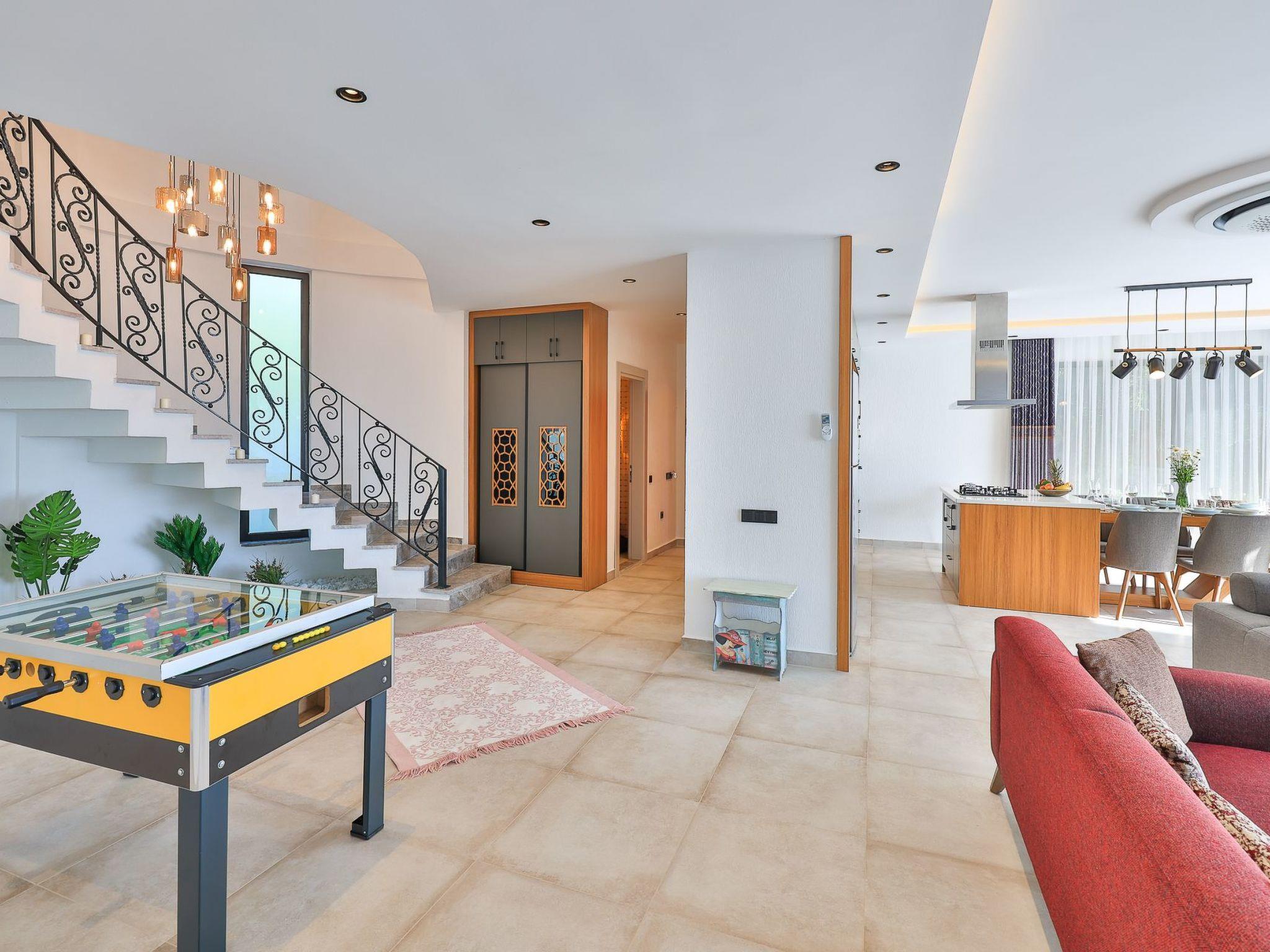 Our villa, which has a comfortable design, is ideal for large families and groups of friends. It offers amenities such as a table tennis table, table football, hammock, swing, okey, backgammon to guarantee an enjoyable holiday. The villa is located in Üzümlü village and has a private pool with a fully screened small garden.