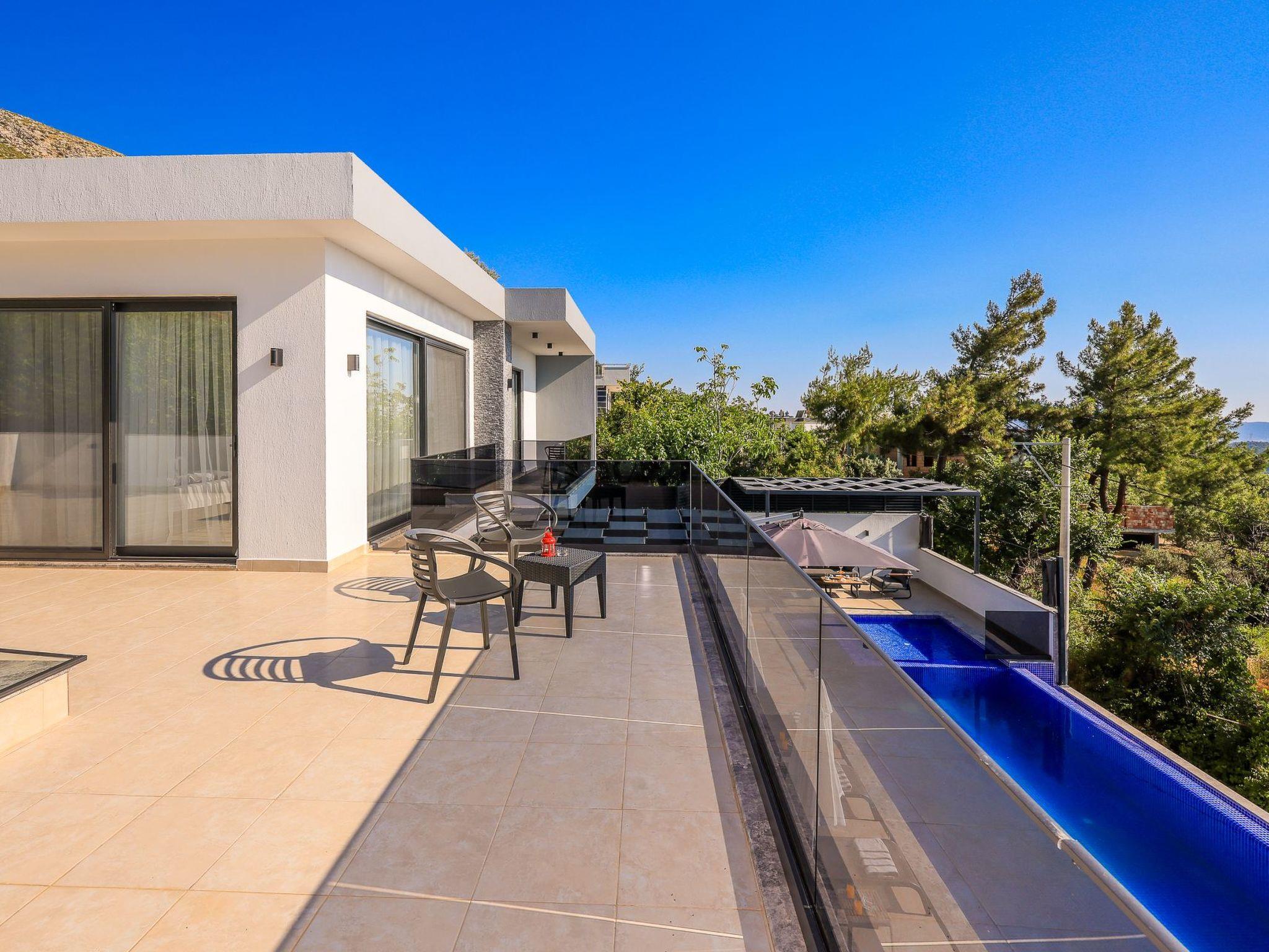 Our villa is located in the Üzümlü region of Kalkan, 12 km above the sea. A special feature of the Üzümlü region is that it is cooler in the summer evenings than in the centre of Kalkan. With its elevated location, you can enjoy fresh air and experience the breathtaking view of nature. You have the opportunity to hear the birds singing and the unique sounds of nature. A wonderful holiday, away from the noise and bustle of the city, awaits you.