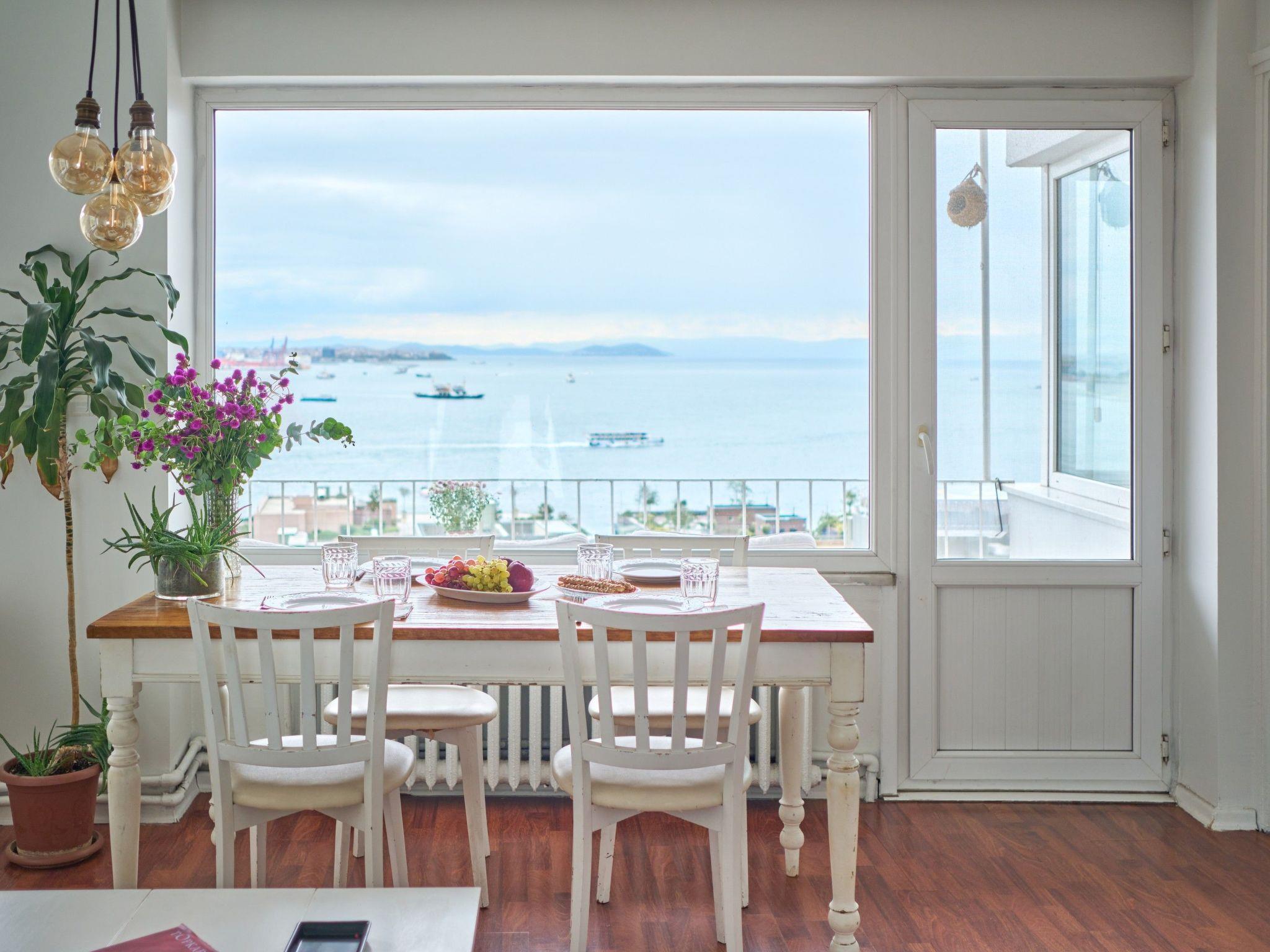 The apartment's outdoor balcony is a highlight, providing a serene space to enjoy the stunning sea views or simply bask in the vibrant atmosphere of the city. Though grilling is not allowed, this outdoor area serves as a peaceful retreat to relish the beauty of Istanbul's skyline, making it an ideal spot for morning coffees or evening relaxation.