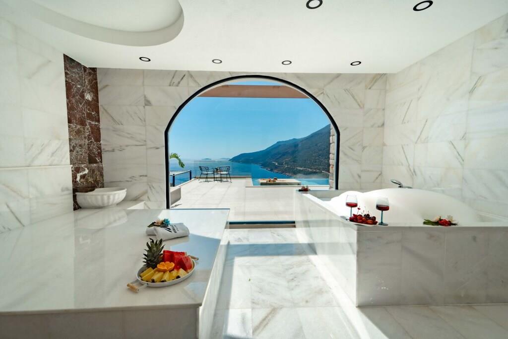 Denne helt afsondrede bryllupsrejsevilla ligger i det rolige Gökseki-distrikt i Kas og har en privat pool og en betagende havudsigt. Denne moderne og komfortabelt designede villa er blevet møbleret med omhyggelig sans for detaljer for at sikre en fredelig og romantisk ferie. Nyd uforglemmelige øjeblikke med en kop kaffe i aftensolen eller mens du kigger ud over Middelhavet – denne villa tilbyder ren afslapning i en eksklusiv atmosfære. Trods sin afsondrede beliggenhed ligger villaen kun få minutter fra centrum. Der er også jacuzzi, sauna og hammam – ideelt til afslapning med din familie eller dine kære. Den verdensberømte Kaputas-strand ligger kun 10-15 minutters kørsel væk. Nærheden til natteliv og attraktioner gør Villa Sea Nest til et helt særligt feriested.