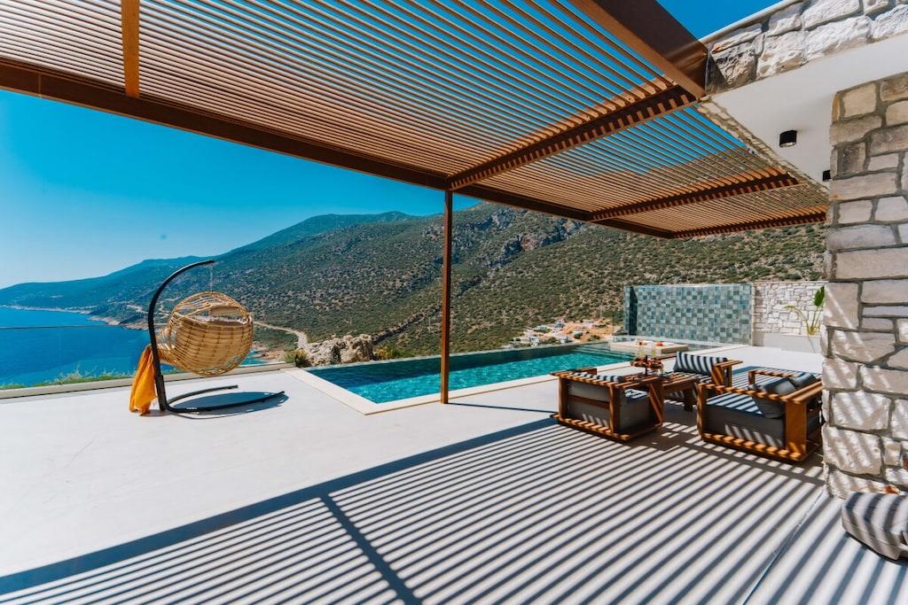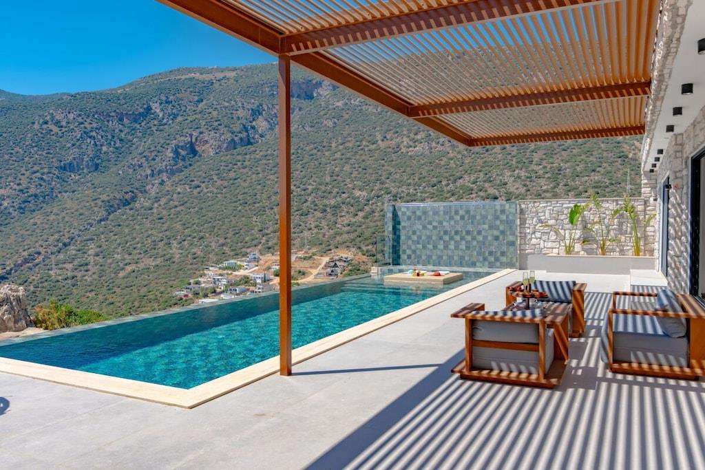 Denne luksusvilla ligger i det rolige Gökseki-distrikt i Kas og har to soveværelser med eget badeværelse og plads til fire personer. Takket være den imponerende havudsigt og de omfattende faciliteter er det en af de mest populære indkvarteringsmuligheder for gæster, der søger en virkelig afslappende ferie. Nyd afslappende timer i det private spa-område med sauna og traditionelt tyrkisk bad, eller hold hyggelige filmaftener i den stilfuldt designede hjemmebiograf. Et poolbord sørger også for underholdning – ideelt til en sjov ferie med familie eller venner. Vores villa kombinerer afslapning og luksus i perfekt harmoni – et eksklusivt tilflugtssted for par og små familier.