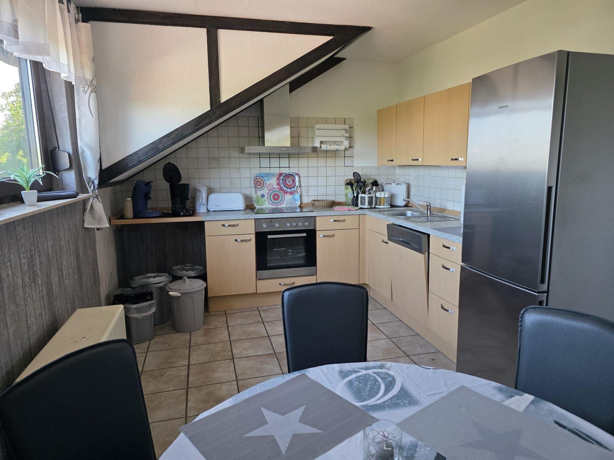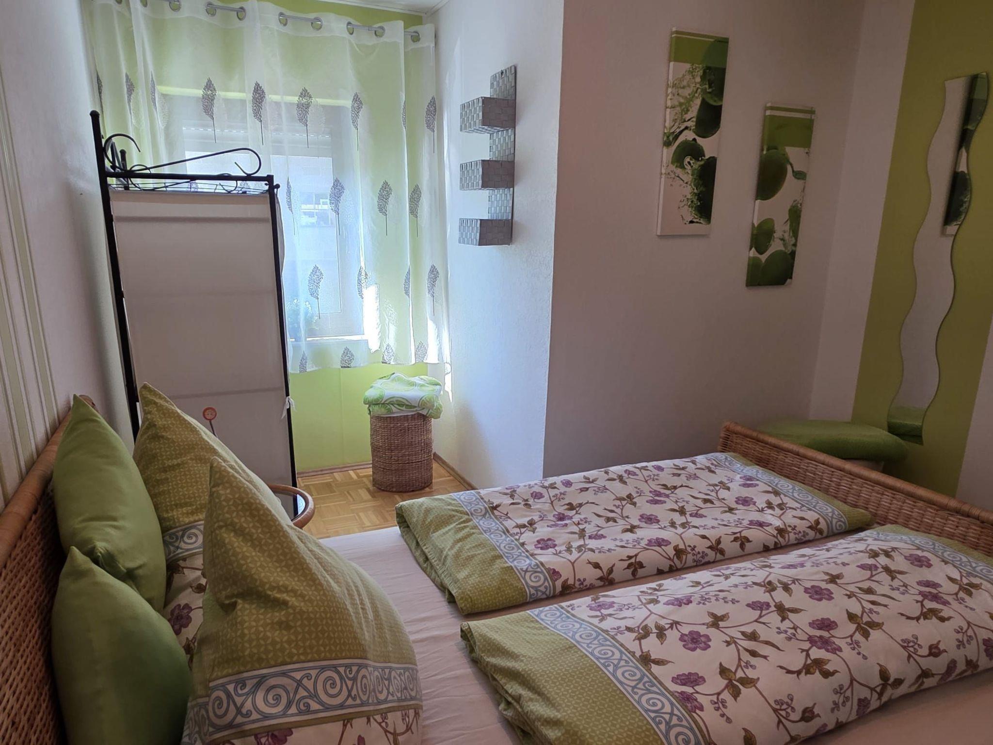 The approx. 100 m² flat has a large living/dining room with a sofa bed for two people (1.4 m x 2 m), a dining table with chairs and a fireplace. The fireplace can of course be used for cosy evenings. The first bedroom has a double bed and a sofa bed for one person (1.5m x 2m) and a cot/baby bed. The second bedroom has a bed (1.40 m wide). The flat has a fully equipped fitted kitchen with an oven, a ceramic hob, a fridge with freezer compartment, a freezer, a dishwasher, a filter coffee machine, a toaster, a kettle and a storage room. The landlord will be happy to provide you with a high chair free of charge. The flat also has a bathroom with shower, bathtub, washbasin, hairdryer and toilet. A washing machine, tumble dryer, hoover and iron can be used free of charge. The washing machine and tumble dryer are located in the laundry room in the basement of the building. The flat has free WLAN. The linen package includes one bath towel, two towels and bed linen per person