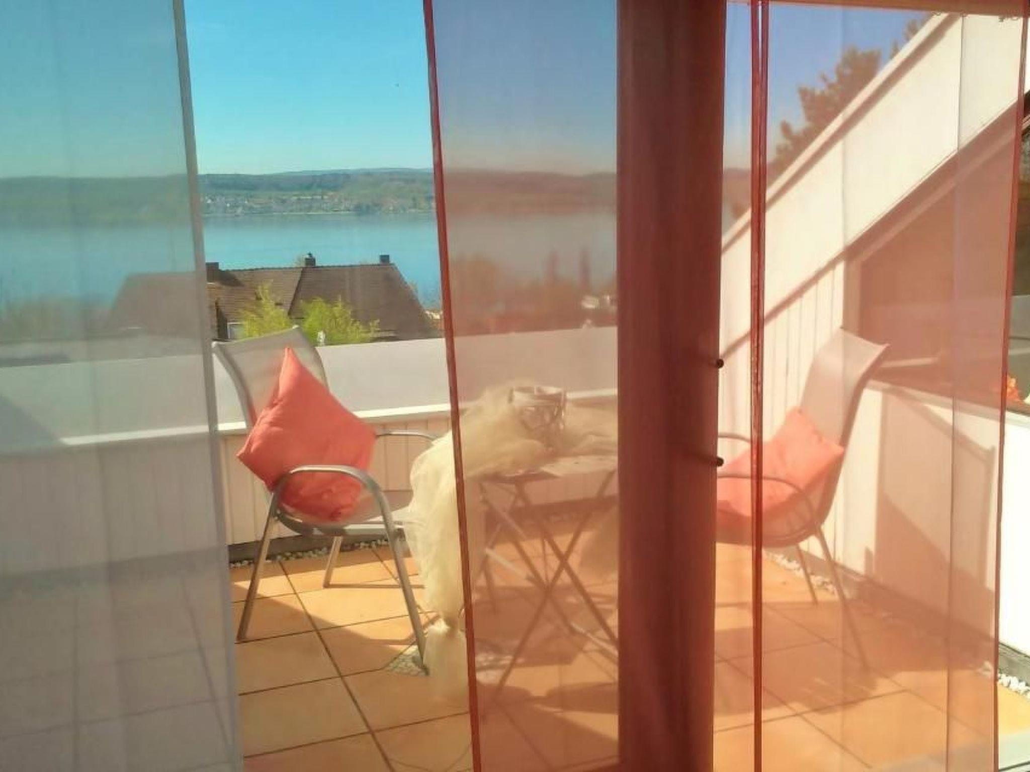 Our beautiful 3-room holiday flat with 2 bedrooms and a wonderful lake view is situated in an extremely quiet, prestigious location near the vineyards, above Lake Constance.