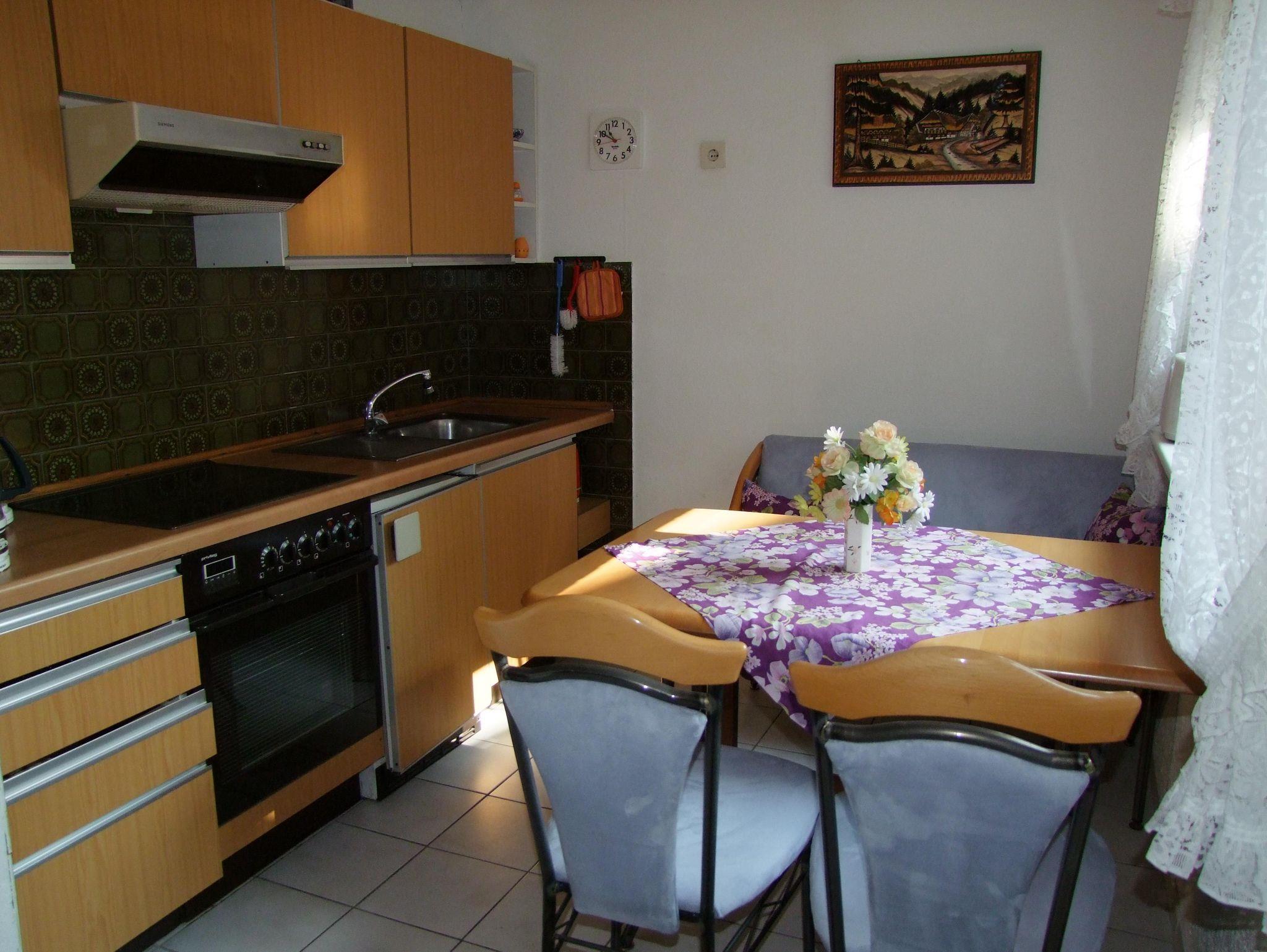 Die Ferienwohnung im Erdgeschoss bietet Platz für bis zu drei Personen und überzeugt mit einer großzügigen Terrasse, die zum Entspannen im Freien einlädt. Sie verfügt über ein separates Wohnzimmer, ein Schlafzimmer, eine voll ausgestattete Küche mit Einbauküche sowie ein Badezimmer mit WC. Zur Küchenausstattung gehören unter anderem eine Kaffeemaschine, ein Wasserkocher, ein Toaster, ein Eierkocher und weitere praktische Geräte, die den Aufenthalt angenehm gestalten.