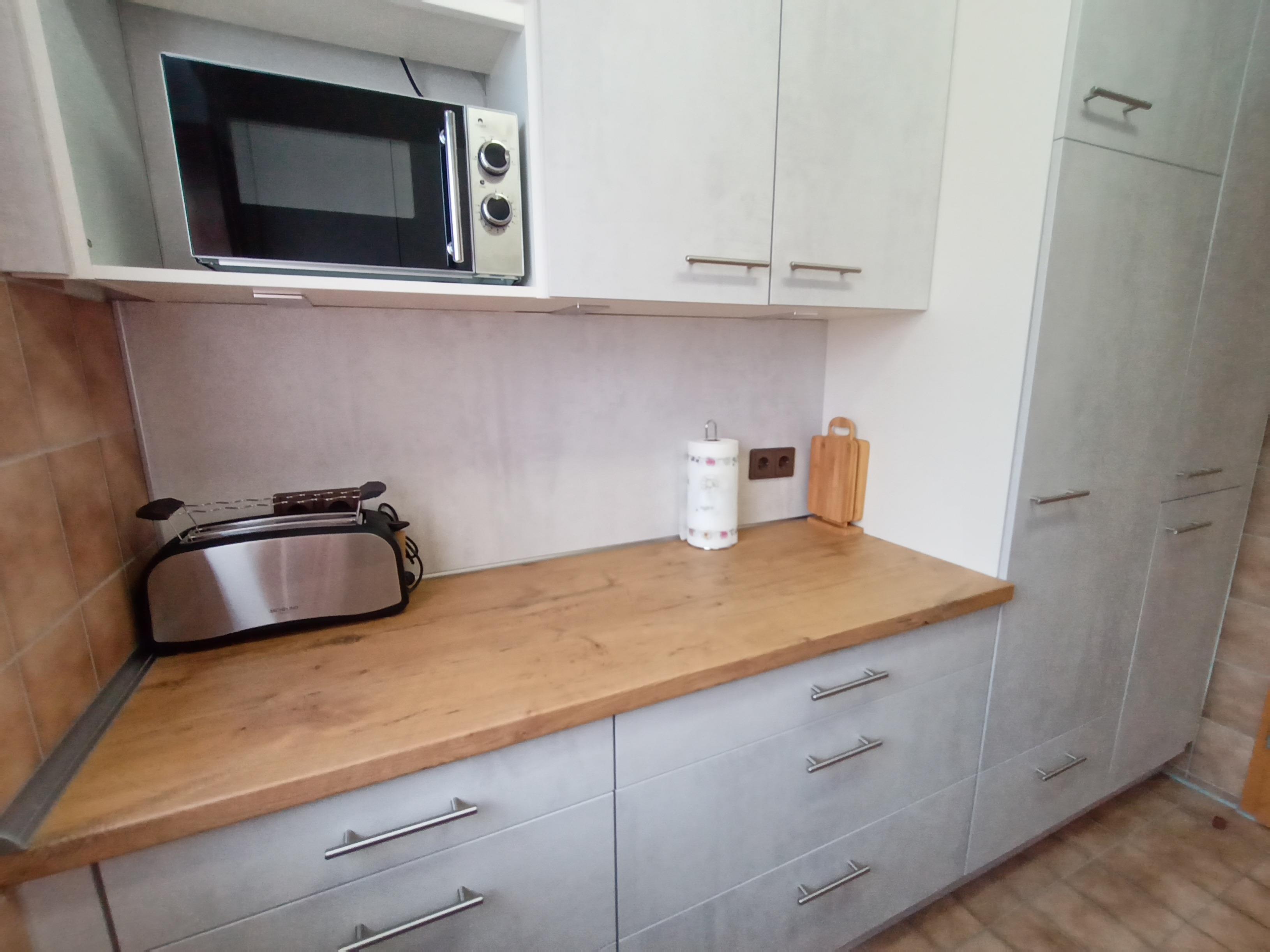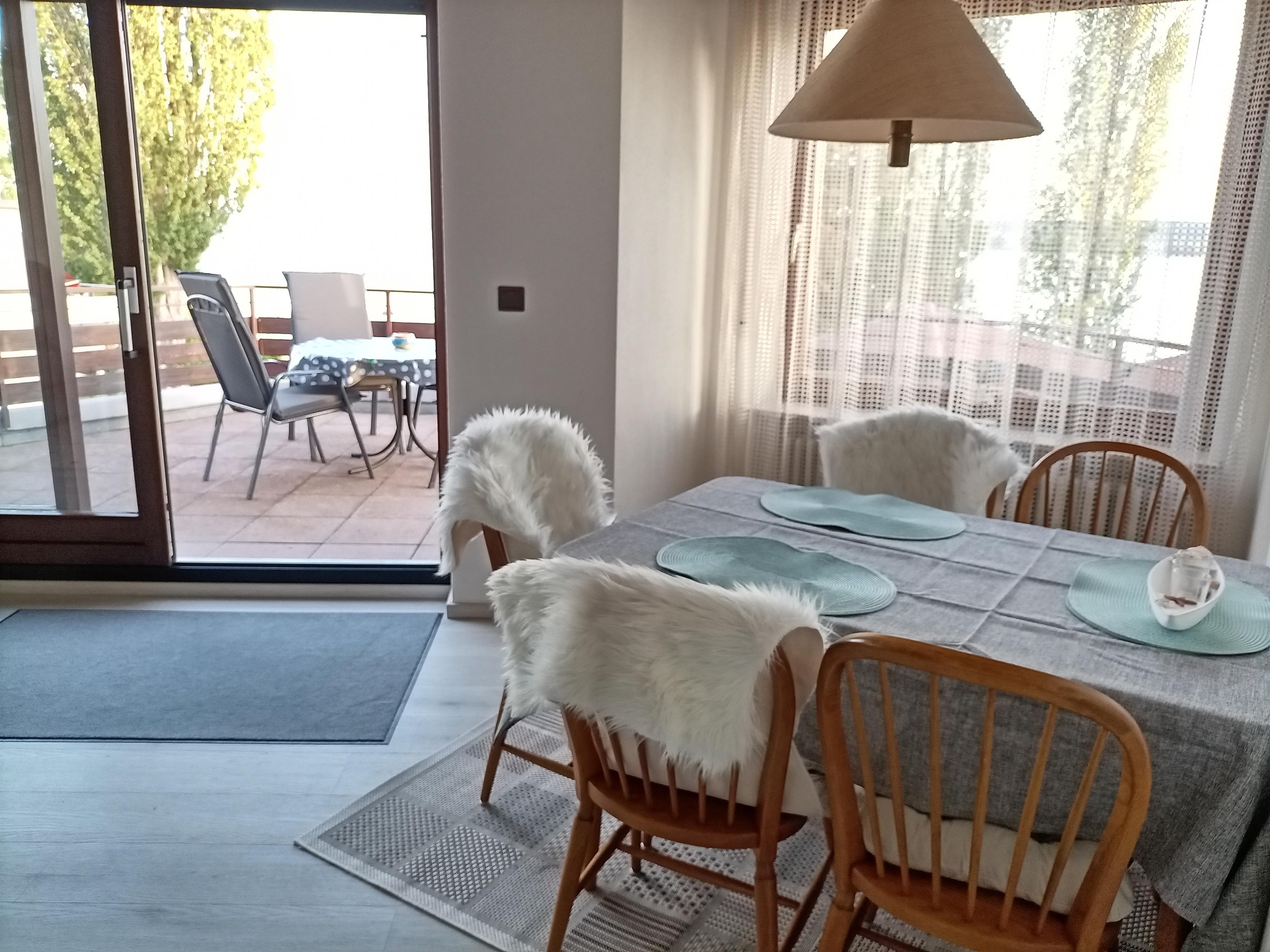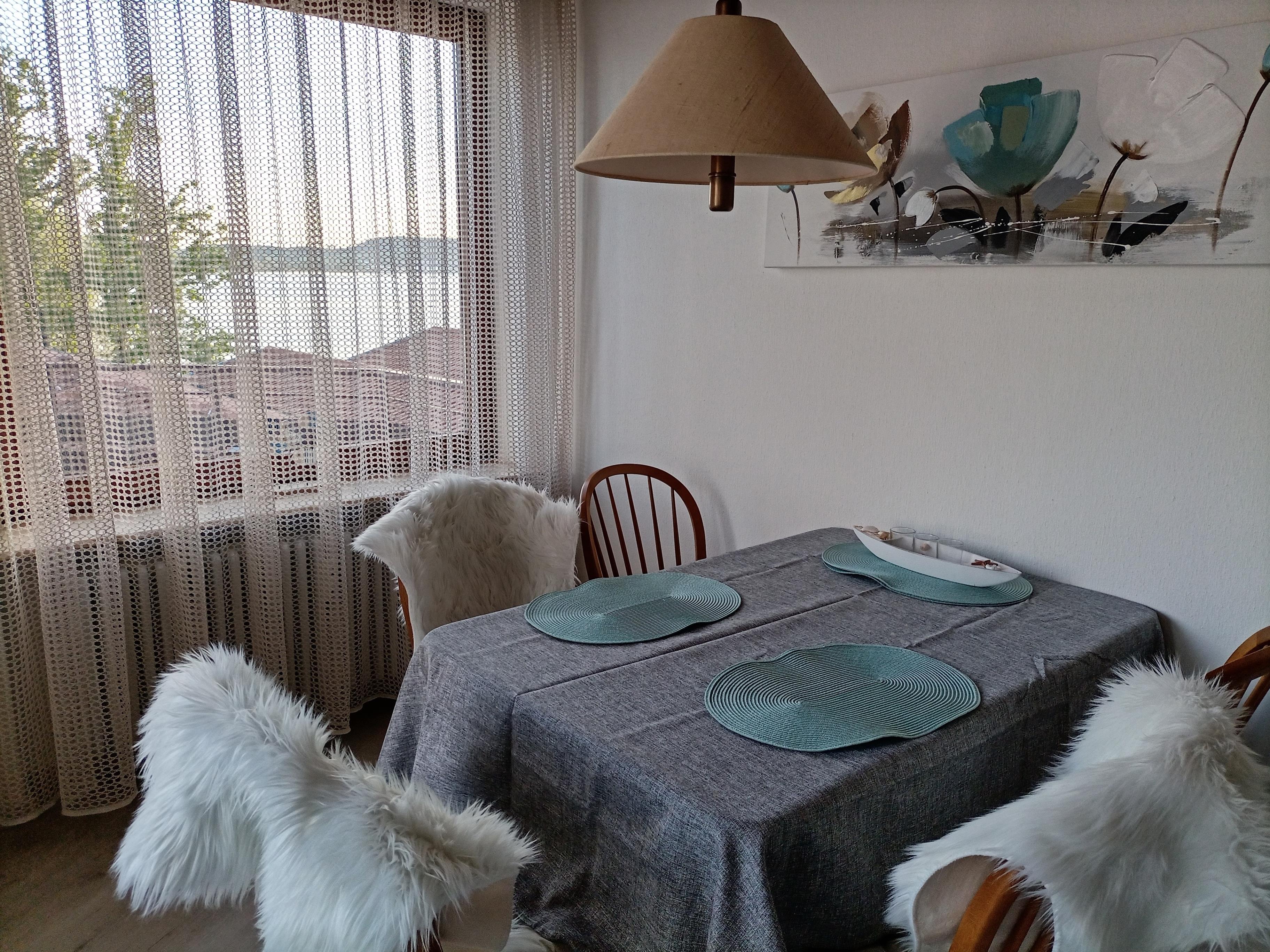 Ein großzügiger Wohnraum mit großem Panoramafenster mit Couch und Essplatz sowie TV, eine gut ausgestattete, moderne Küche, neu renoviertes Badezimmer mit Dusche und WC sowie ein Schlafzimmer mit Doppelbett, Sitzecke und kleinem Balkon (ebenso Seesicht) erwartet Sie. Idealerweise ist die Wohnung für 2 Personen.