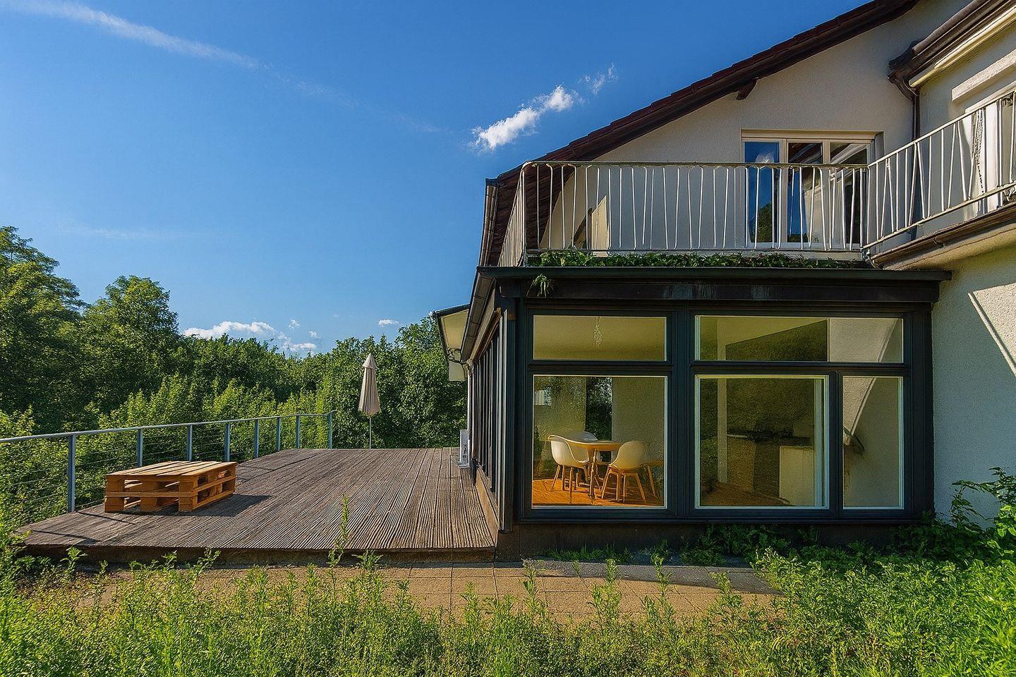 Herzlich willkommen in unserer Ferienwohnung Blau am Nellenbach in Überlingen. Das Appartement mit 60 qm liegt in einer ruhigen Gegend in einer Sackgasse im Untergeschoss eines Einfamilienhauses. Es eignet sich besonders für Paare. Die Ferienwohnung ist liebevoll ausgestattet. Freuen Sie sich auf eine große Terrasse mit Seeblick und Bergsicht. Ein Privatparkplatz steht an der Unterkunft zur Verfügung. Eine Bushaltestelle befindet sich in unmittelbarer Nähe der Wohnung.