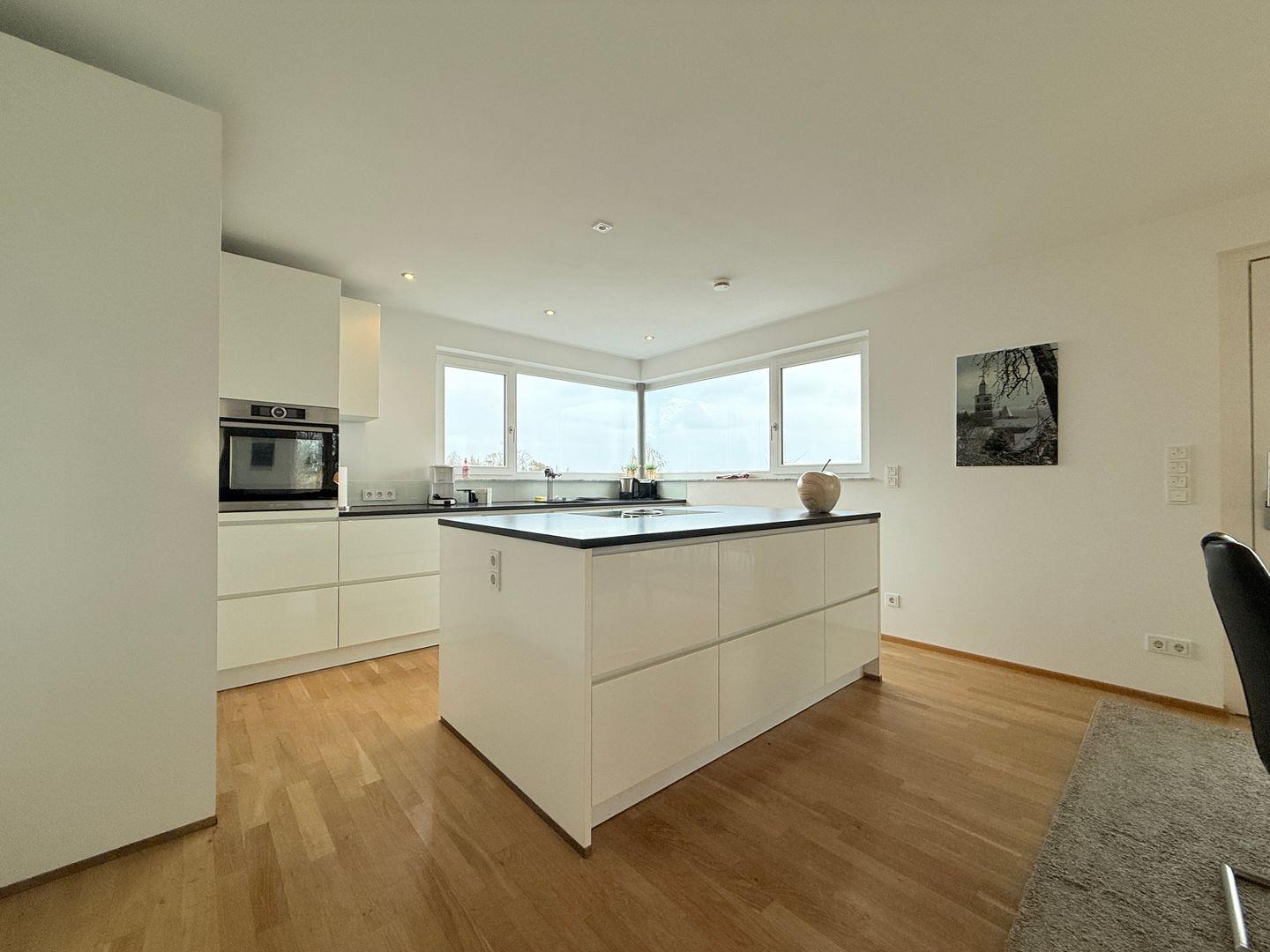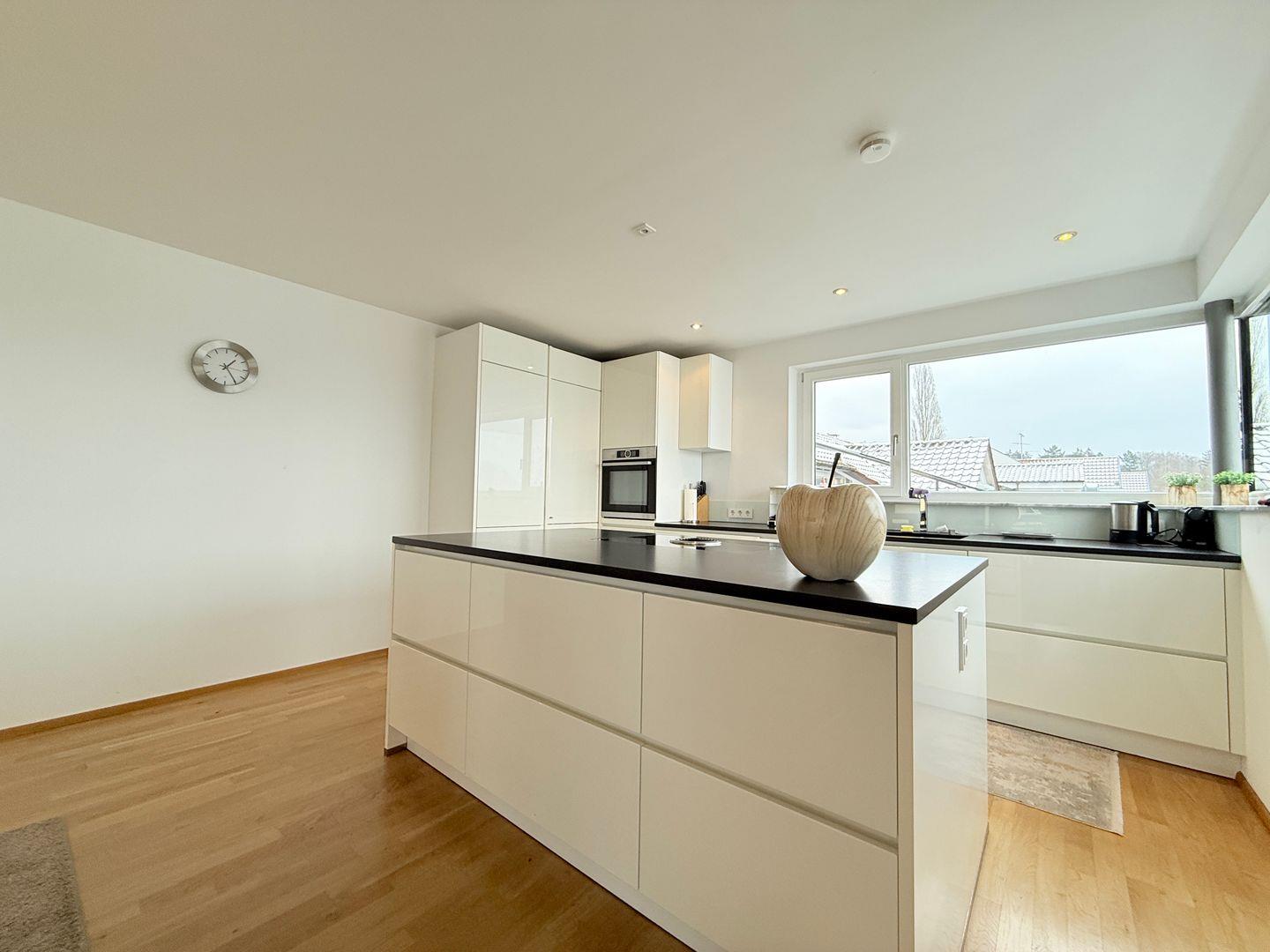 Die offen gestaltete Küche verfügt über einen modernen Induktionsherd, einen geräumigen Kühlschrank, eine Spülmaschine und eine vollständige Kochausstattung. Die großzügige Kücheninsel ermöglicht ein geselliges Kocherlebnis.