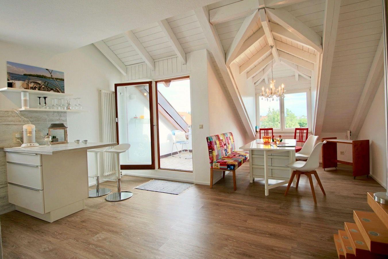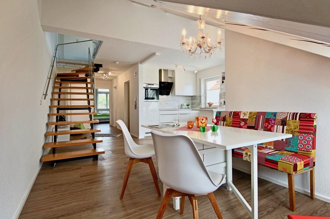 Die seenahe Ferienwohnung Maisonette Alpenblick zeichnet sich durch ihre moderne Einrichtung, den Balkon mit Bergblick und die Nähe zur Altstadt von Überlingen aus.