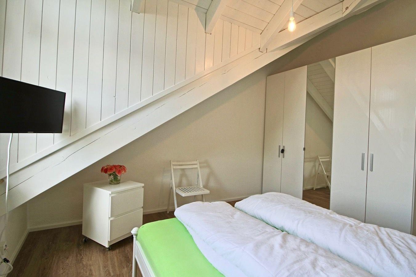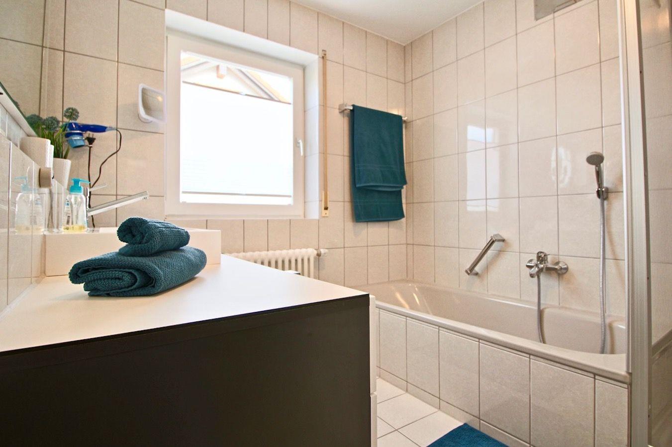 Das Schlafzimmer ist mit einem Doppelbett (180x200 cm) und Kleiderschrank ausgestattet. Das gepflegte Badezimmer bietet eine Dusche, eine Badewanne, ein WC und ein Waschbecken für erholsame Stunden. Ein separates Gäste-WC steht ebenfalls zur Verfügung. Ein Aufzug erleichtert den Zugang zur Maisonette-Ferienwohnung. Ein Tiefgaragen-Stellplatz ist für Ihren Komfort vorhanden. WLAN steht Gästen kostenfrei zur Verfügung. Haustiere sind nicht erlaubt.