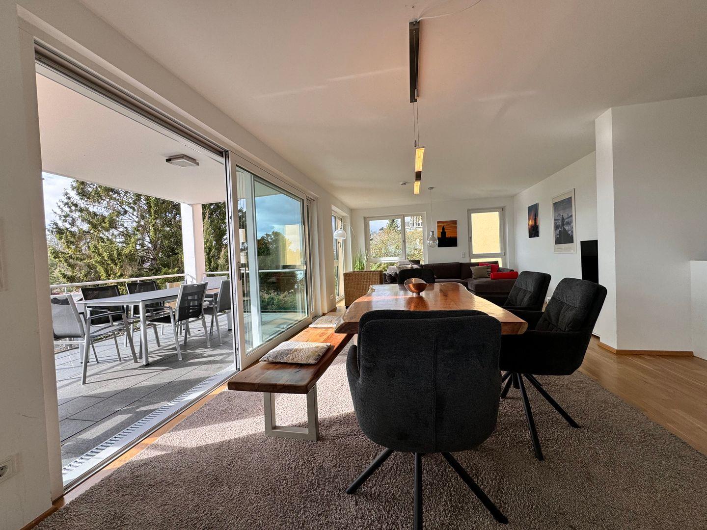 Die Ferienanlage Residenz am See in Überlingen präsentiert vier exklusive Ferienwohnungen, die durch ihre Lage im Kurviertel und nur wenige Gehminuten vom See entfernt einen erstklassigen Aufenthalt versprechen. Die Ferienwohnung Ambiente im Erdgeschoss präsentiert sich auf ca. 125 qm als stilvolle Ferienunterkunft mit einem atemberaubenden Seeblick.