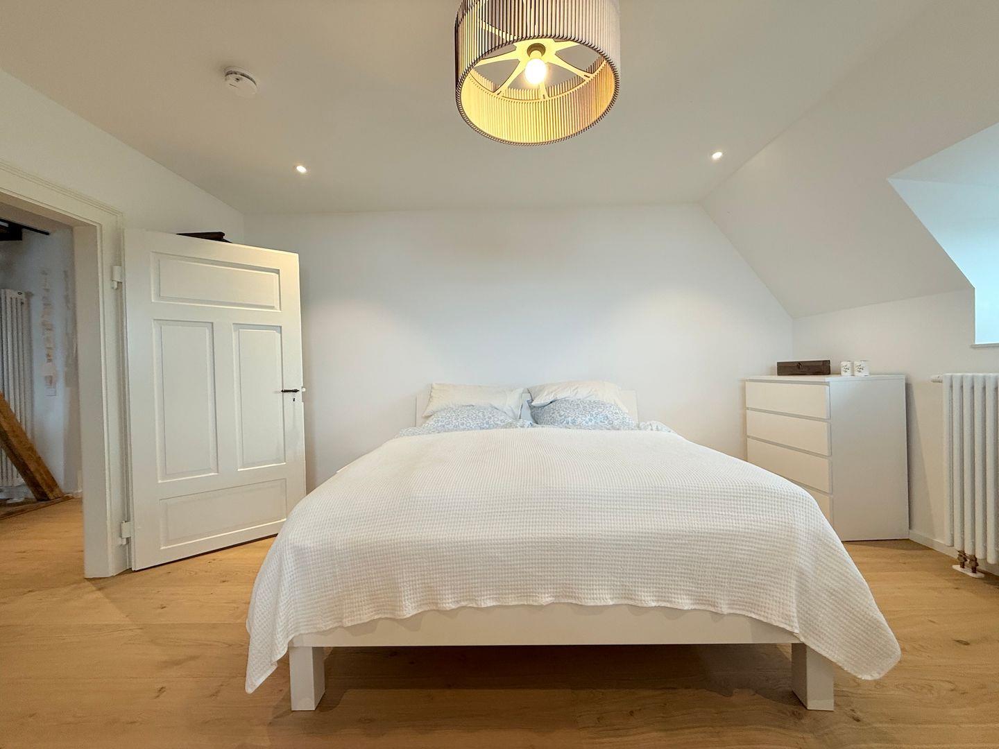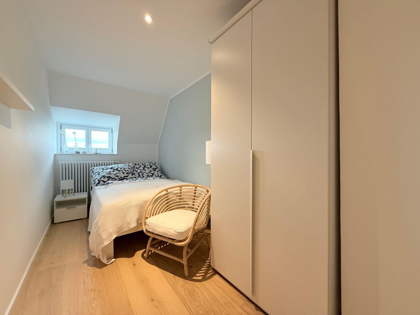Im Mittelpunkt des Wohnbereichs steht das offene Wohnzimmer mit Parkettboden, Sofaecke und mehreren Sitzmöglichkeiten wie Sesseln und Esstisch. Durch die offene Gestaltung zur modernen Einbauküche entsteht eine einladende Atmosphäre, ideal für gemeinsame Mahlzeiten und gesellige Abende. Die Küchenausstattung lässt keine Wünsche offen: Induktionsherd, Elektro-Backofen, Kühlschrank mit Gefrierfach, Spülmaschine, Kaffeemaschine, Wasserkocher, Toaster, Mixer, umfassende Küchenutensilien sowie Geschirr und Besteck stehen Ihnen zur Verfügung. Dem Komfort dienen außerdem Geschirrhandtücher und Reinigungsmittel. Die Wohnräume bieten neben einem modernen Ambiente auch praktische Details wie Garderobe, Schuhschrank, Kommode, Schreibtisch sowie einen Ganzkörperspiegel.