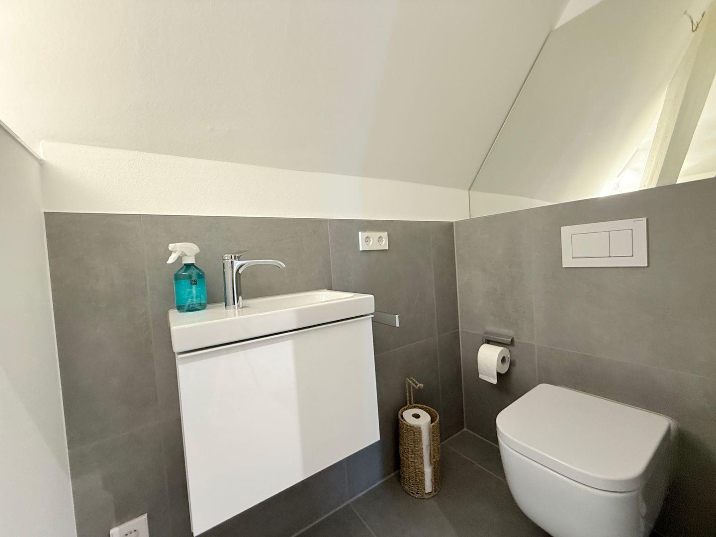 Die Ferienwohnung verfügt über ein Badezimmer mit Dusche sowie ein zusätzliches Gäste-WC. Für Ihren Aufenthalt stehen ein Haartrockner, Handtücher und Badetücher bereit. Für Familien mit Kindern oder Babys sind Waschmaschine und Trockner zur Eigennutzung vorhanden. Die Wohnung ist Nichtraucher und hält ausreichend Platz sowie eine kinderfreundliche Ausstattung bereit.
