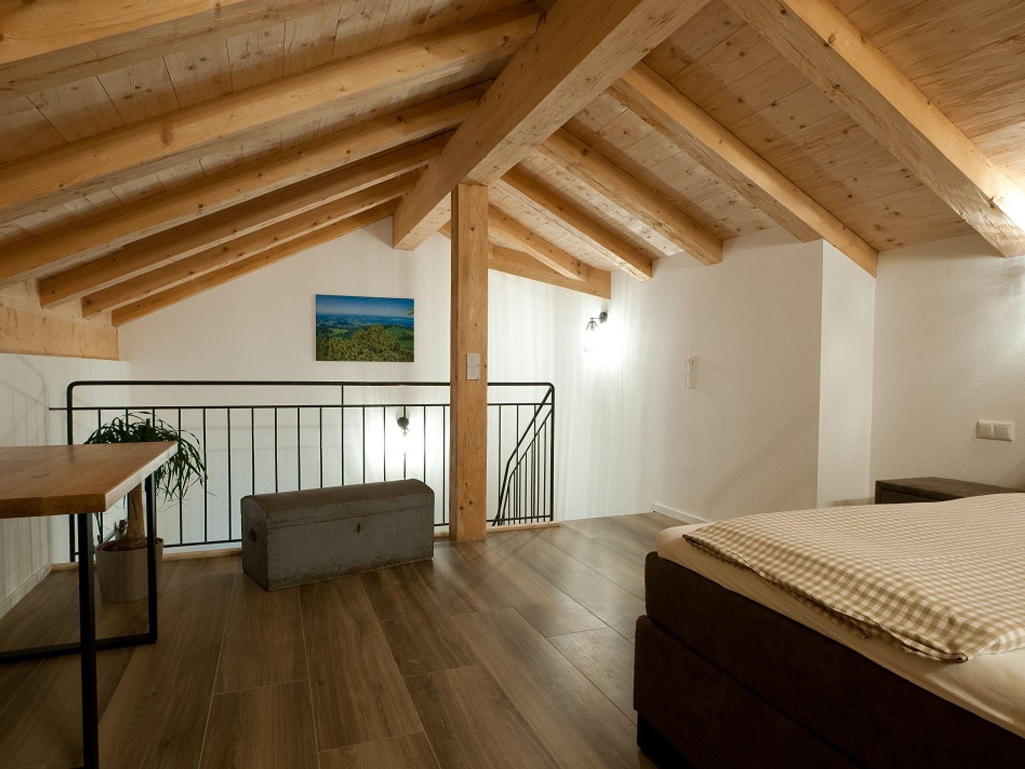 Die Wohnung wurde 2019 in der ehemaligen Tenne/Heuboden eines Bauernhofes neu errichtet. Sie verfügt über einen offenen Wohn-/Essbereich mit voll ausgestatteter Küche, einem Bad mit Dusche, zwei getrennten Schlafzimmern mit großem Boxspringbett und einem zusätzlichem Einzelbett im oberen Schlafzimmer.
