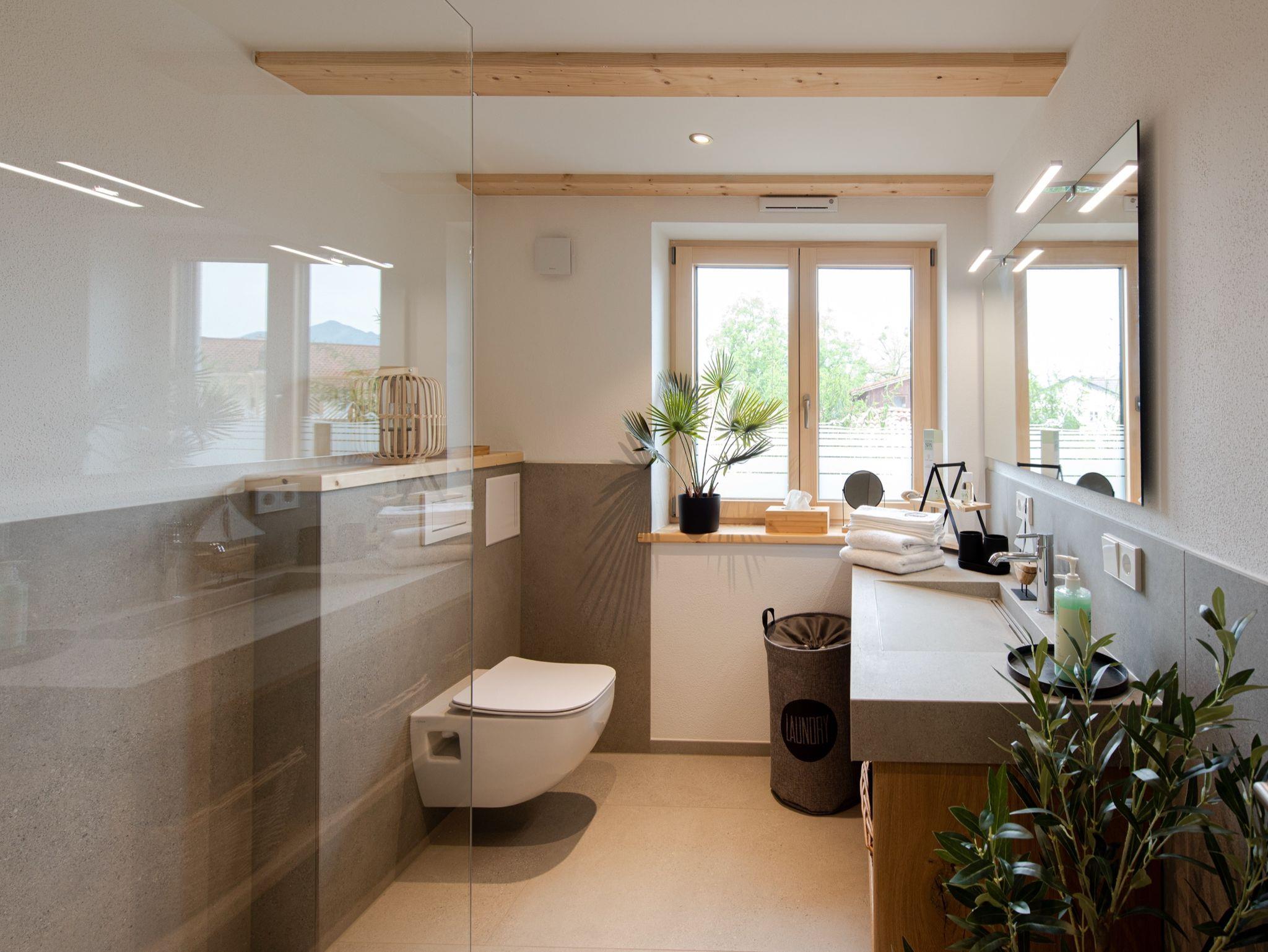 Willkommen im Ferienhaus Chiemseefeeling – einem exklusiven Doppelhaus, das modernes Design, nachhaltiges Bauen und höchsten Wohnkomfort vereint. Das Haus besteht aus zwei separaten, nahezu baugleichen Haushälften: Haus A, südwestseitig ausgerichtet, und Haus B, mit südostseitiger Ausrichtung. Beide Häuser bieten auf 170?bzw. 164?m² Wohnfläche eine identische, hochwertige Ausstattung und durchdachte Raumaufteilung – ideal für Familien, Paare oder Freundesgruppen, die Wert auf Stil, Ruhe und Qualität legen.