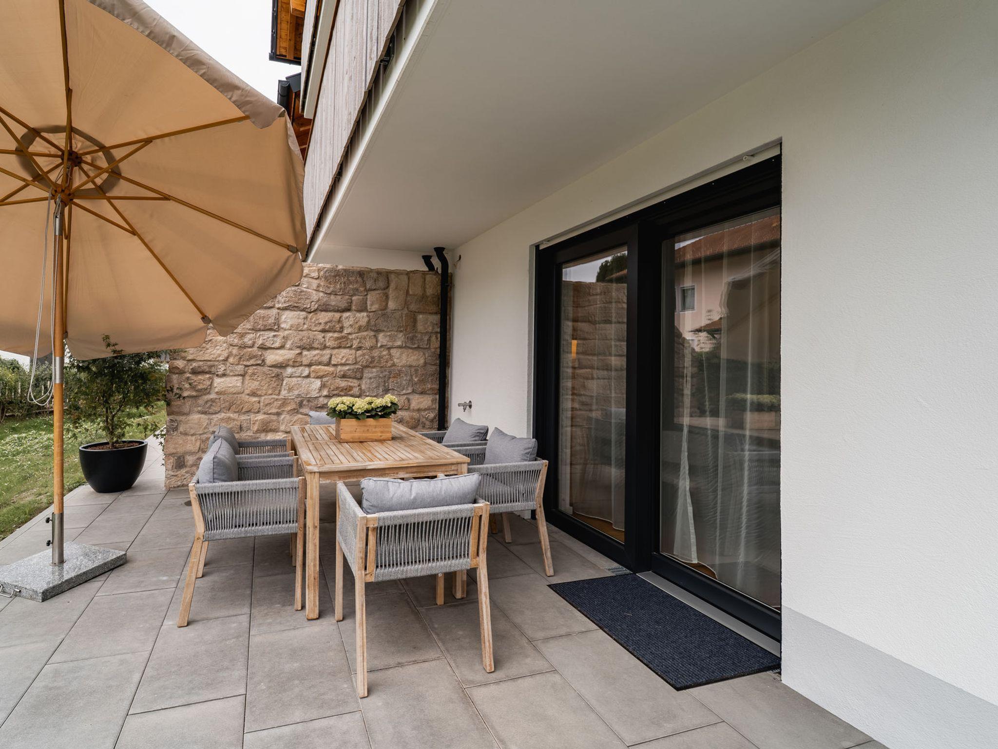 Die private Sonnenterrasse ist der perfekte Ort für Frühstück in der Morgensonne oder einen entspannten Abend mit Grill und Wein. Ob als Paar, mit Freunden oder Familie – im BAY12° fühlt sich jeder sofort zuhause.