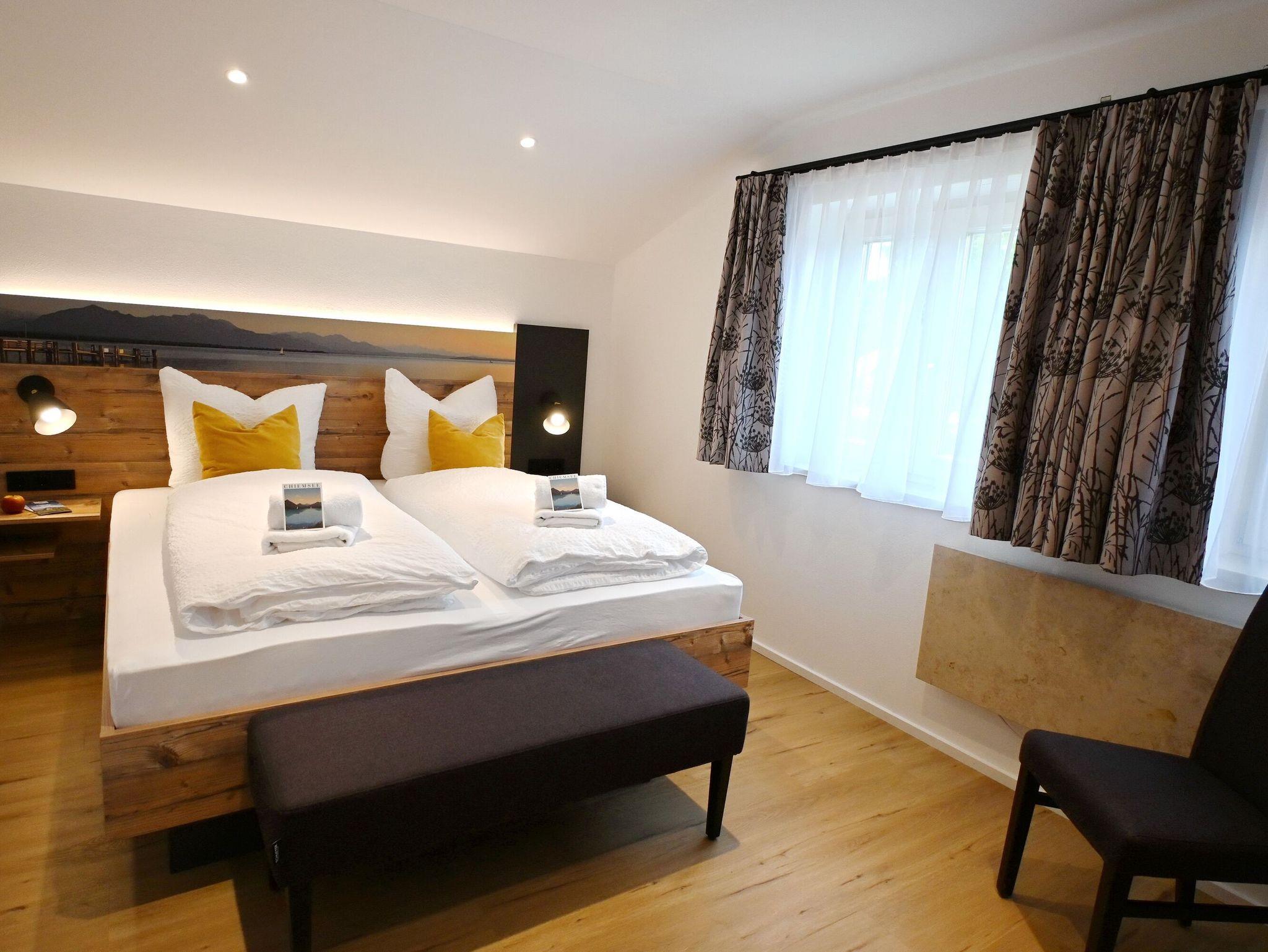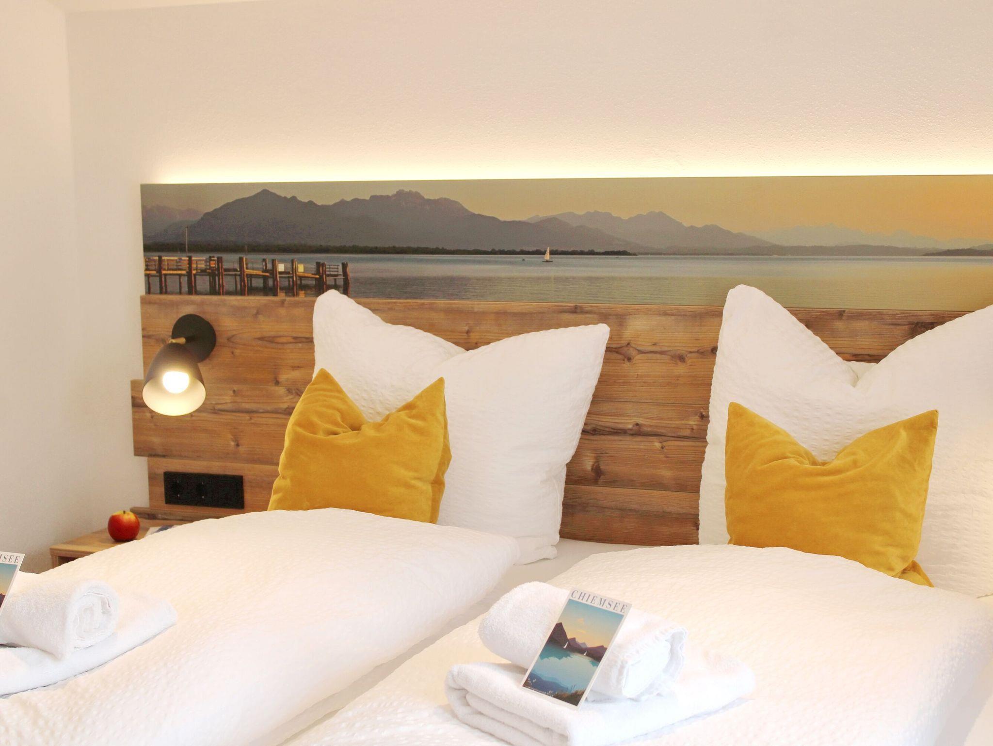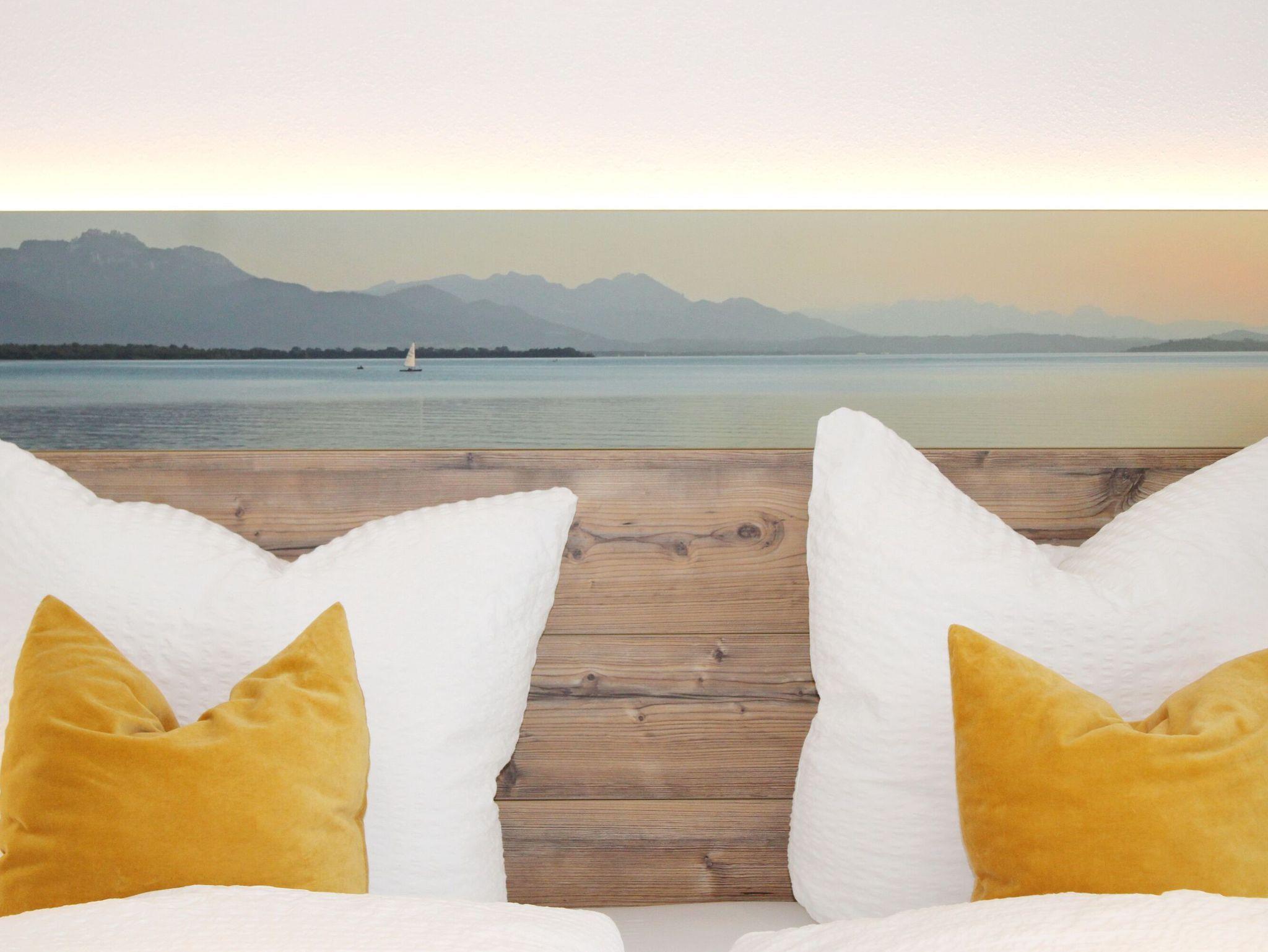 Diese neu gestaltete, helle Dachgeschosswohnung befindet sich in ruhiger Lage in Übersee-Feldwies ? nur wenige Gehminuten vom Chiemsee entfernt. Die Unterkunft eignet sich ideal für zwei Personen und bietet einen offenen Wohnbereich mit Essplatz und voll ausgestatteter Küche, ein separates Schlafzimmer mit Doppelbett sowie ein modernes Bad mit Dusche. Gartenbereich mit Westausrichtung, Sitzmöbeln und Sonnenschirm steht Ihnen ebenfalls zur Verfügung ? perfekt, um auch im Freien zu entspannen.