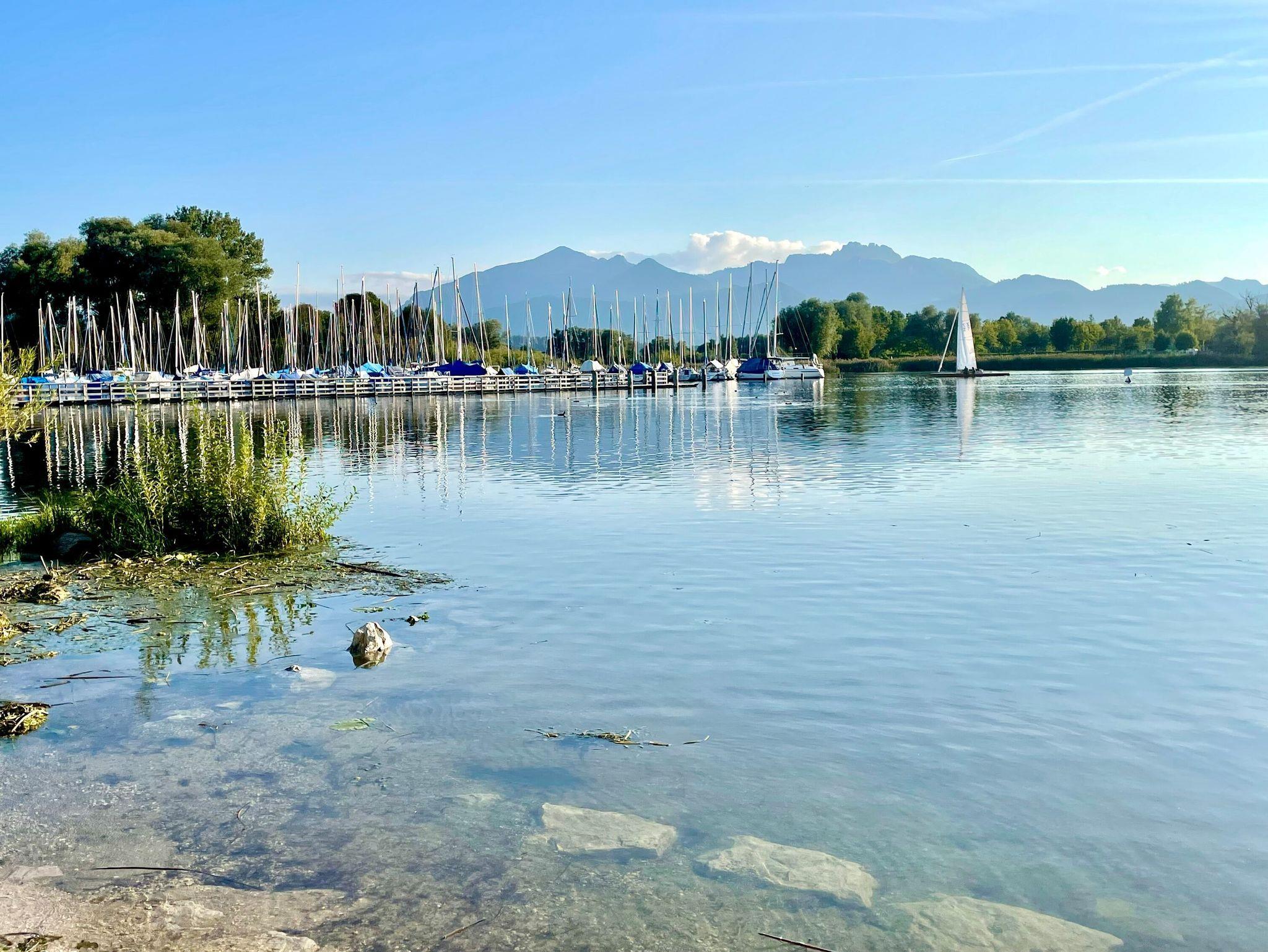 Diese neu gestaltete, helle Dachgeschosswohnung befindet sich in ruhiger Lage in Übersee-Feldwies nur wenige Gehminuten vom Chiemsee entfernt. Die Unterkunft eignet sich ideal für zwei Personen und bietet einen offenen Wohnbereich mit Essplatz und voll ausgestatteter Küche, ein separates Schlafzimmer mit Doppelbett sowie ein modernes Bad mit Dusche. Gartenbereich mit Westausrichtung, Sitzmöbeln und Sonnenschirm steht Ihnen ebenfalls zur Verfügung perfekt, um auch im Freien zu entspannen.