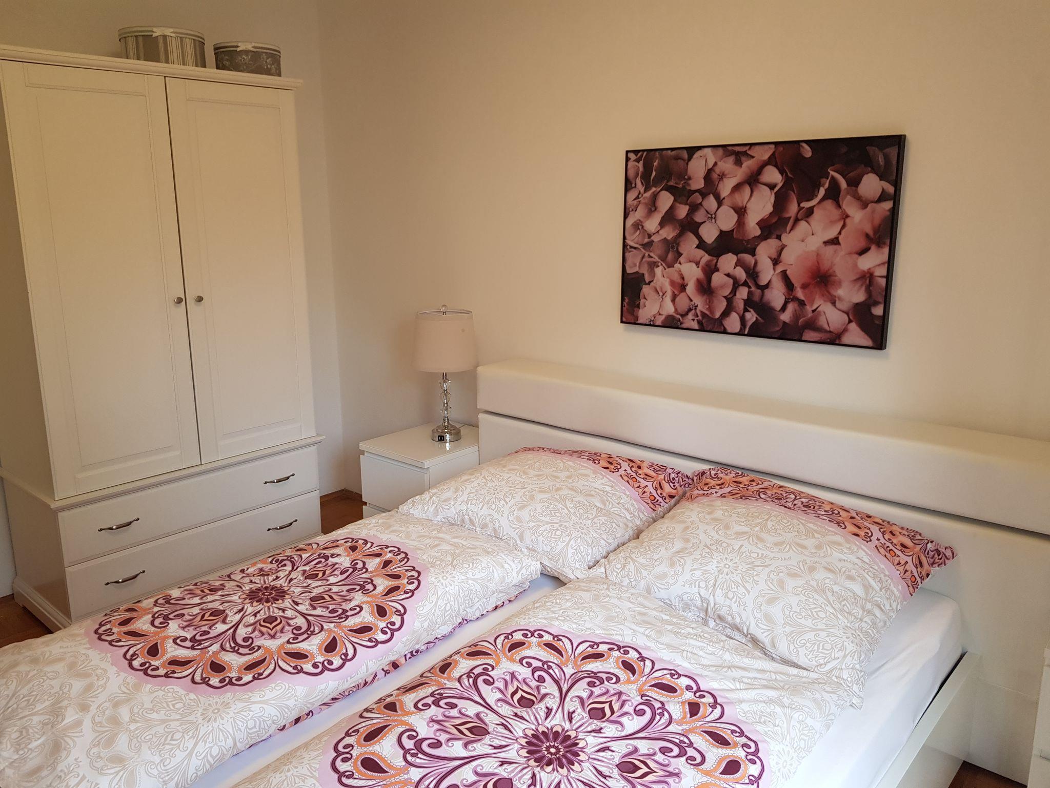 In dieser geräumigen Unterkunft erwartet Sie auf 45 m² 1 Wohnzimmer mit Kamin, sep. Esszimmer in Südausrichtung, 1 Schlafzimmer 18 m² mit franz. Doppelbett 180 x 200 cm mit Berg- und Gartenansicht, 1 Schlafzimmer 12m² mit Doppelbett 160 x 200 cm mit Morgnsonne, 1 Schlafzimmer 10 m² mit Doppelbett 160 x 200 cm mit Abendsonne. Dazu 1 Badezimmer mit einer ebenerdigen Dusche, WC, modernes Waschbecken und 1 sep. Gäste WC. Die komplett ausgestatteten Küche verfügt über ein Kochfeld, Backherd, ein Kühlschrank, ein Geschirrspüler, Kaffeemaschine, Toaster und genügende Ausstattung für 6 Personen! Grillmöglichkeiten stehen ebenfalls zur Verfügung. Freuen Sie sich auch auf eine ganztätig sonnenbeschienene, großzügige Terrasse mit Panorama Berg- und -Gartenblick. Bis zu 6 Personen können auf einem bequemen Rundsofa gemütliche Abende vor dem Flachbild-TV mit Streaming-Diensten verbringen. oder an kühleren Abenden vor dem knisternden Kamin den Urlaubsstag beenden. Kaminholz und Wlan ist kostenlos! Auf Anfrage kann jedem Schlafzimmer ein zusätzlicher Flachbild TV mit Streaming Diensten gegen Gebühr zugestellt werden.