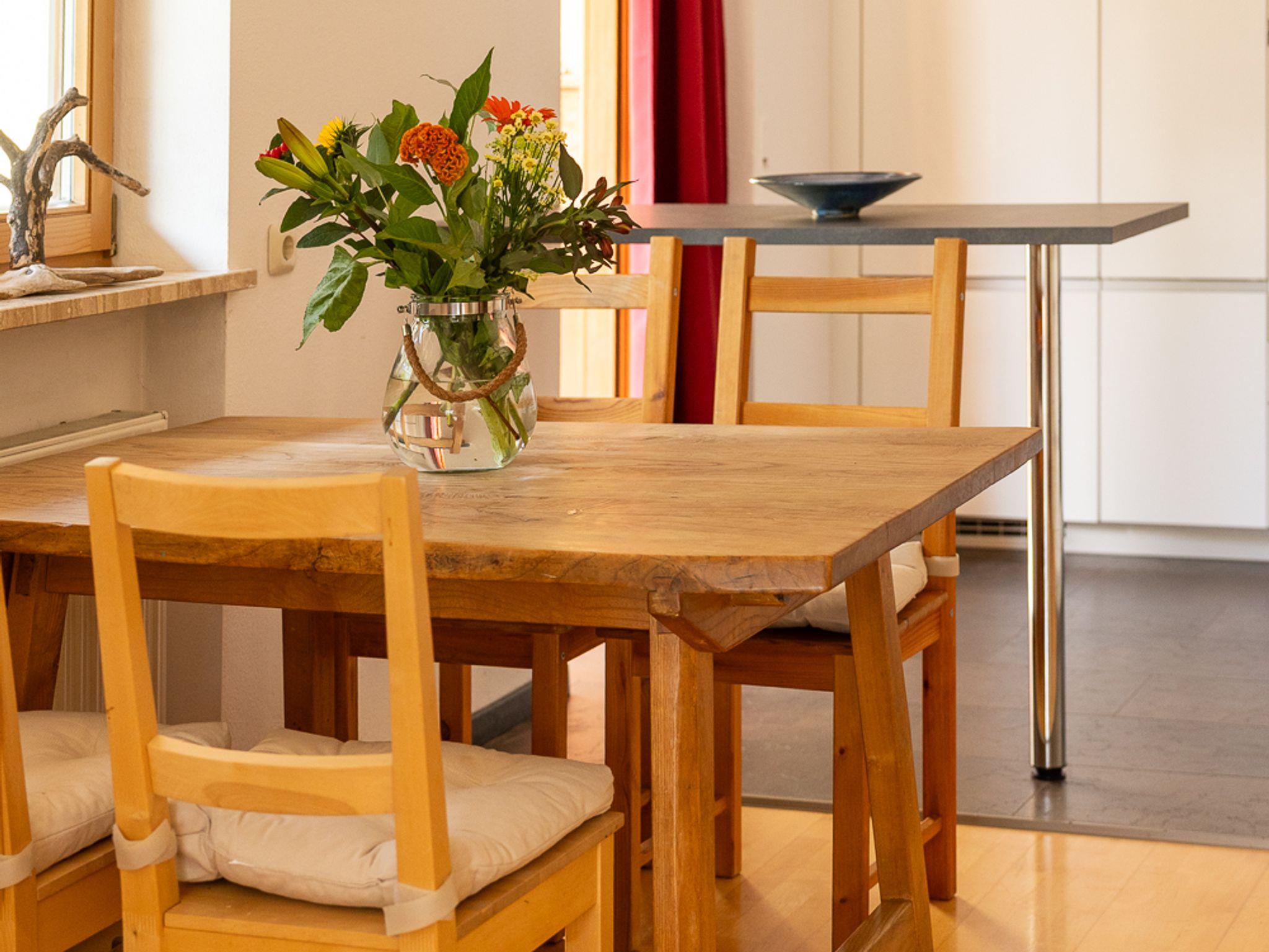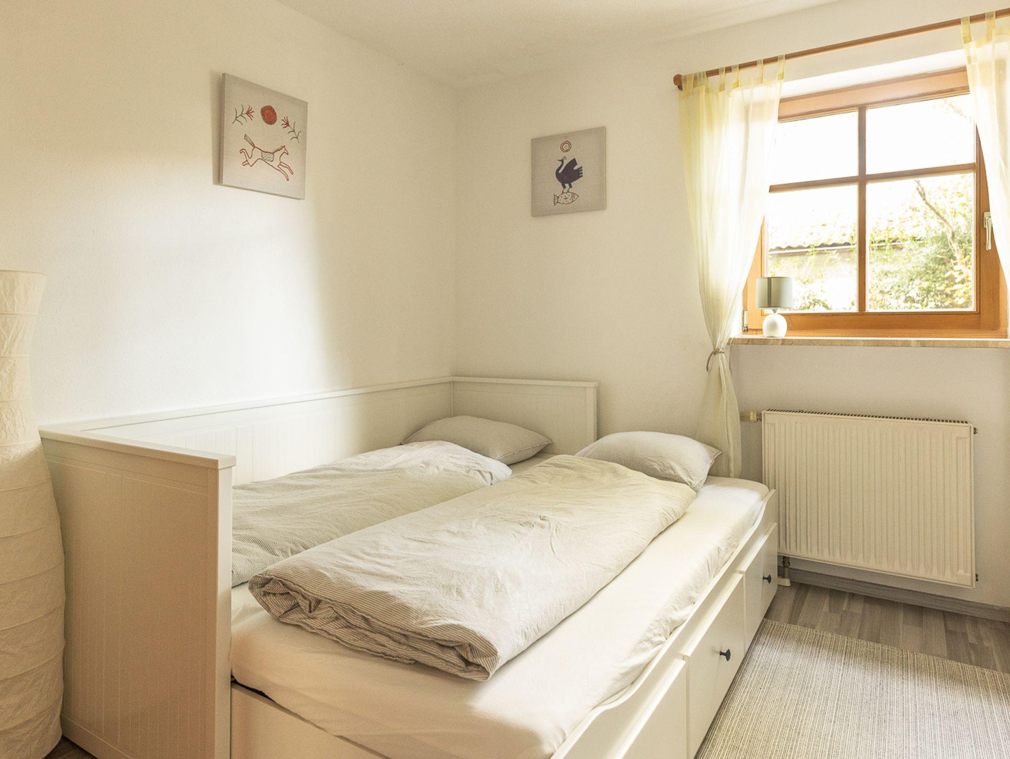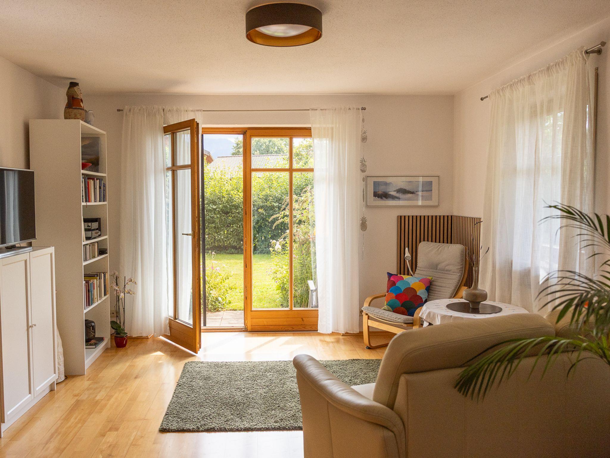 Großzügige drei Zimmer Gartenwohnung nur wenige Minuten vom Chiemseeufer in Übersee entfernt. Der Chiemseerundweg verläuft direkt vor dem Garten. Nur wenige Minuten zu Fuß an den Chiemsee, zum Bäcker oder in den traditionellen Biergarten, finden Sie im geschützten Garten dennoch Ruhe zum Entspannen oder Lesen. Der komplett ausgestattete Wohn- und Essbereich lädt mit dem elektrischen Kamin zum Verweilen ein. Daneben befindet sich eine weiter überdachte Terrasse. Das Hauptschlafzimmer ist mit einem extra breiten Bett (2 Meter) ausgestattet womit auch noch ein Kind bis 6 Jahre bei den Eltern bequem Platz hätte. Das zweite Schlafzimmer kann mit Sofa, Einzelbett oder Doppelbett konfiguriert werden. Neben dem barrierefreien Bad mit Waschmaschine, gibt es ein zusätzliches WC. Die Wohnung ist Barrierearm, allerdings sind die Tür mit 80 cm nicht Rollstuhlgerecht und es gibt einen Absatz zur Terasse und am Hauseingang. Vor dem Haus haben Sie einen eigenen Parkplatz außerdem steht ein Kanu zur freien Verfügung.