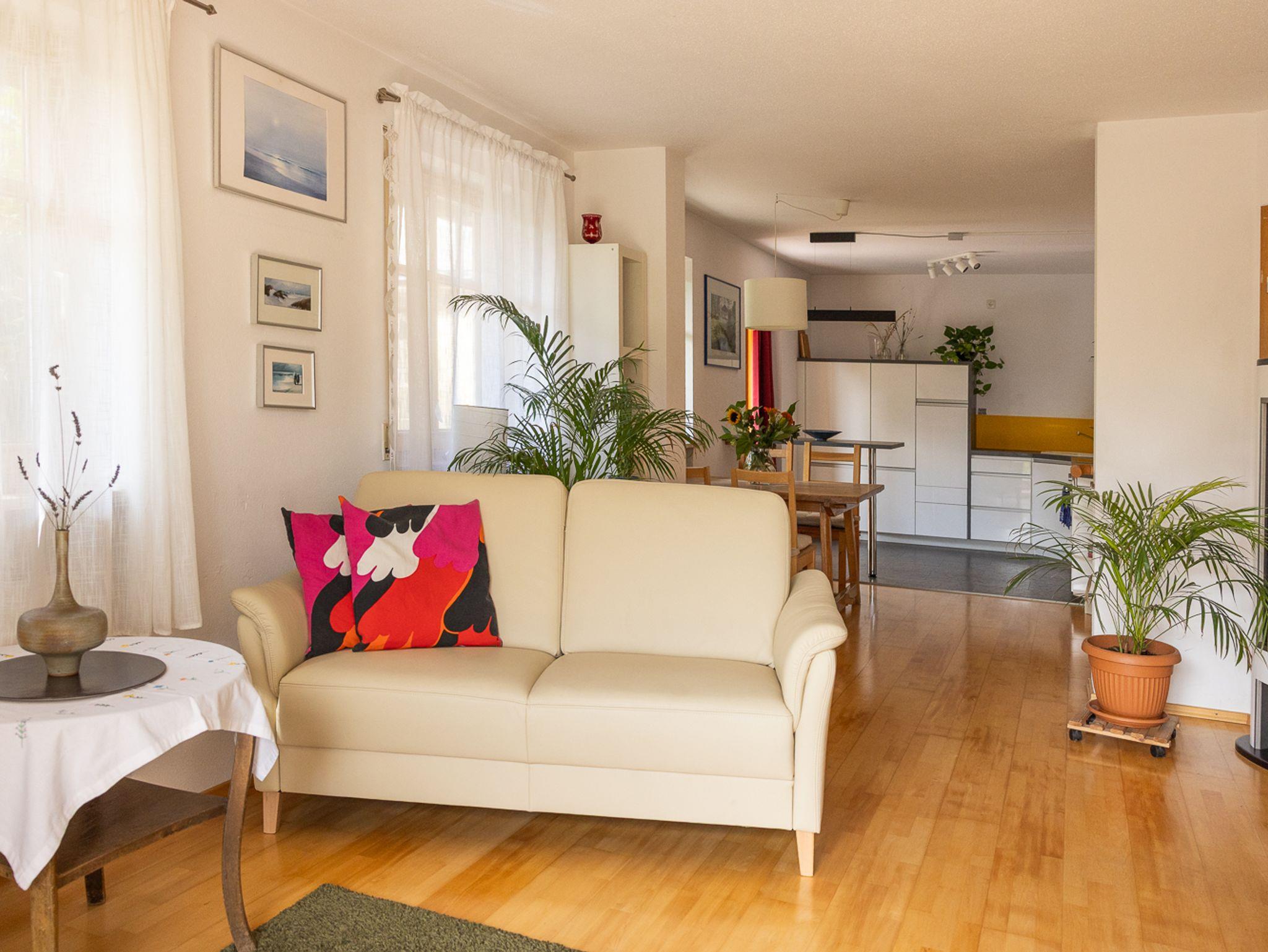 Schöne Drei-Zimmer-Wohnung (85m2) mit eigenem Garten (170?m²), nur wenige Gehminuten vom See entfernt.