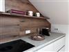 Hier ist nichts dem Zufall überlassen: Edler Parkettboden, maßgefertigte Schreinerküche, moderne Designerleuchten und fein ausgewählte Textilien schaffen eine Wohnatmosphäre, die sowohl puristisch als auch gemütlich ist. Ob am schönen Holz-Esstisch unter der offenen Dacharchitektur oder am Sommerabend auf dem Balkon – hier fühlst du dich sofort wie zuhause (nur besser).